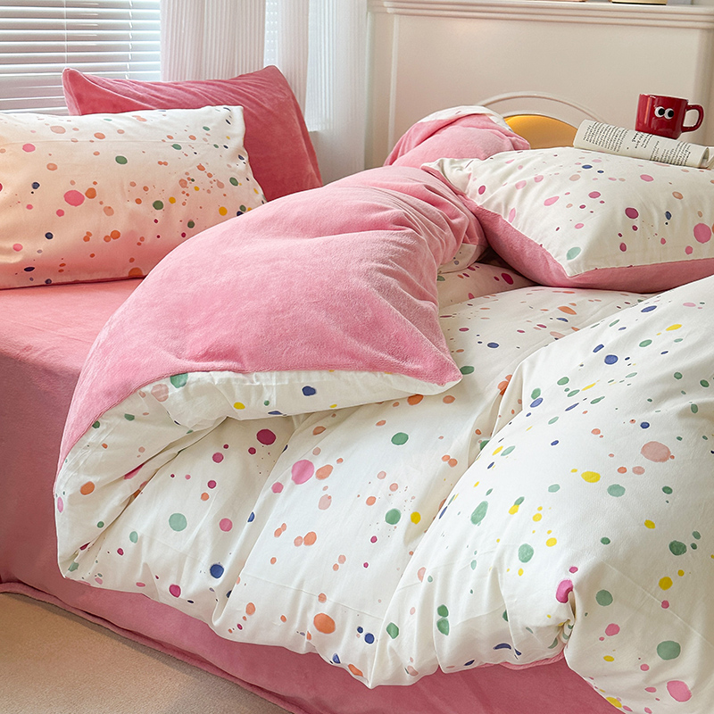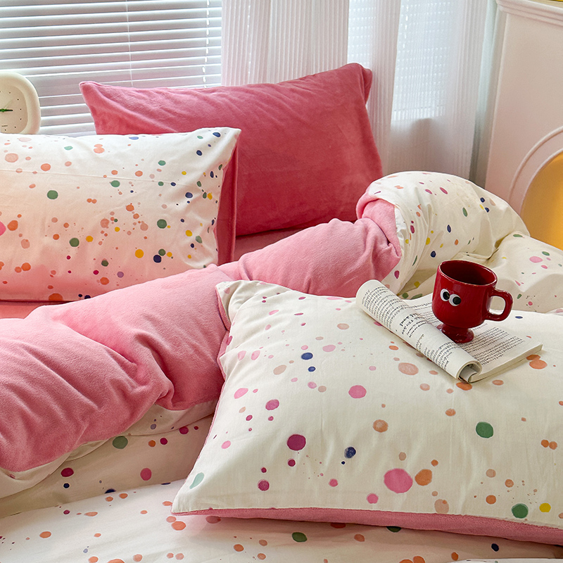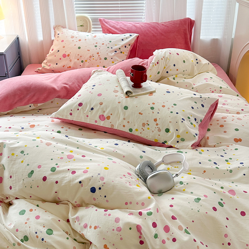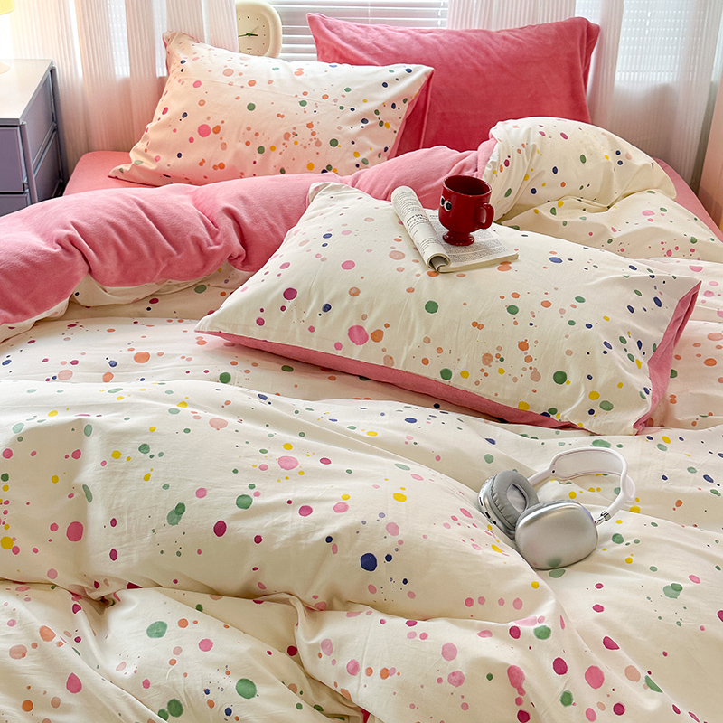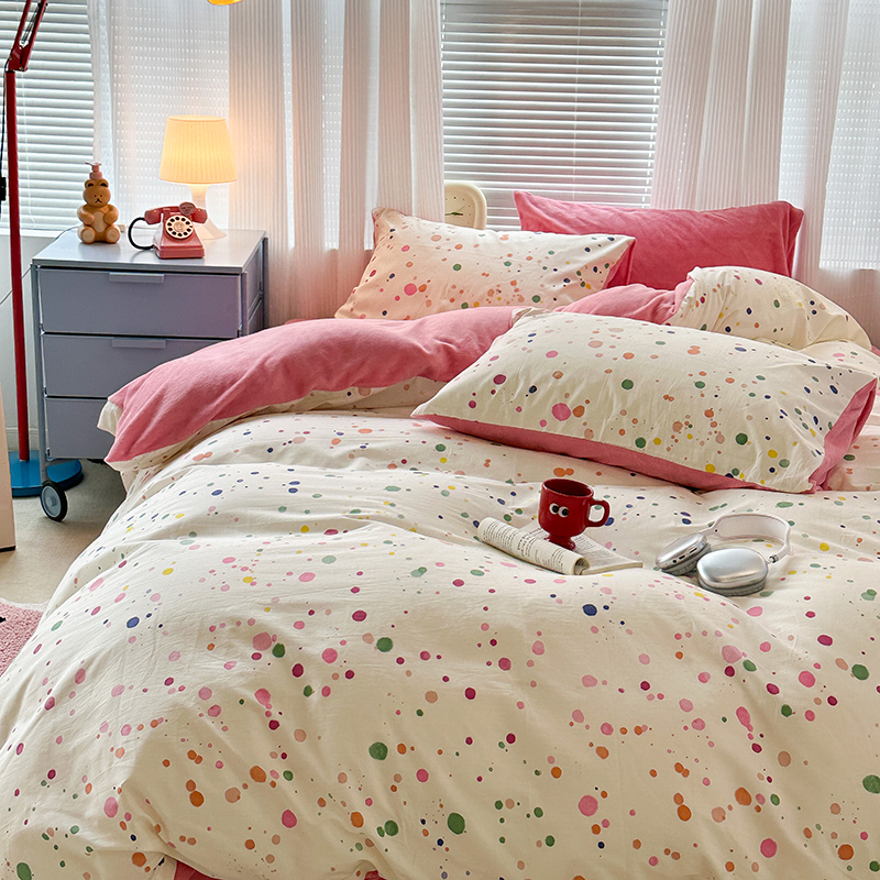 昔可家纺 2023新款y2k卡通印花系列棉加绒四件套 彩色泼墨