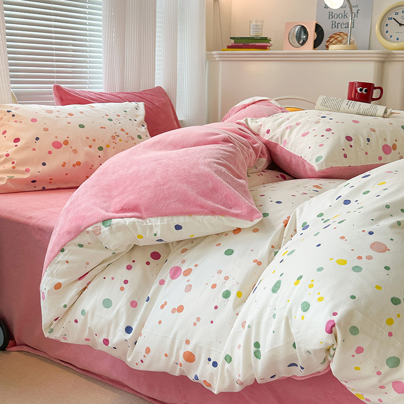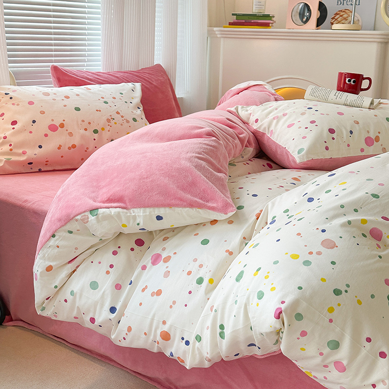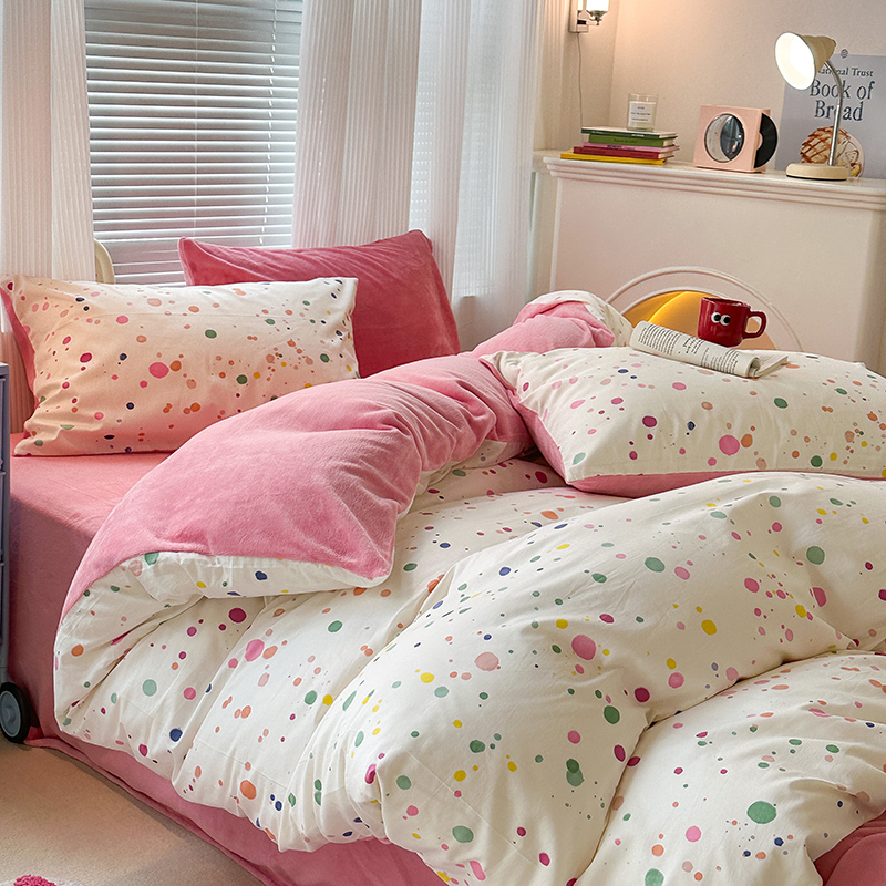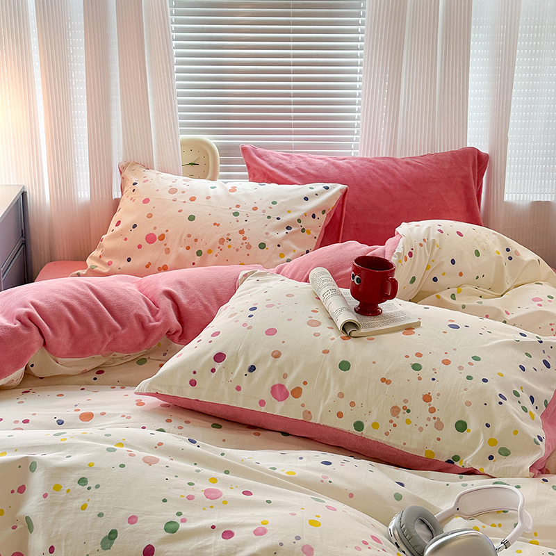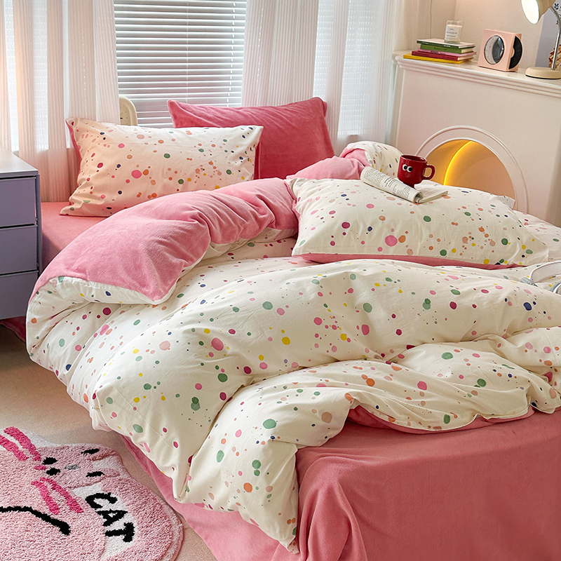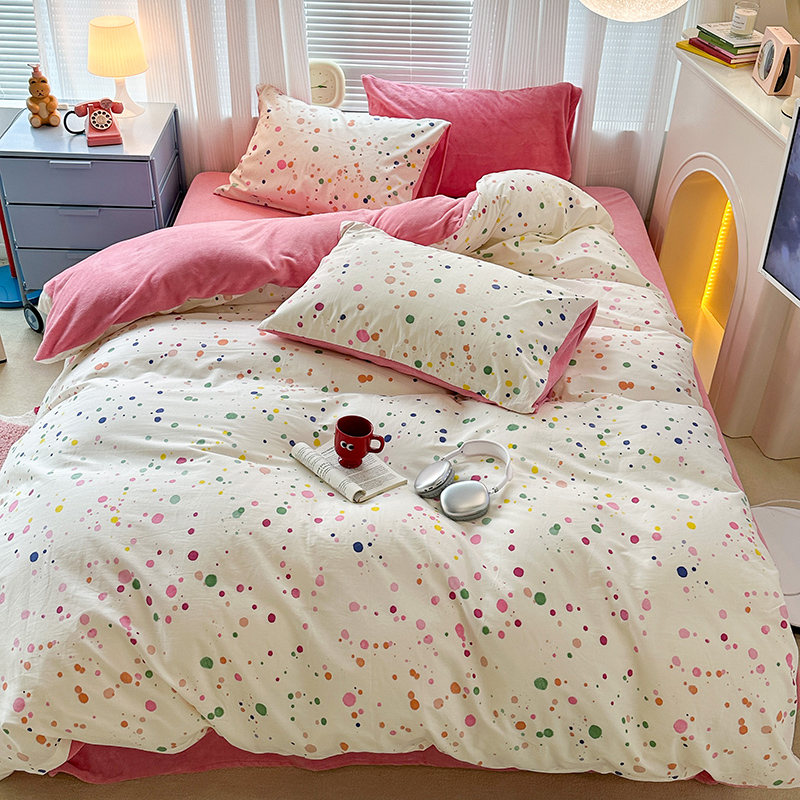 昔可家纺 2023新款y2k卡通印花系列棉加绒四件套 彩色泼墨