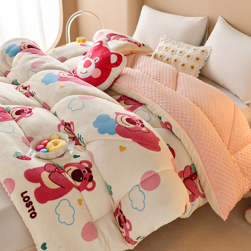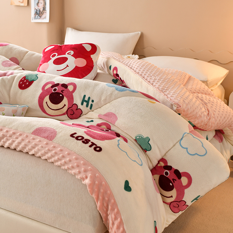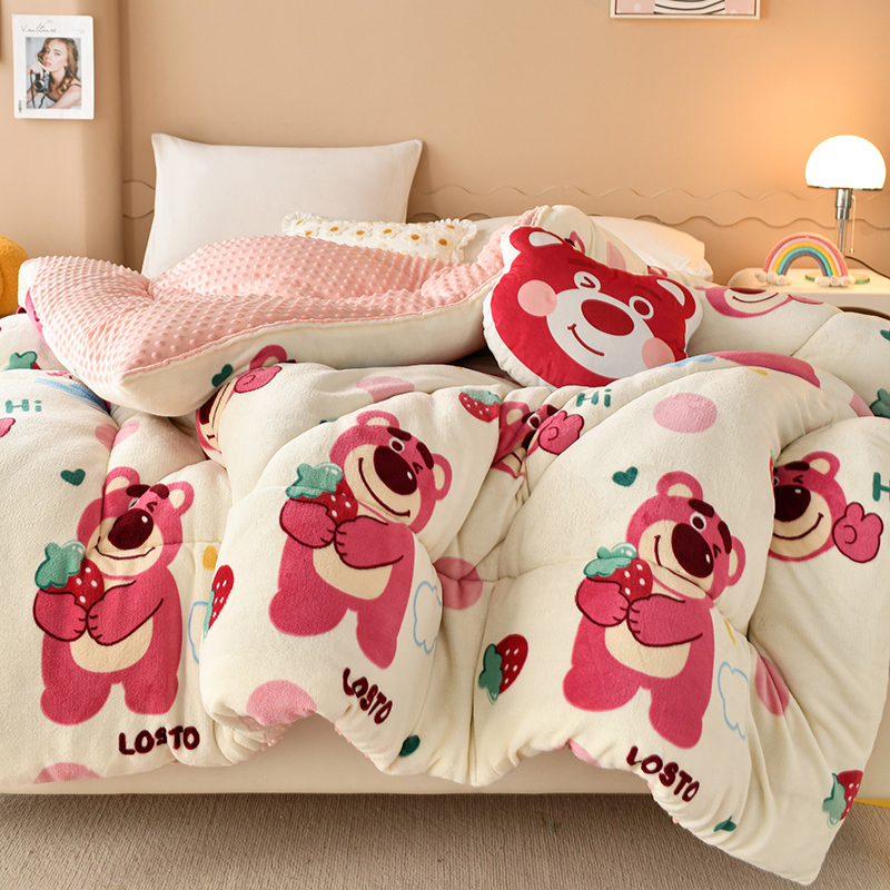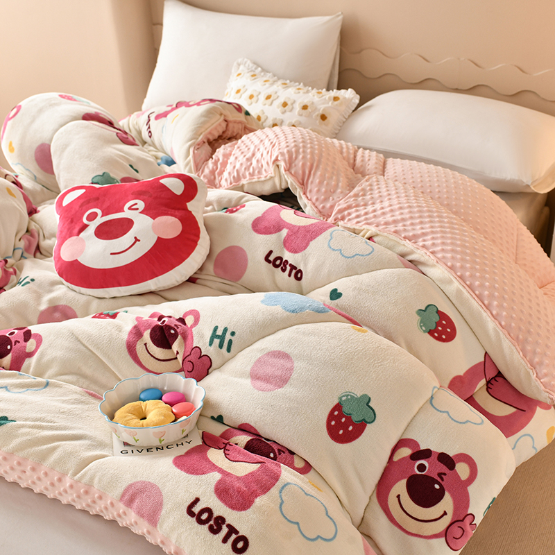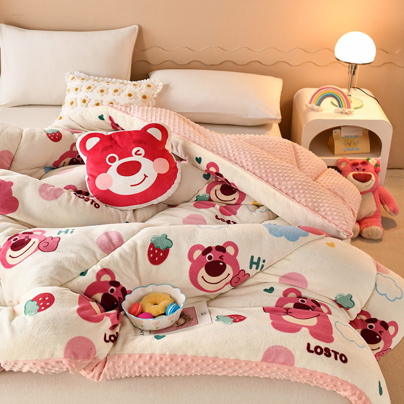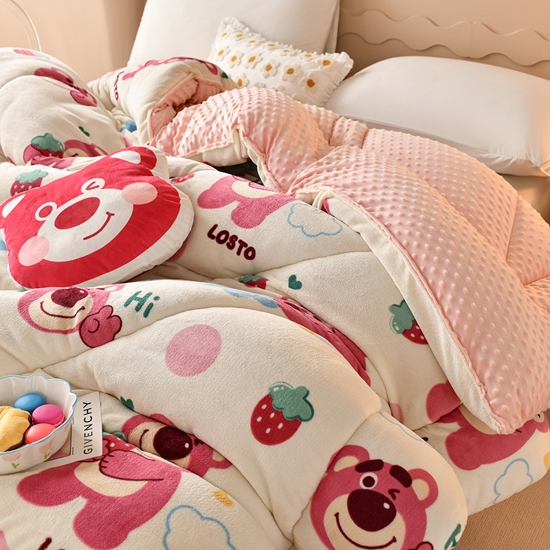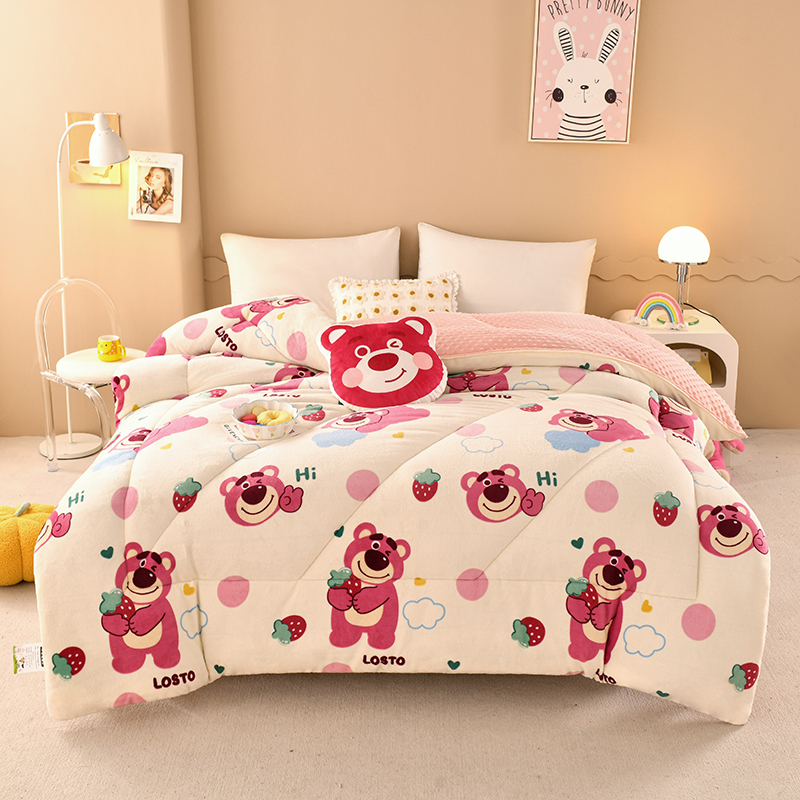 商品名称:梦初语 2023新款A类双面牛奶绒豆豆被冬被芯被子春秋被 草莓小熊