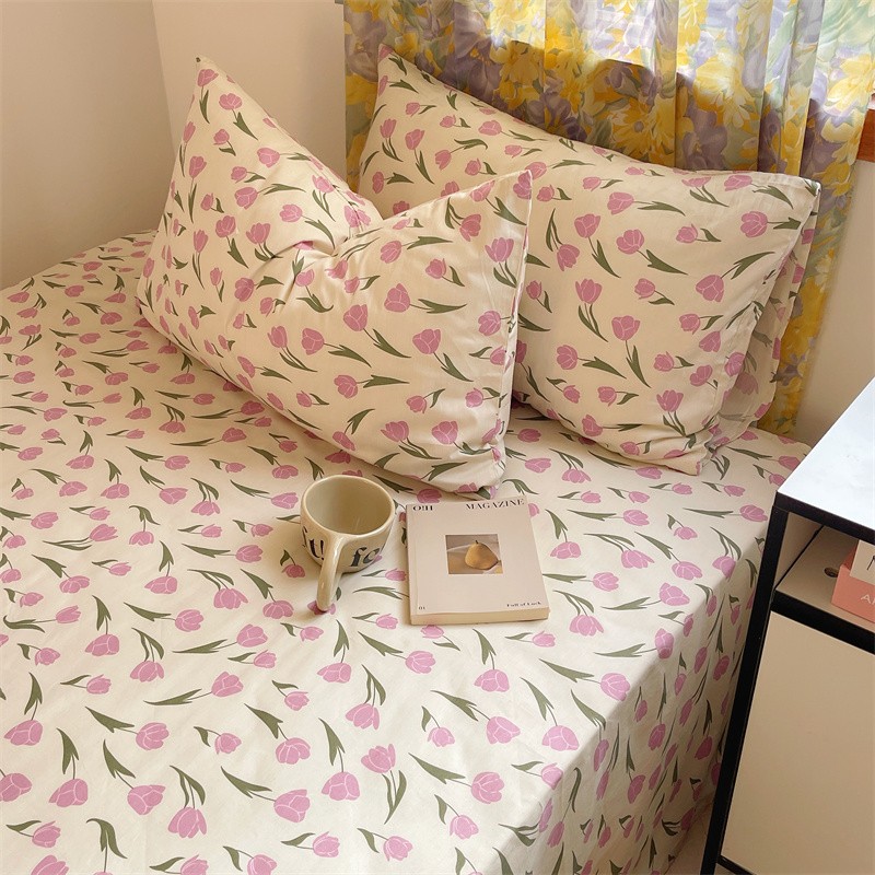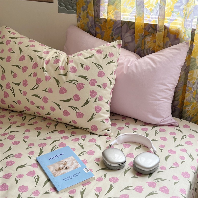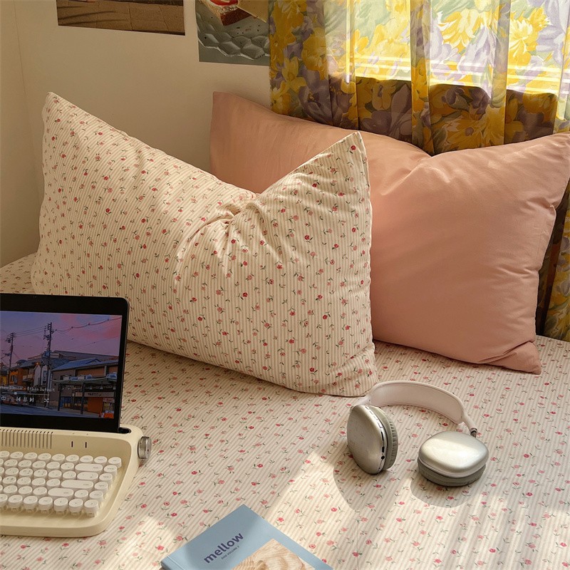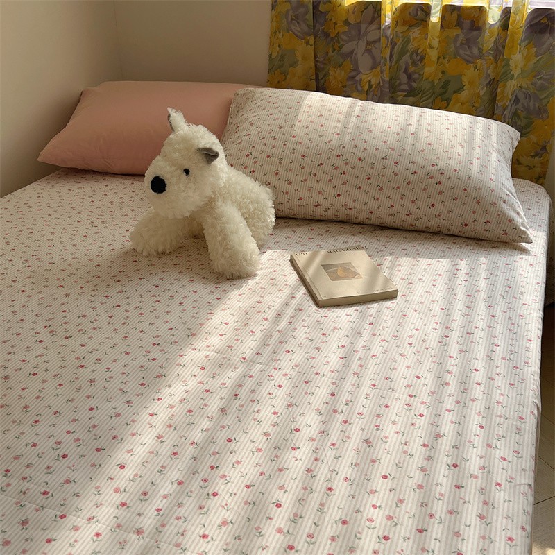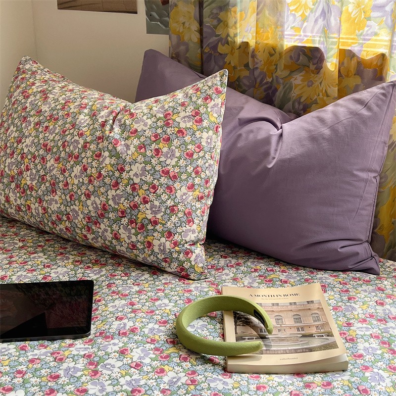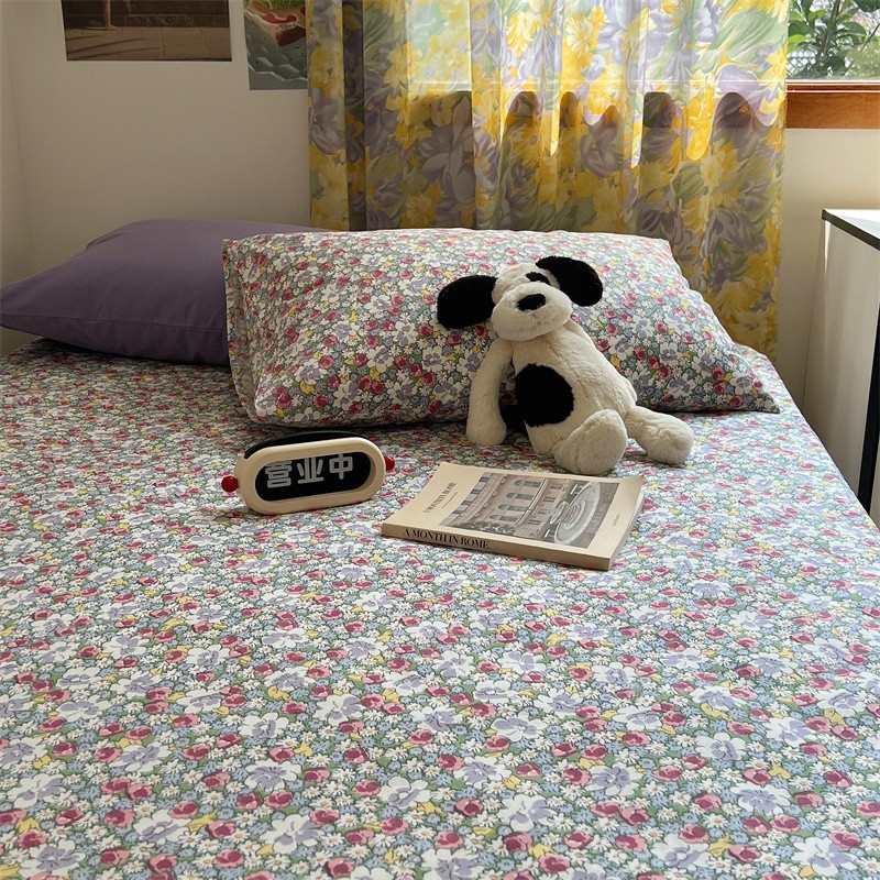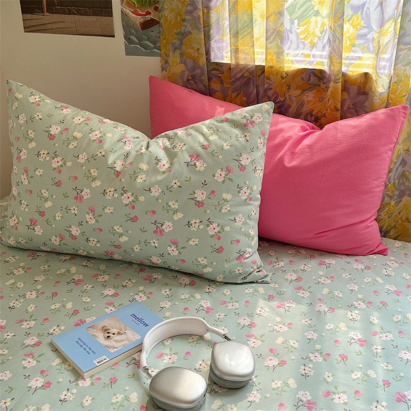 (总)桃喜 2024新款韩系ins博主风纯色碎花混搭40s水洗棉单床单