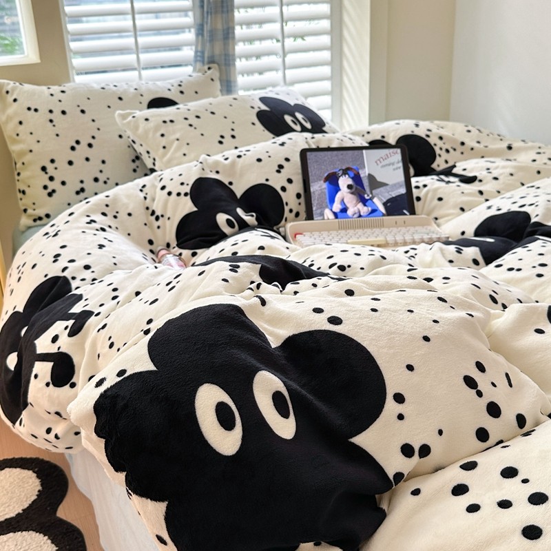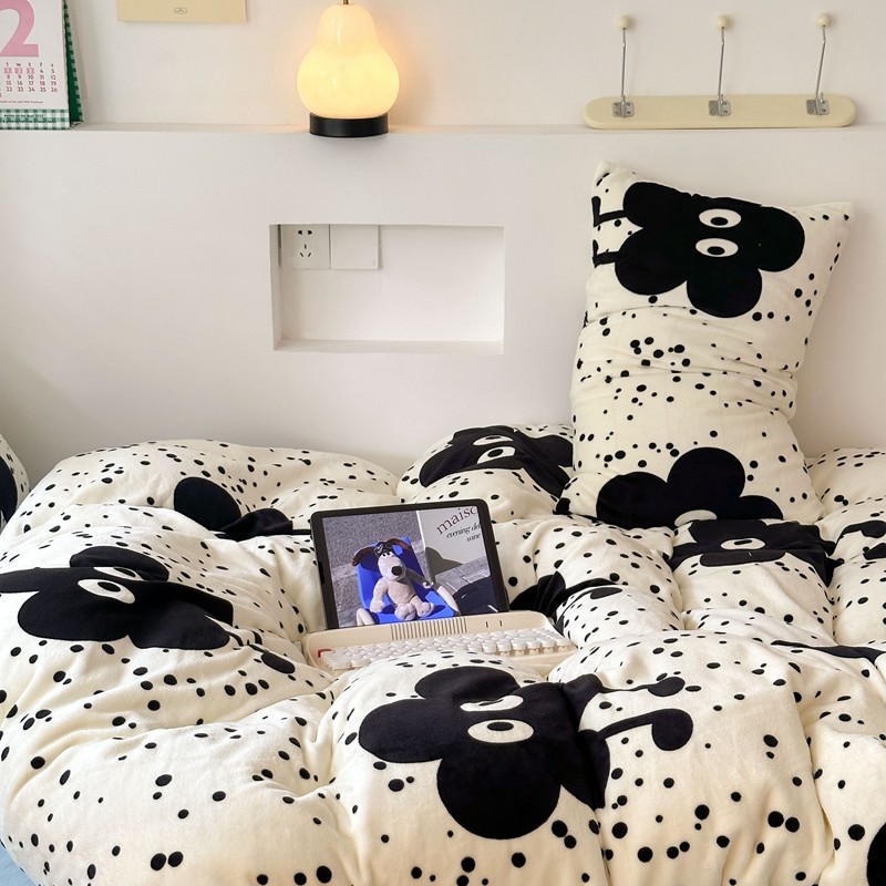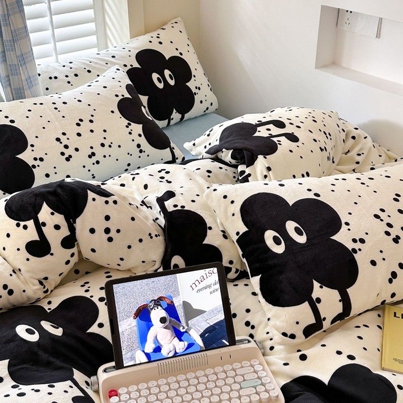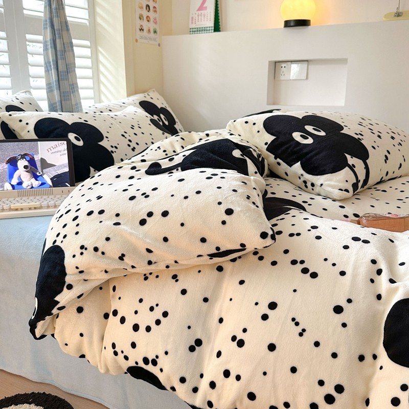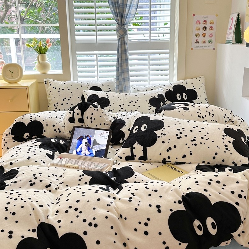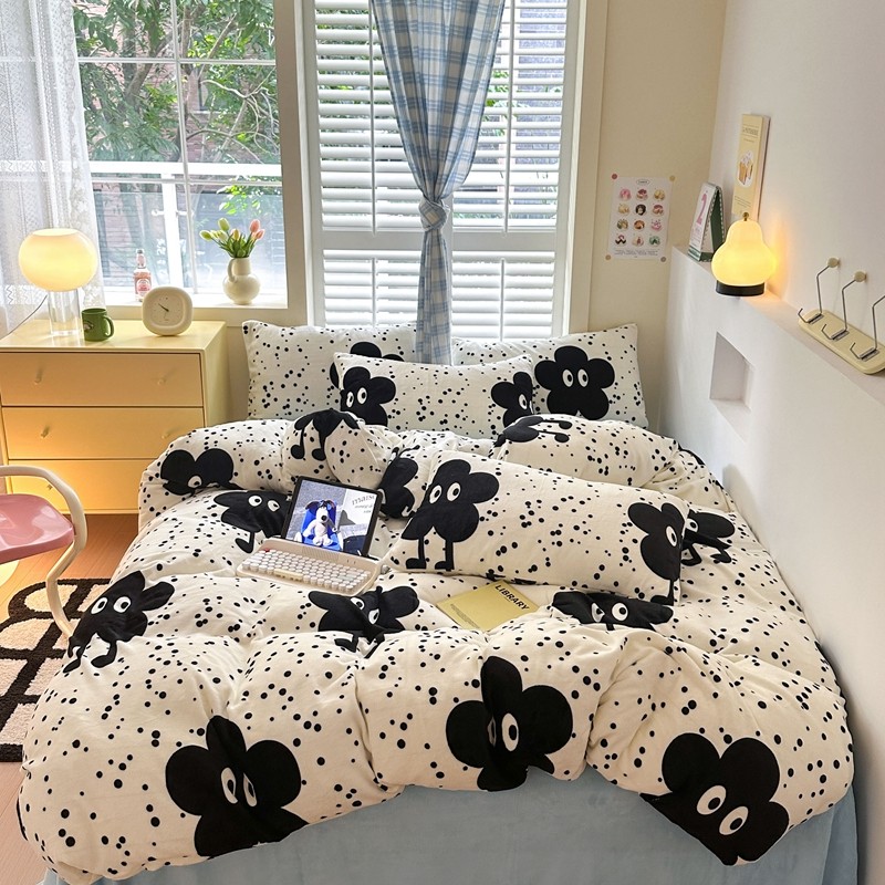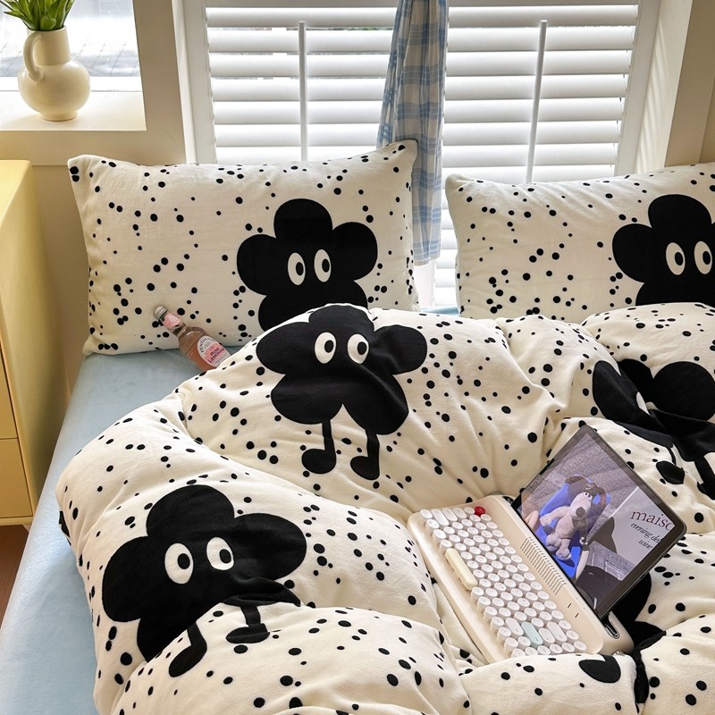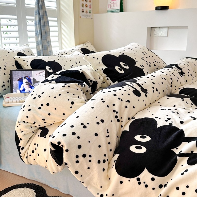 2023秋冬新款220克高克重牛奶绒印花四件套 煤球