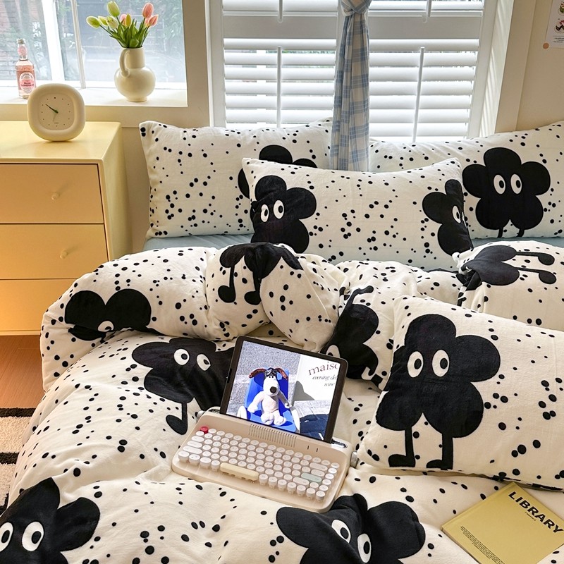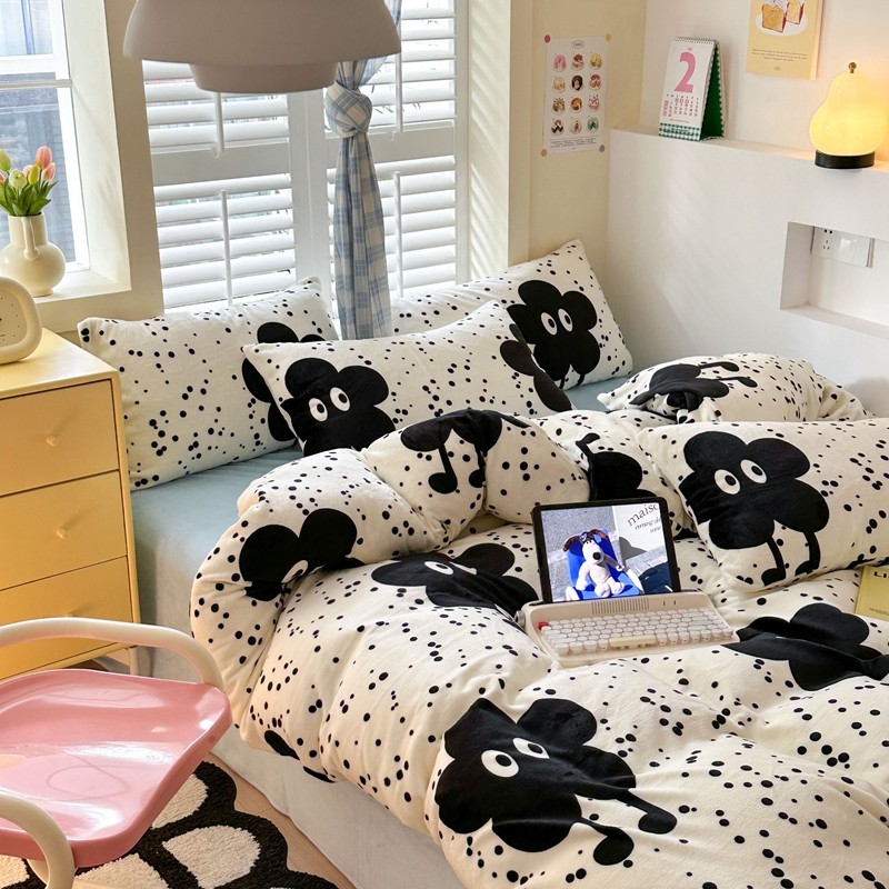 (总)N先生+V 13814689556 发大图/买家秀 2025新款韩式博主风花边款ins卡通牛奶绒四件套,爱心美蒂,彩色蝴蝶结,格子兔兔,欢乐猫咪,可爱熊仔,快乐独角兽,美梦甜心,波点狗狗,顽皮帕恰
