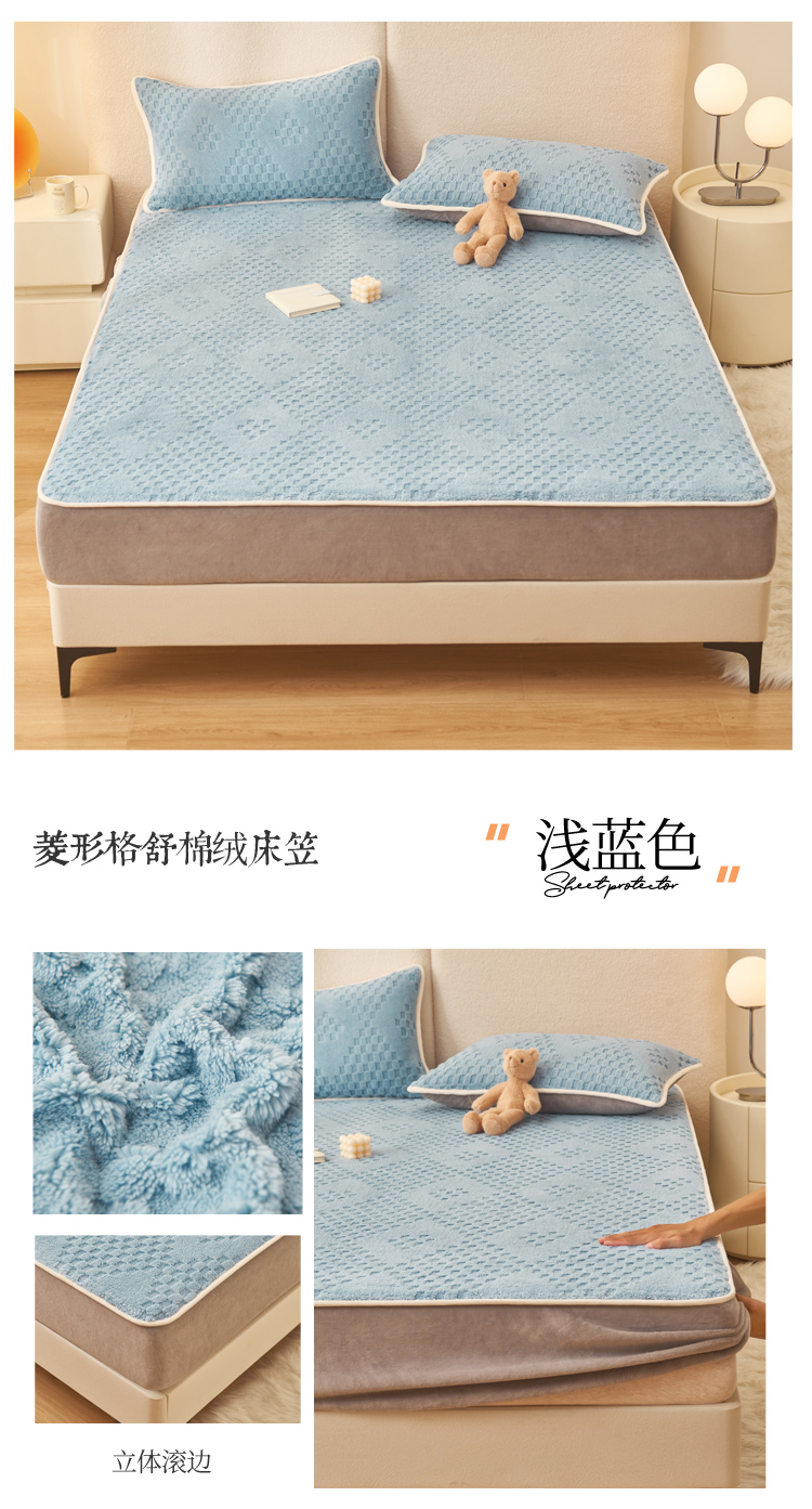 • 91家纺网 家纺一手货源 找家纺 21度C 2023新款菱形格舒棉绒床笠 菱形格-浅蓝色