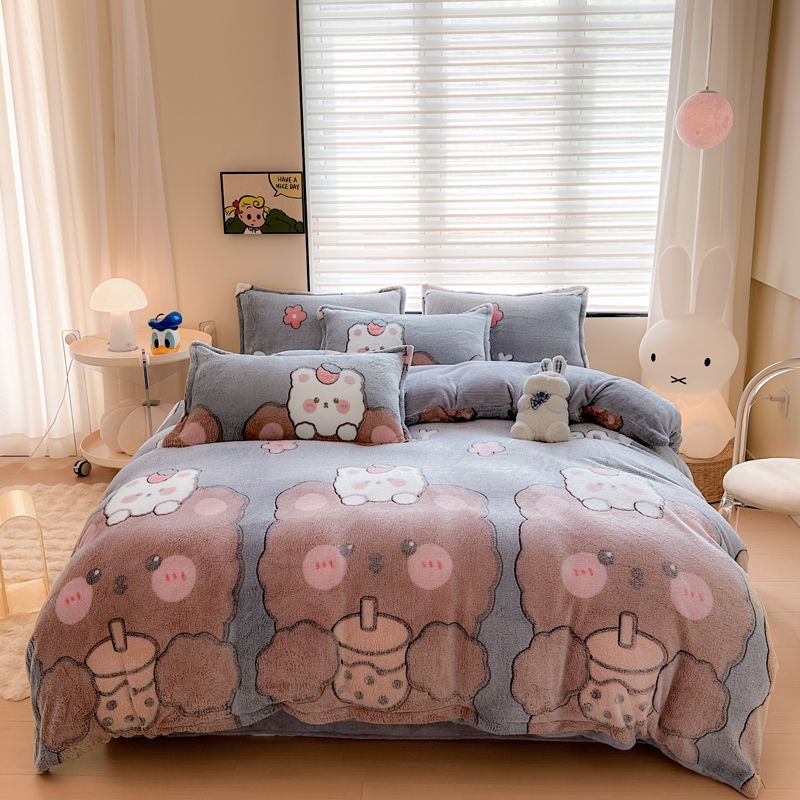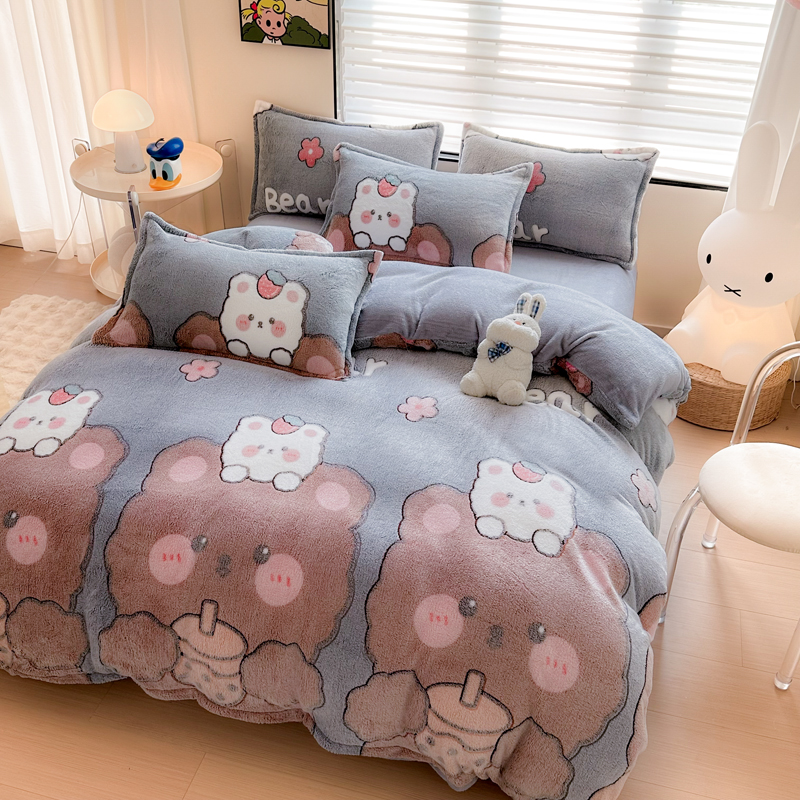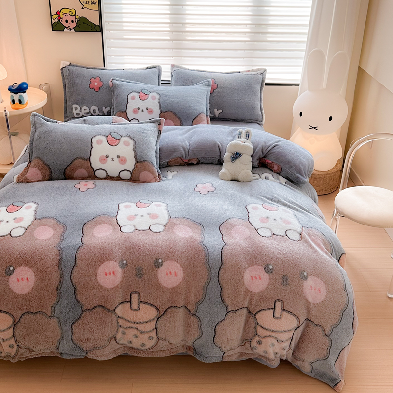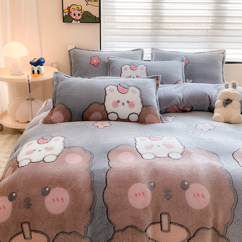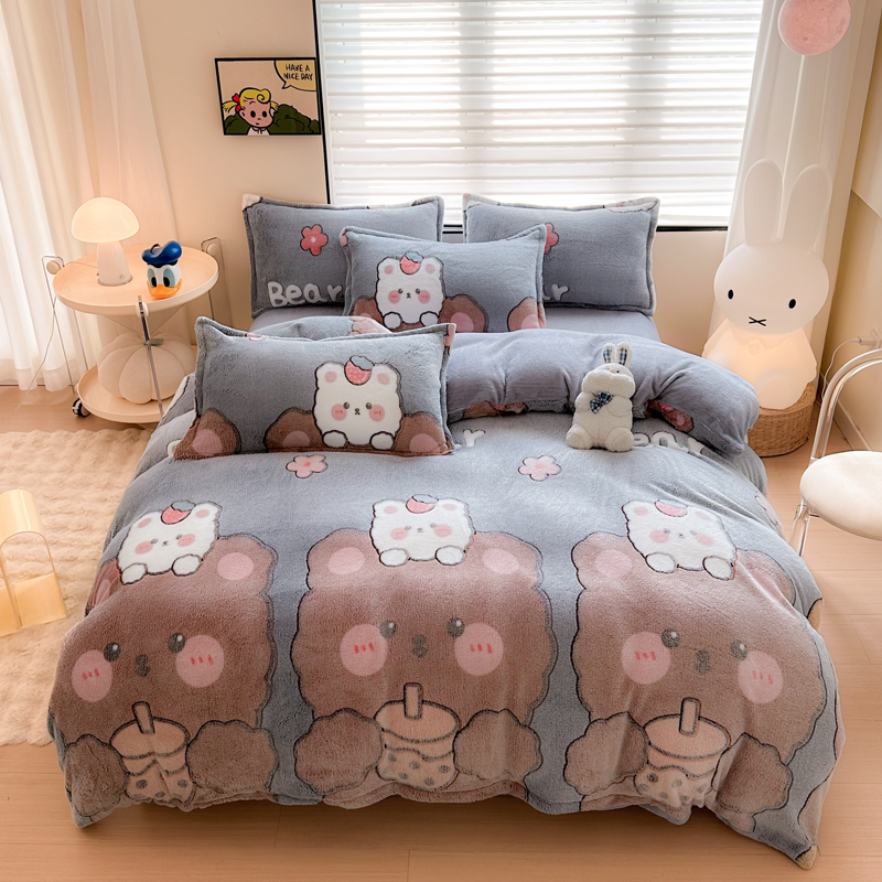 美莱 2023爆款雪花绒四件套法莱绒牛奶绒被套量大价格优惠 啵啵熊
