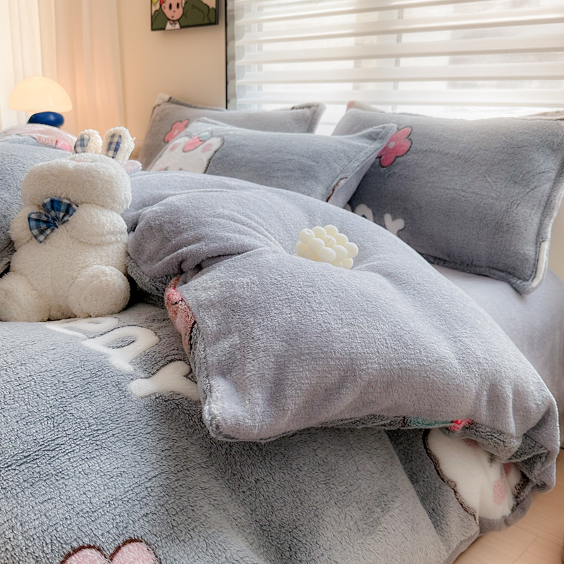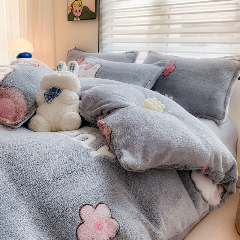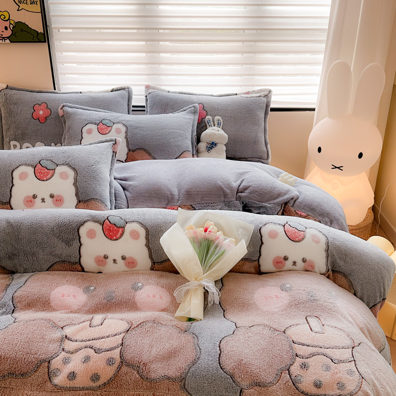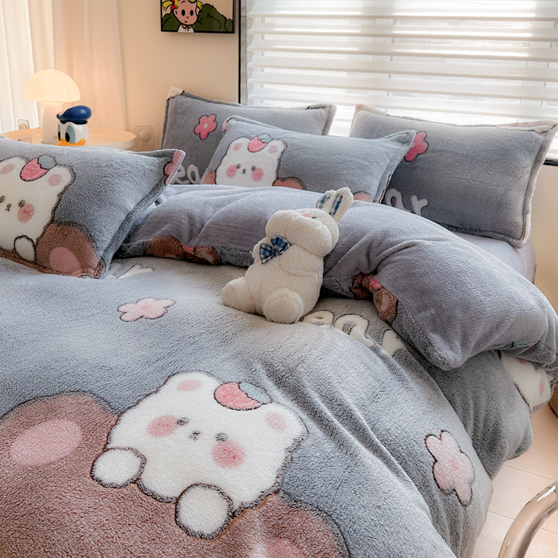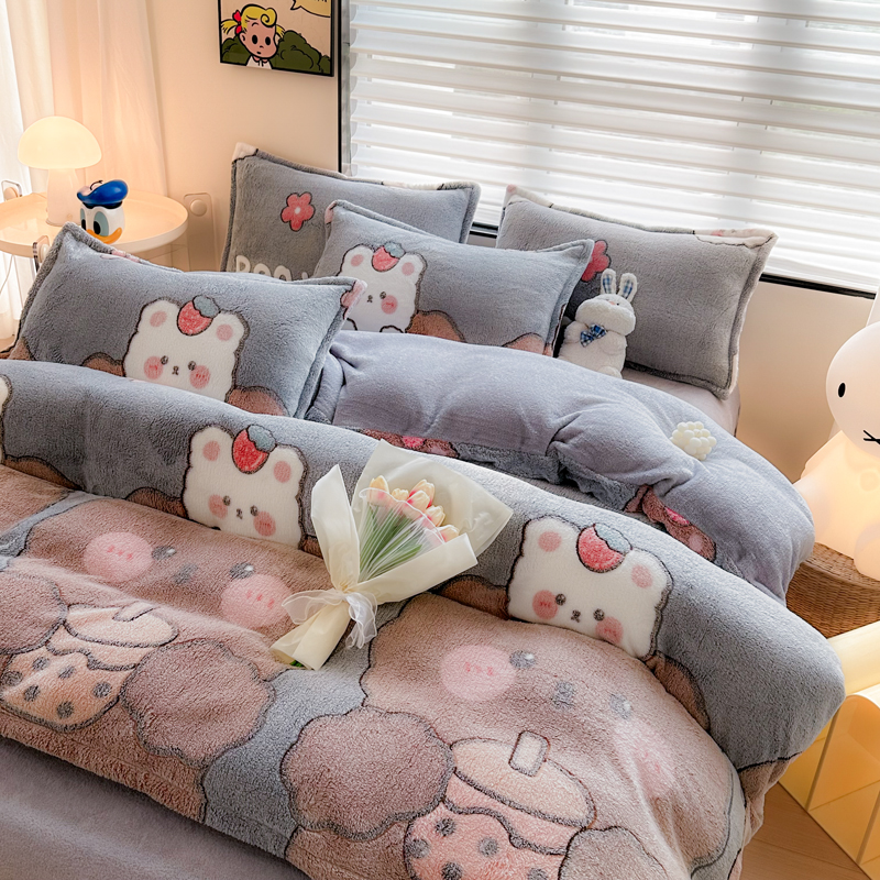 美莱 2023爆款雪花绒四件套法莱绒牛奶绒被套量大价格优惠 啵啵熊