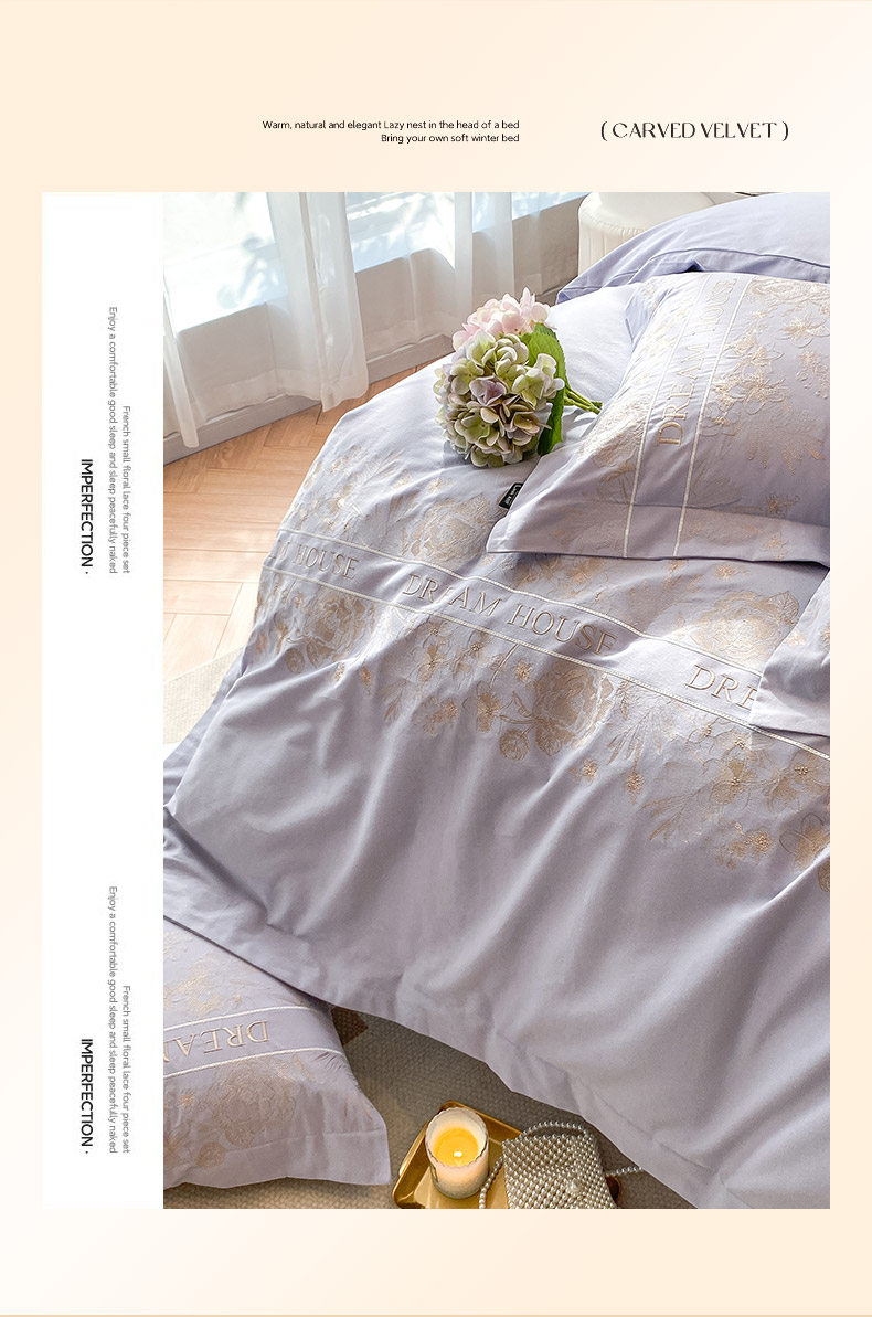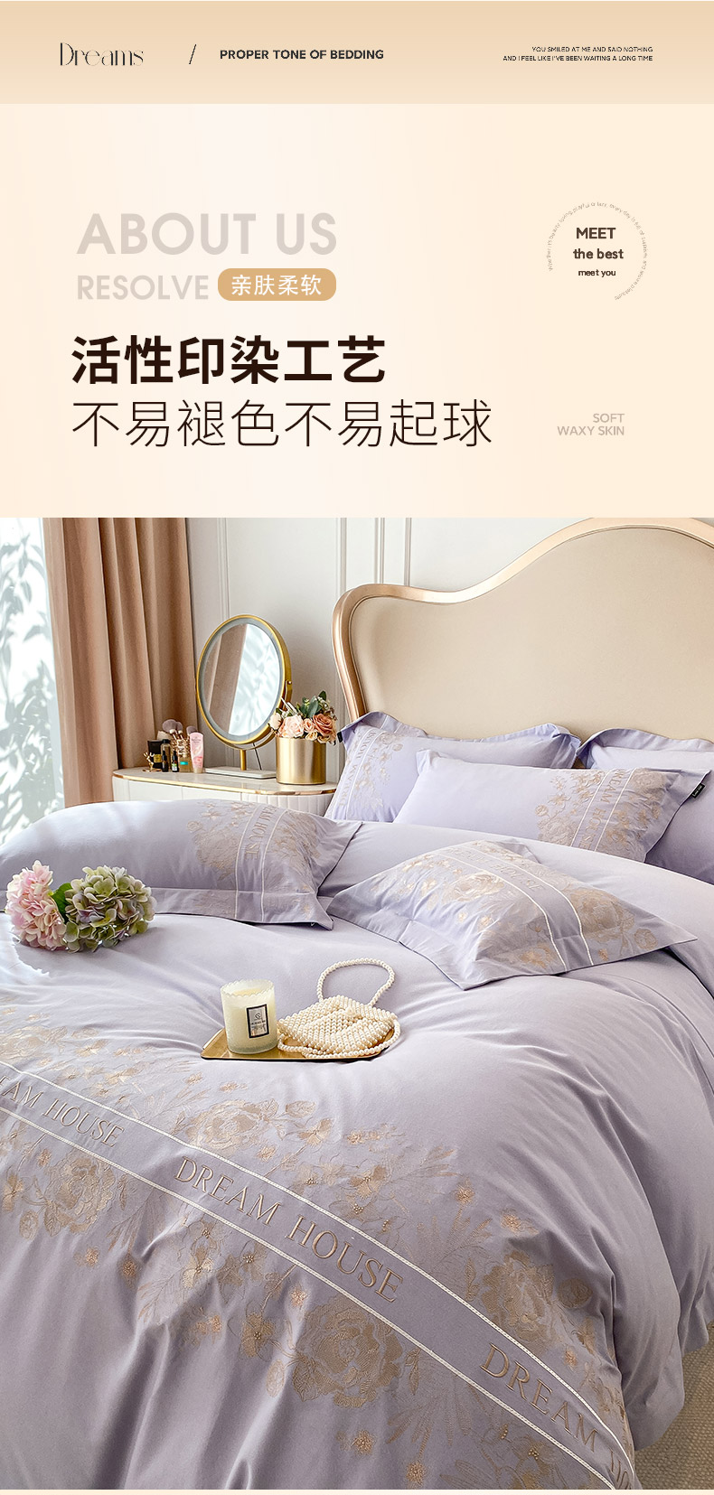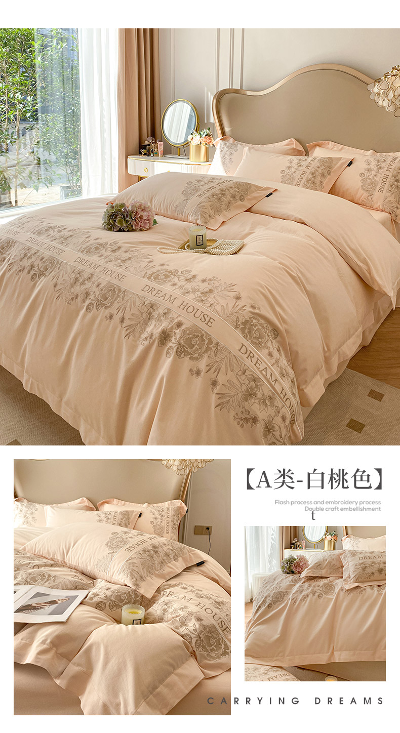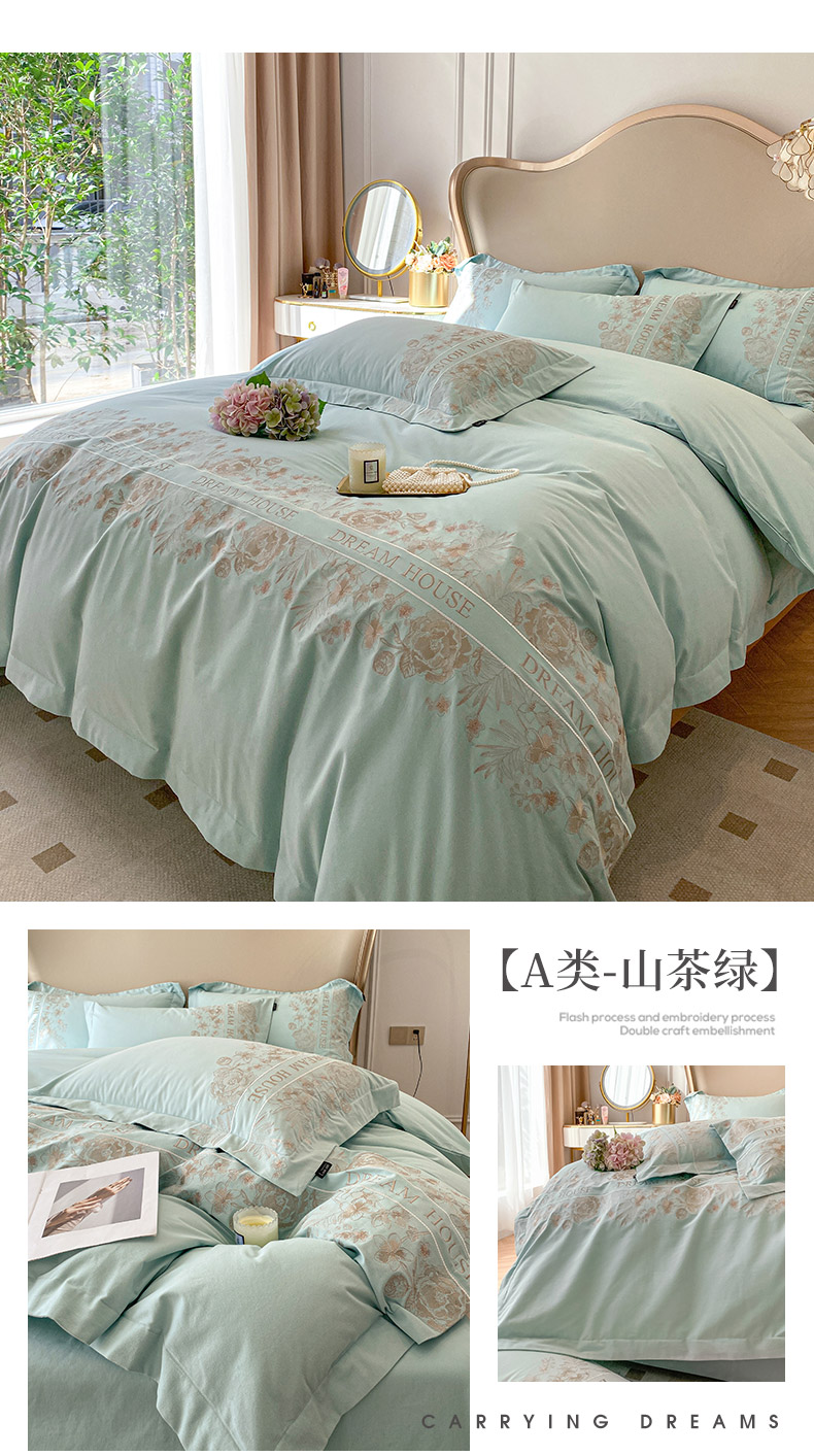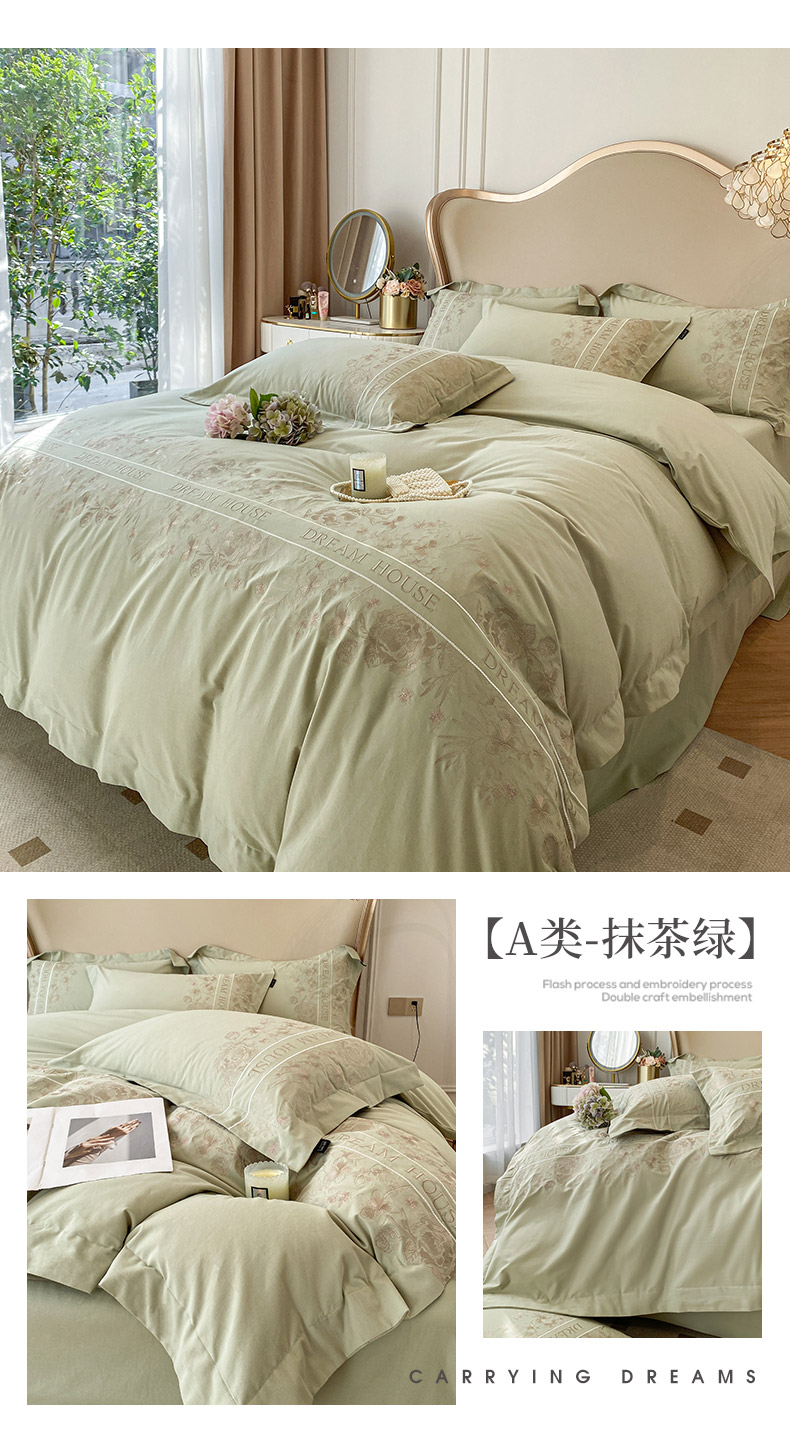 (总) 2025春夏长绒棉四件套纯棉全棉轻奢风床单被套重工刺绣床上用品,芊羽梦-白粉,芊羽梦-茶绿,芊羽梦-黛紫,芊羽梦-慕蓝,芊羽梦-颜粉