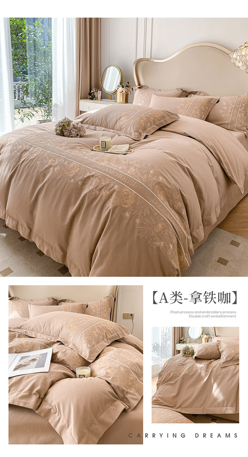 (总)2025新款轻奢风A类100支长绒棉四件套全棉纯棉重工刺绣床单床笠夹棉床笠床盖款高端床上用品-星慕,白粉,白蓝,茶绿,黛紫,慕蓝,奶玉,颜粉