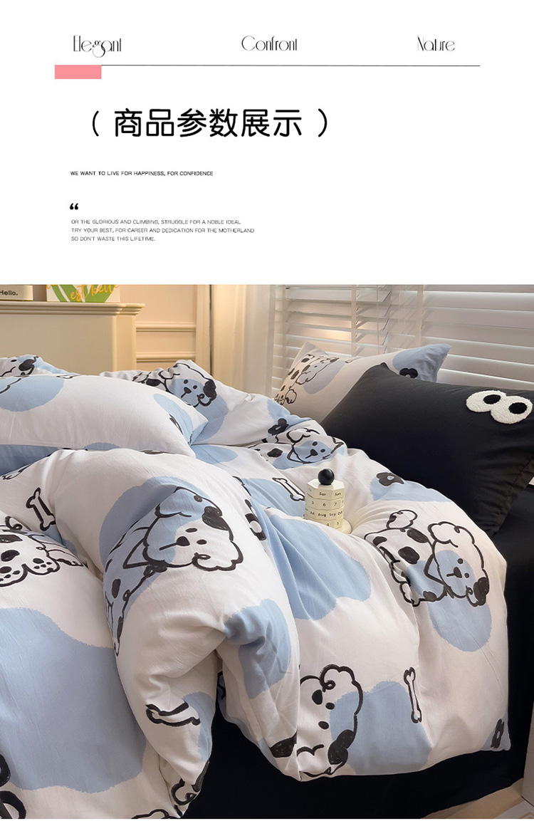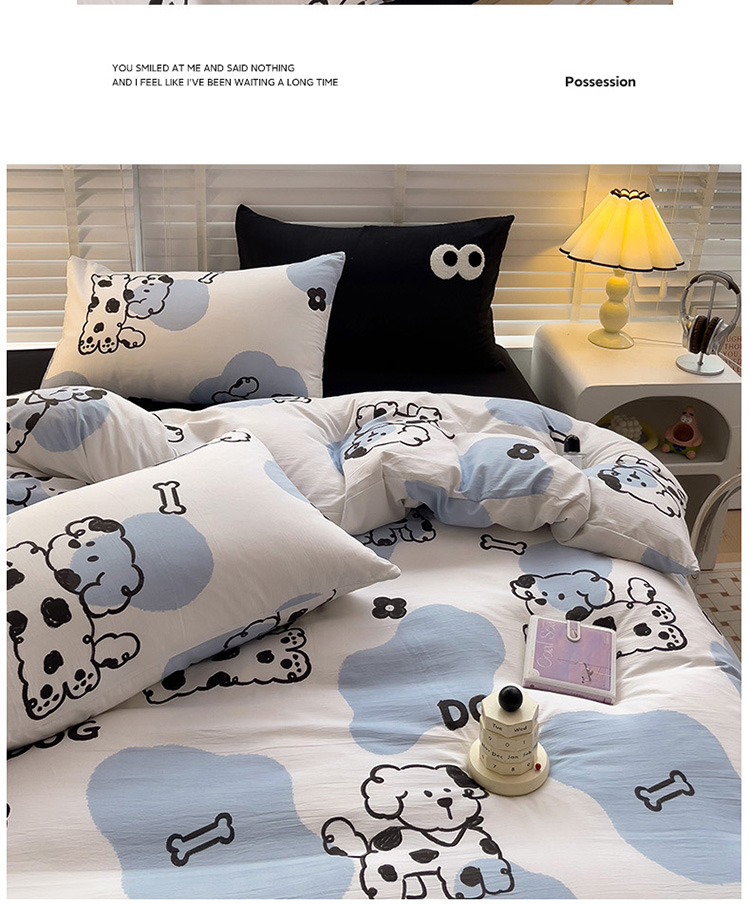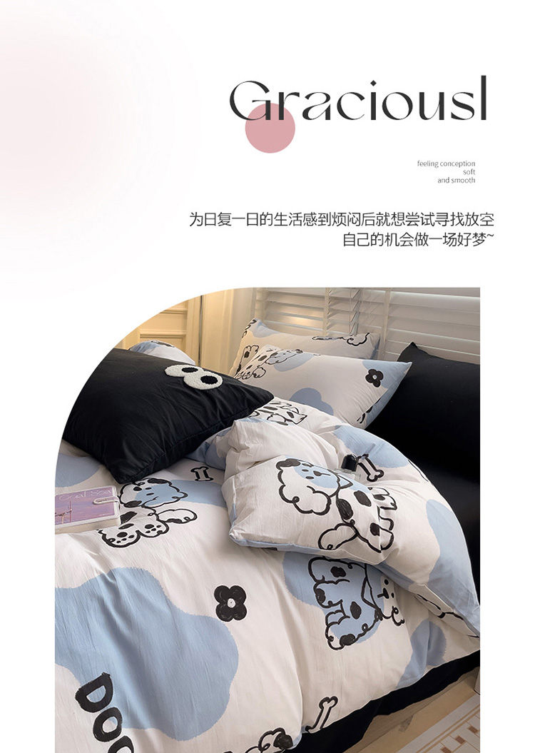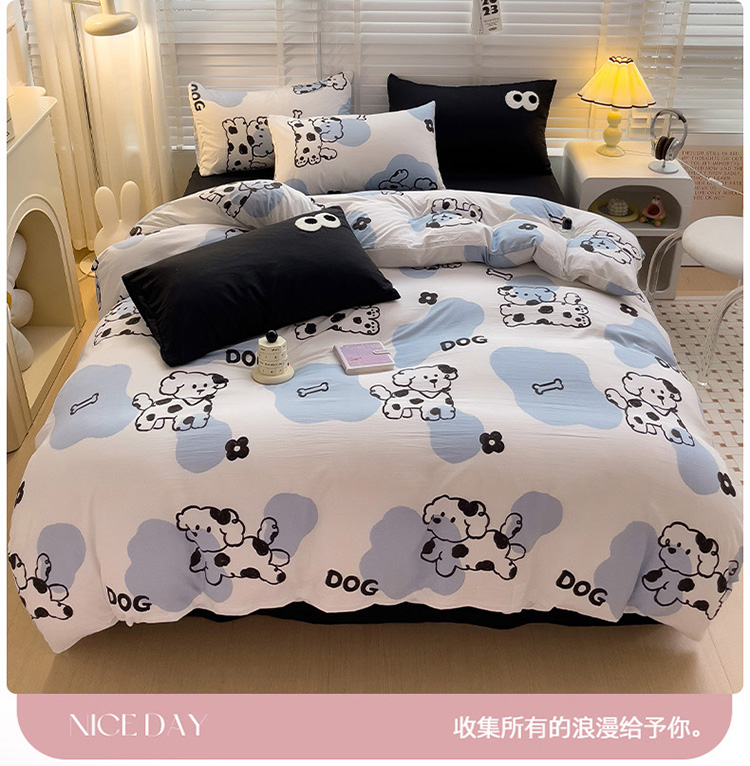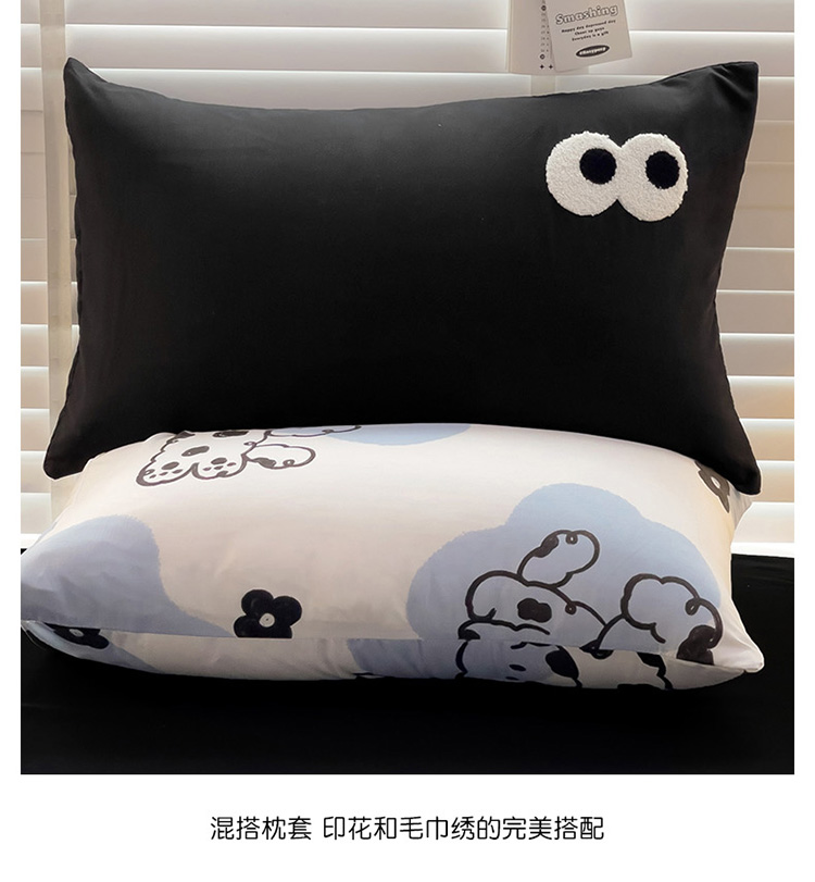 当前位置: 91家纺网 > 商品网购 > 床品套件 > 四件套 > 水洗棉四件套 > 奈颜 2023新款爆款水洗棉双层纱毛巾绣甜酷风四件套-大眼 甜酷涂鸦狗-黑