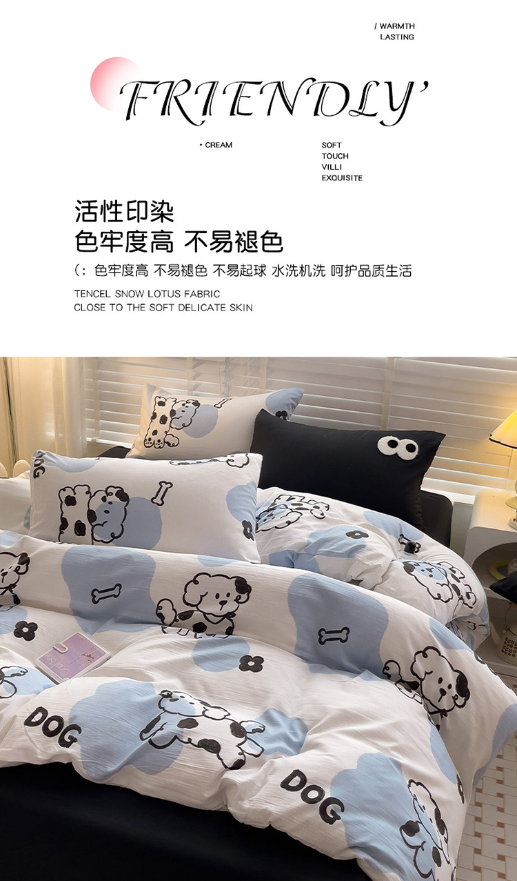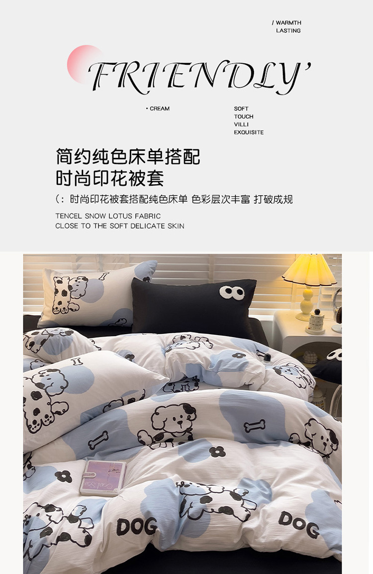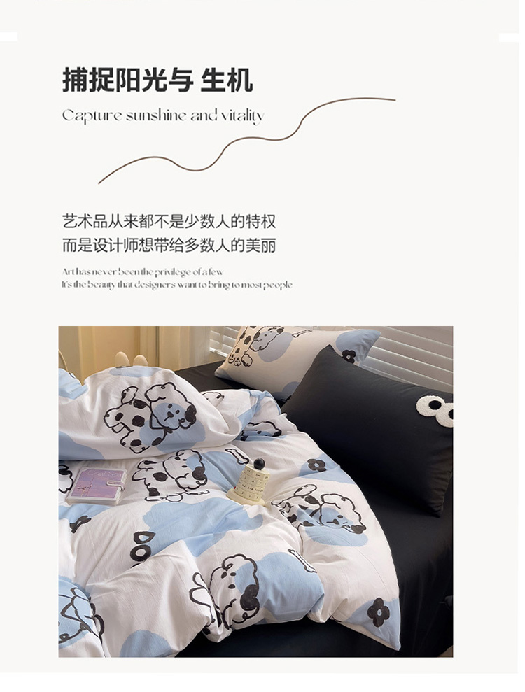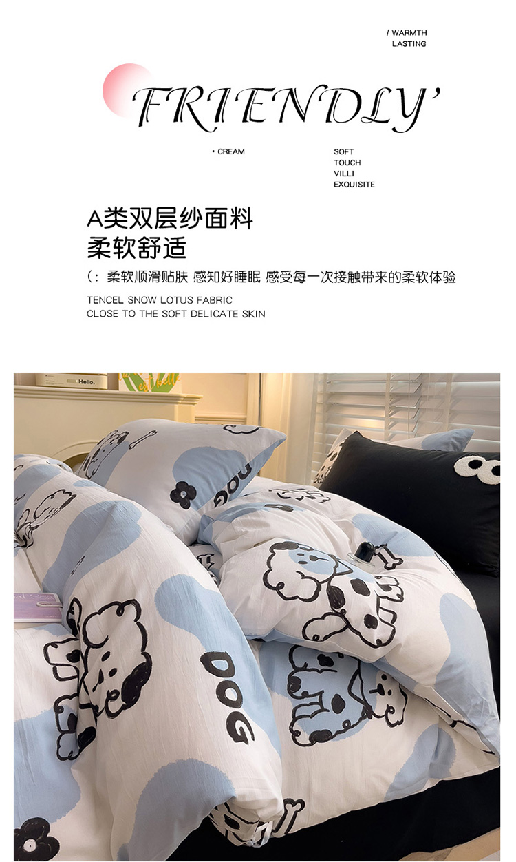 当前位置: 91家纺网 > 商品网购 > 床品套件 > 四件套 > 水洗棉四件套 > 奈颜 2023新款爆款水洗棉双层纱毛巾绣甜酷风四件套-大眼 甜酷涂鸦狗-黑