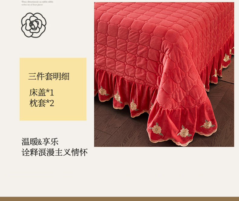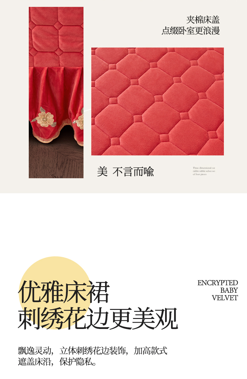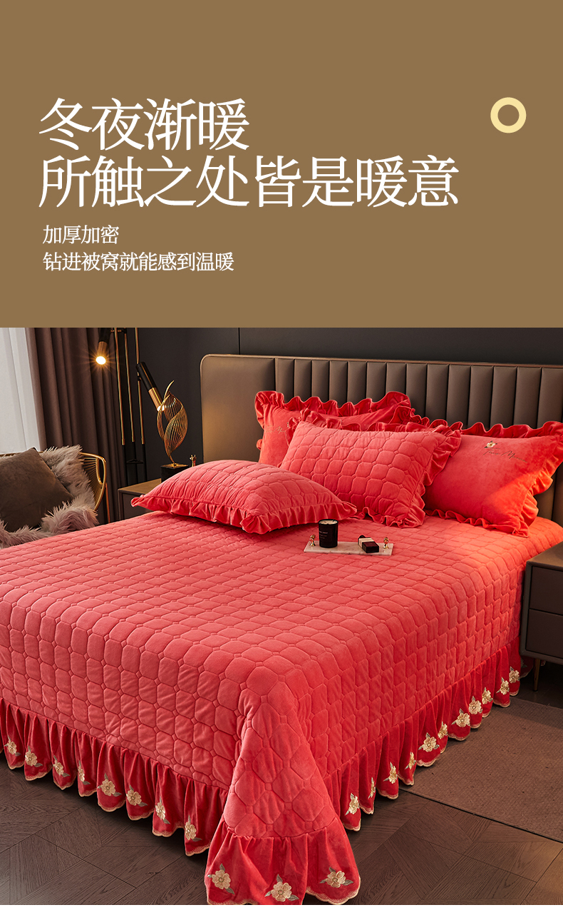 (总)恒爱 2022秋冬水晶绒翩翩花舞夹棉床裙四件套,大红色,豆沙红,橄榄绿,公主粉,桔色,咖啡色,孔雀绿,拉菲红,罗兰紫,玫红色,美人玉,米白色,米驼色,抹茶绿,浅灰色,紫色