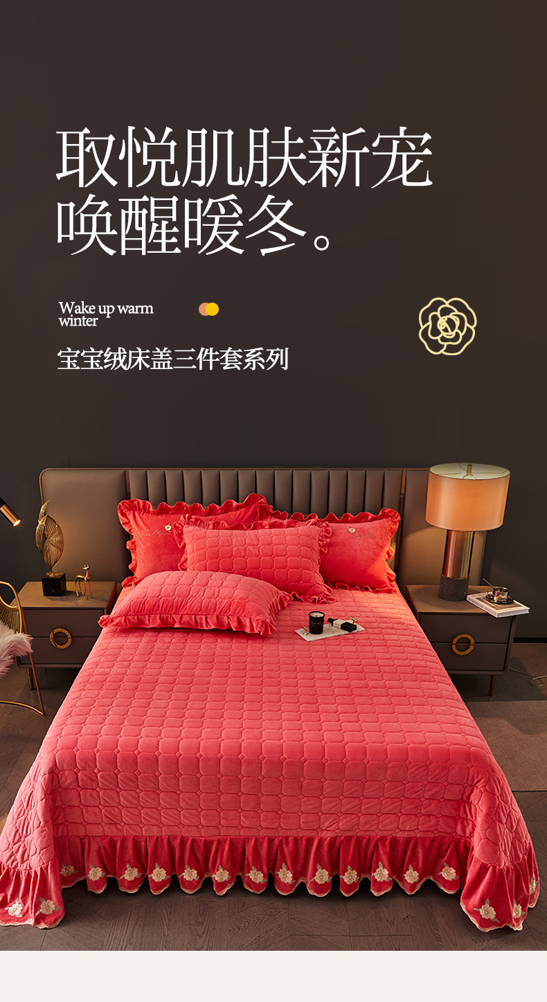 商品名称:恒爱 2023新款温暖舒适加密宝宝绒床盖三件套-邂逅系列 砖红