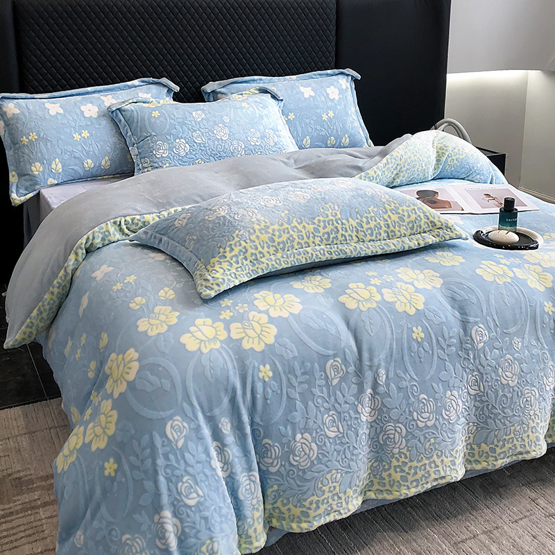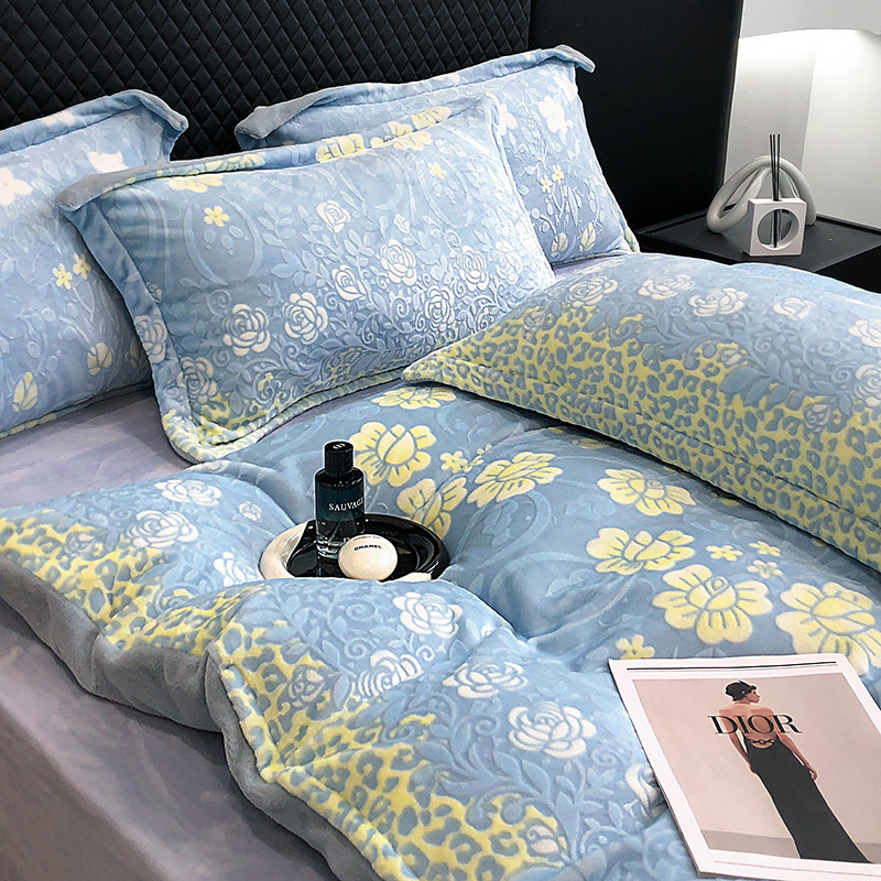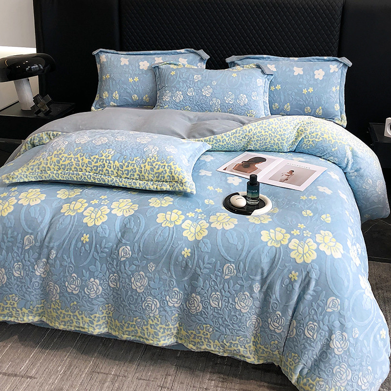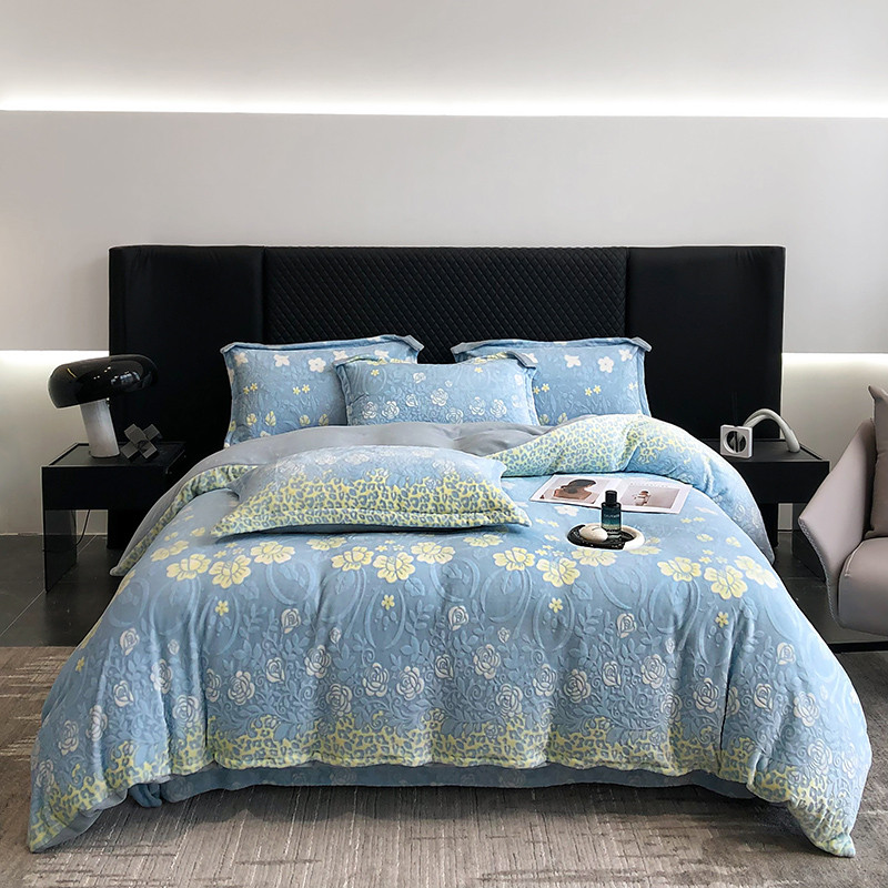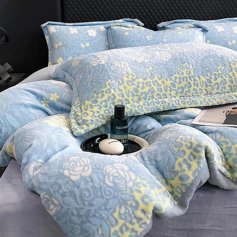 商品名称:大米家居 2023新款230克8斤重着色雕花绒四件套 春色