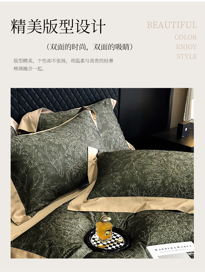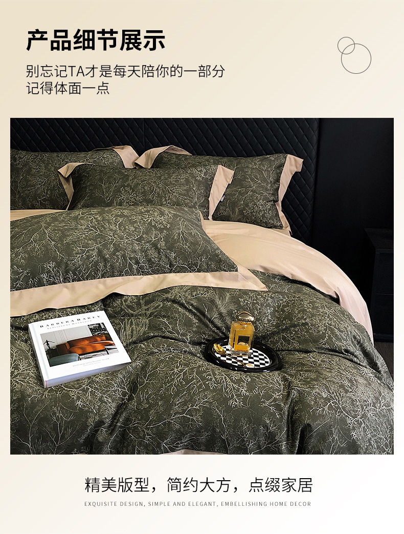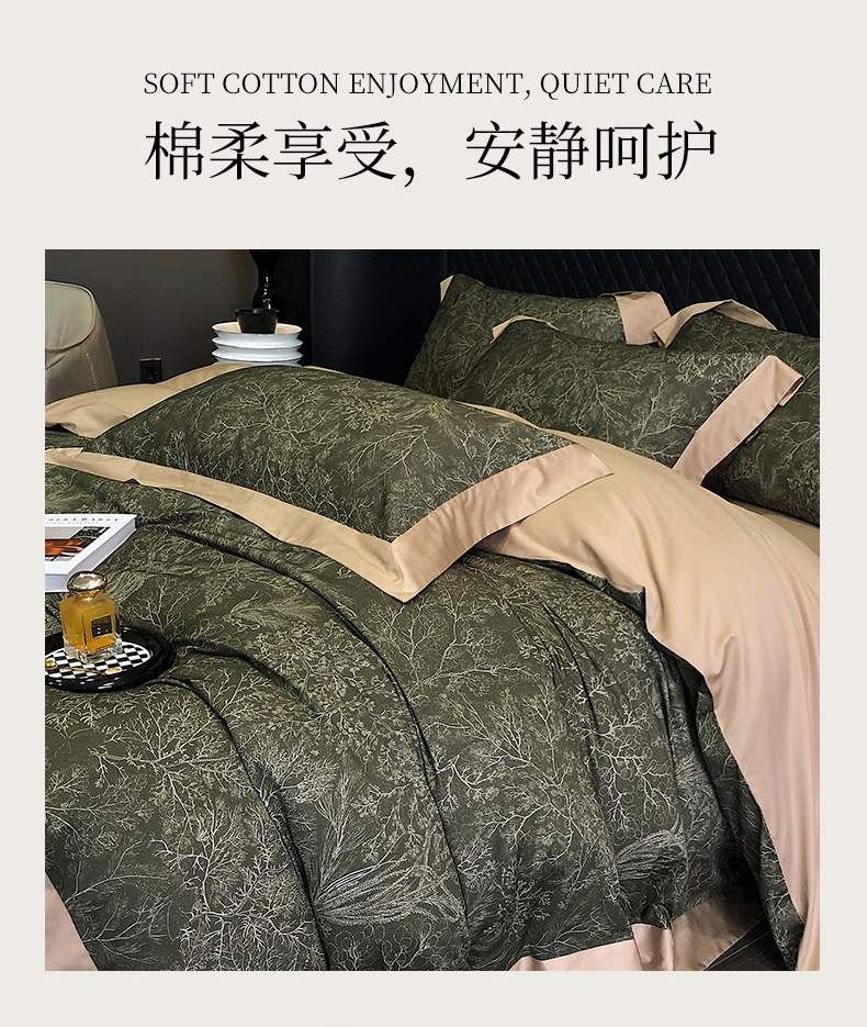 (总)爱缦 2024新款尼罗河花园系列60支陶瓷空气磨毛四件套,尼罗河花园粉,尼罗河花园绿