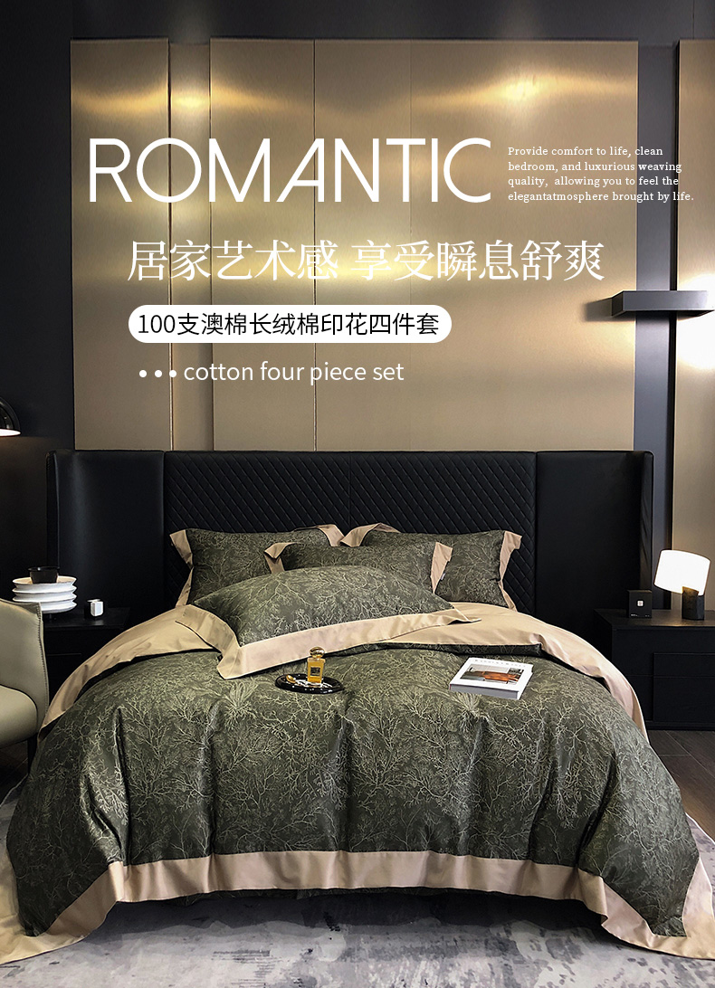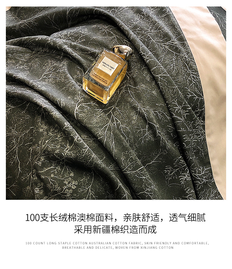 商品名称:爱缦 2023新款100支澳棉长绒棉印花四件套 素写