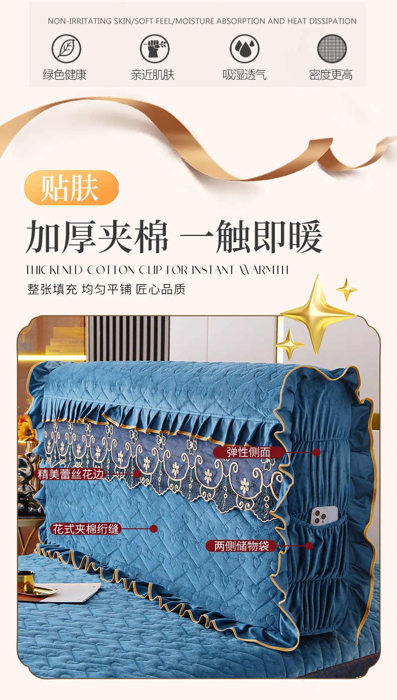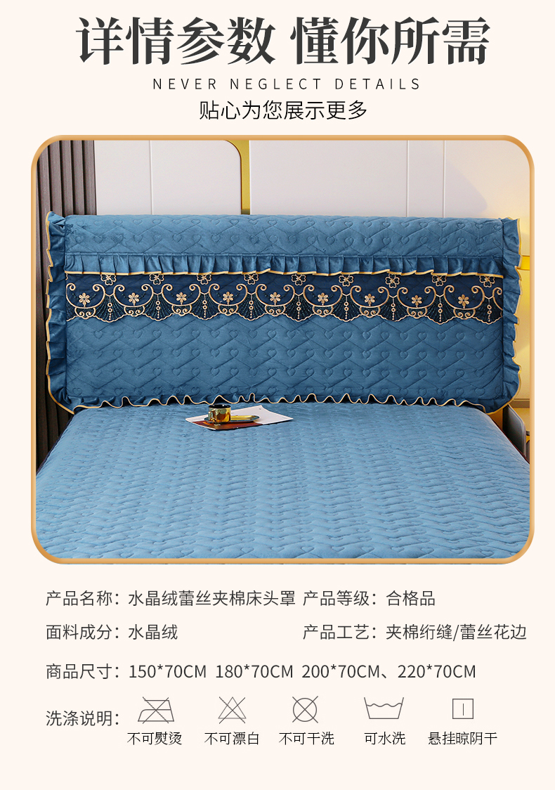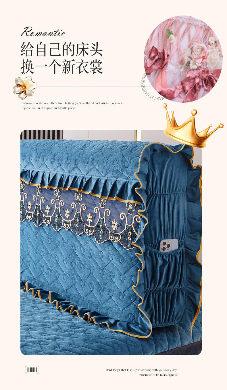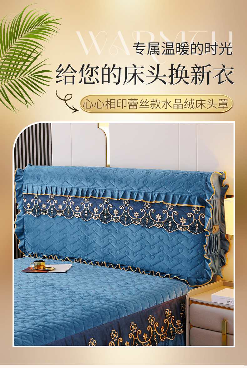 新款心心相印蕾丝款床头罩 心心相印蕾丝款-蔚蓝