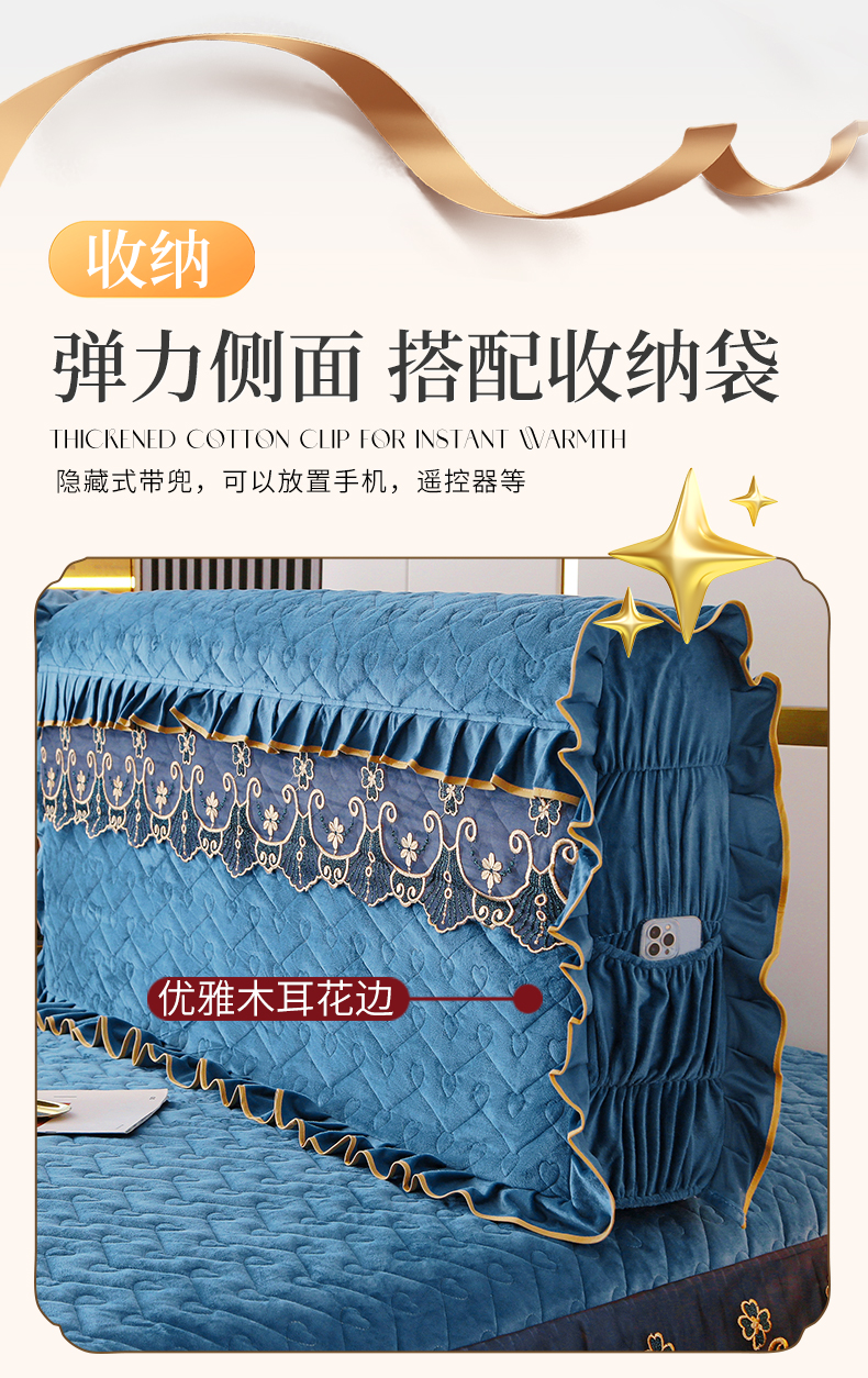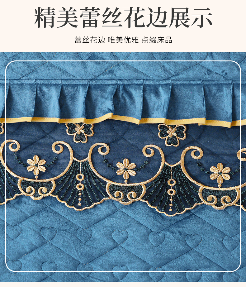 (总)屹成家纺2025新款水晶绒夹棉绗缝蕾丝床裙三件套(塞纳河畔)床裙单件起售价不低于105元,大红,豆沙,翡翠绿,粉玉,橄榄绿,蔚蓝,银灰