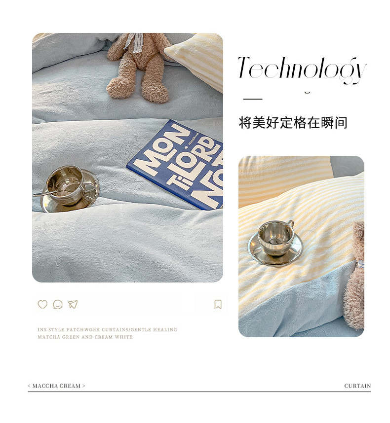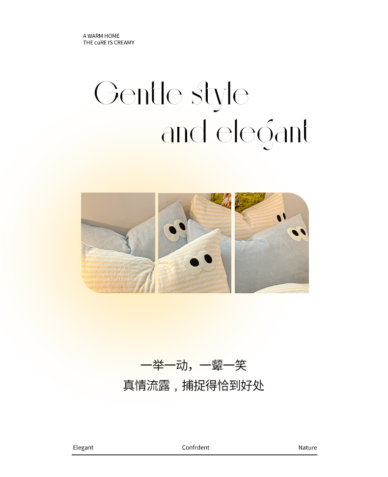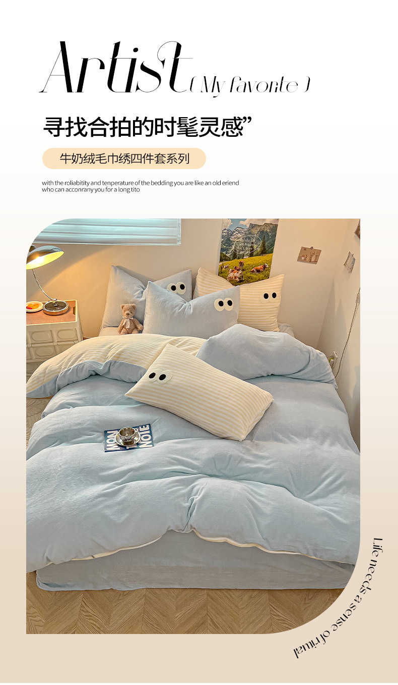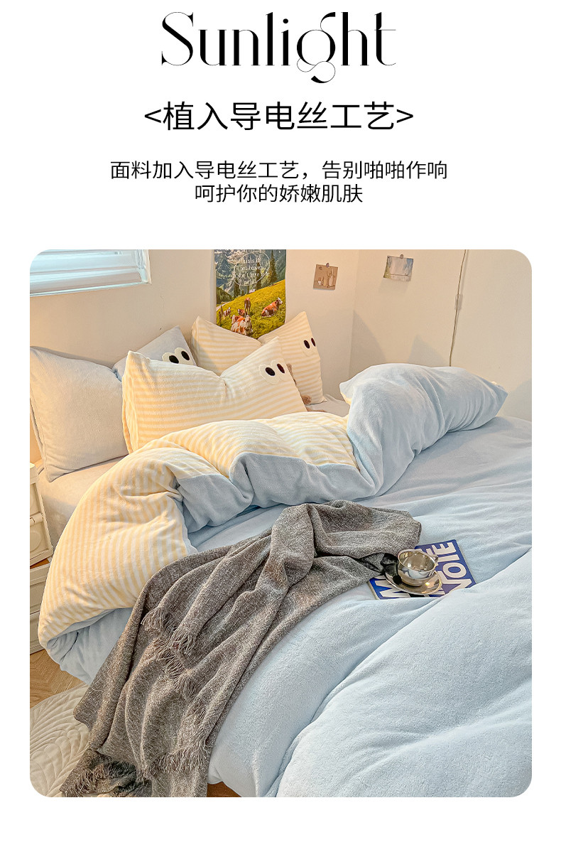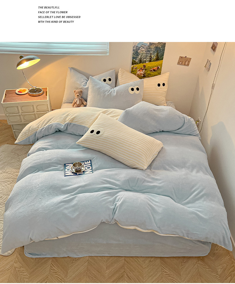 商品名称:韩都家居 2023新款加厚牛奶绒拼色四件套 大眼萌-小黄条