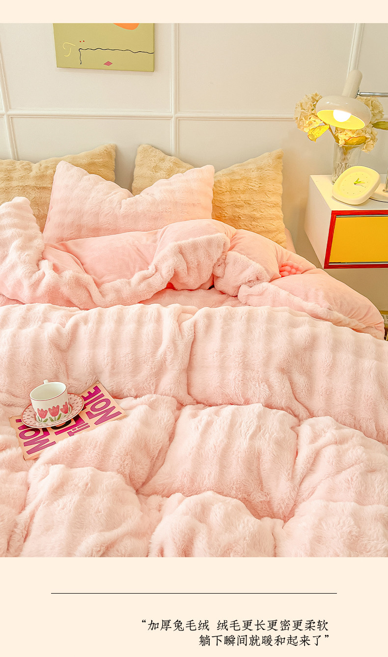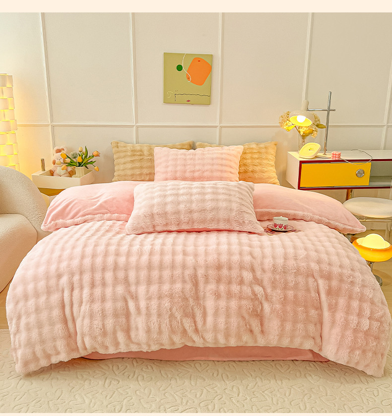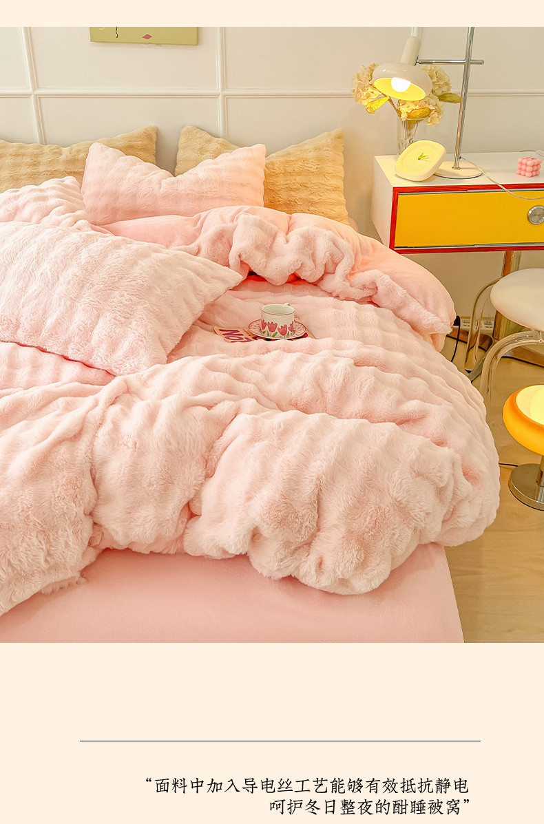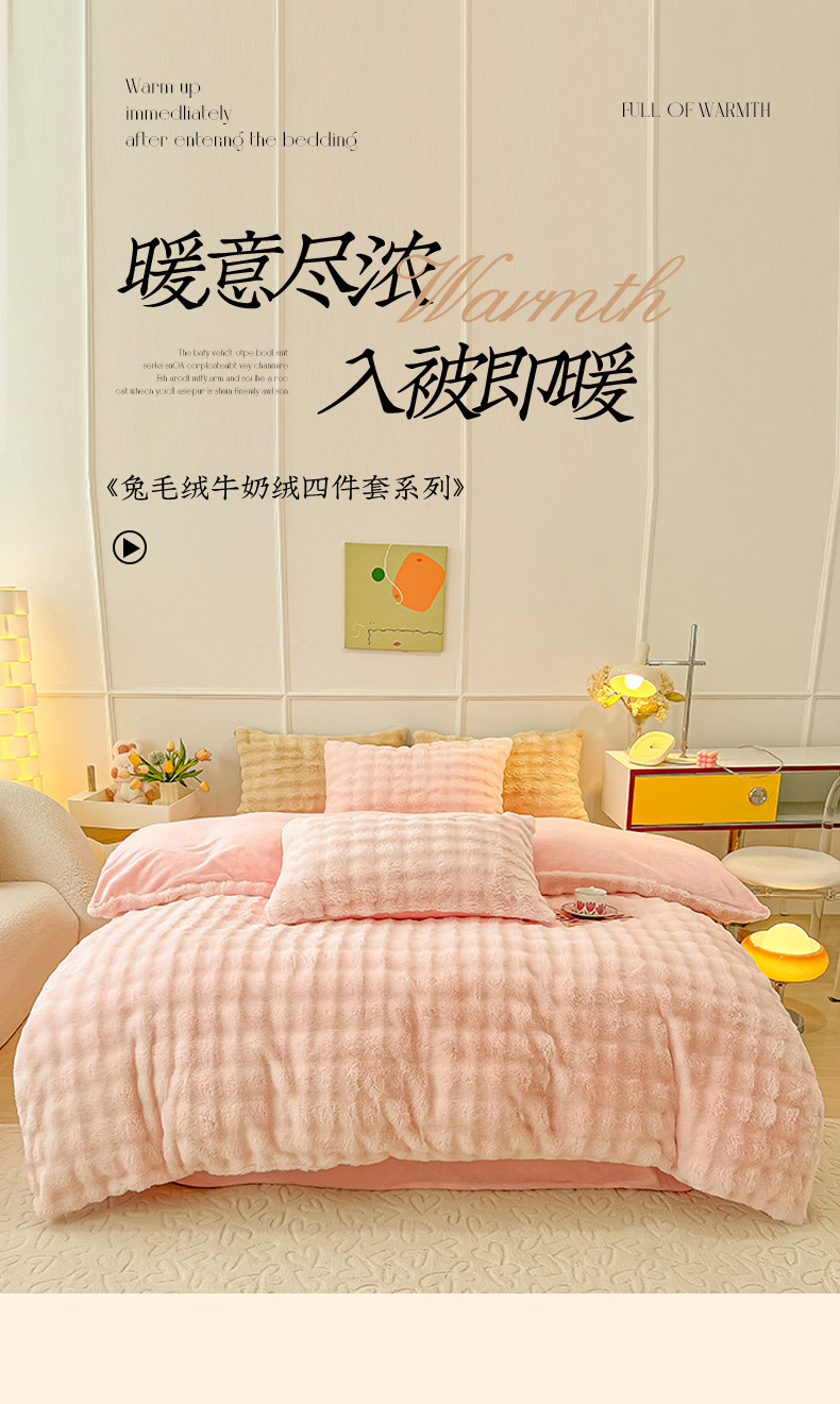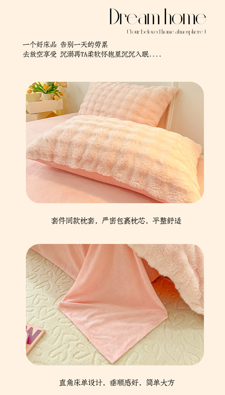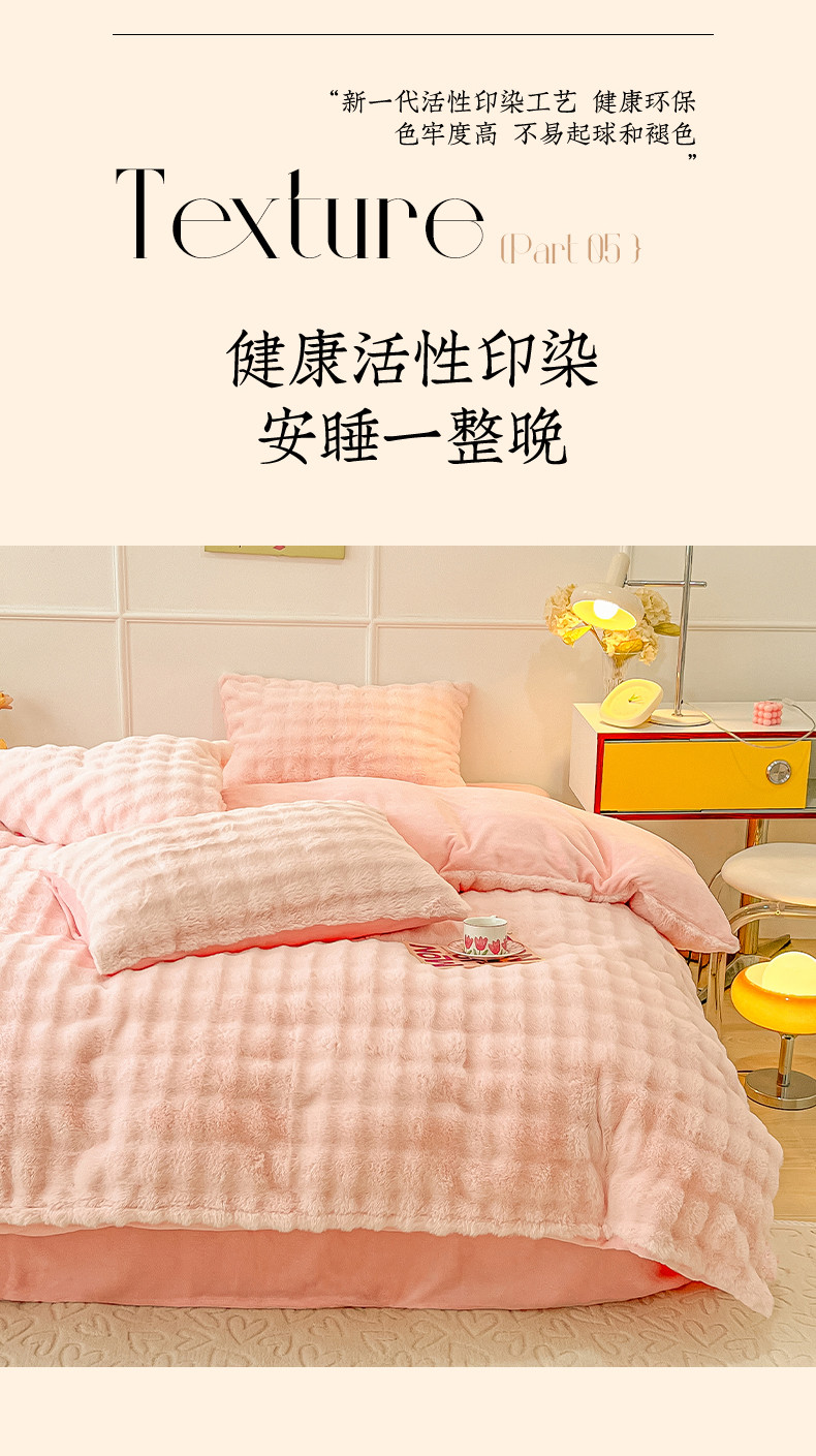 商品名称:韩都家居 2023新款泡泡兔绒牛奶绒四件套 泡泡兔绒-粉玉