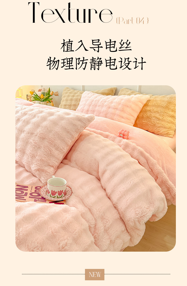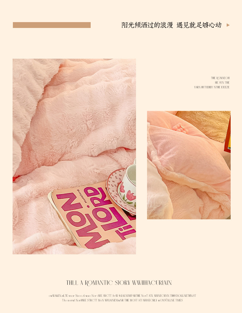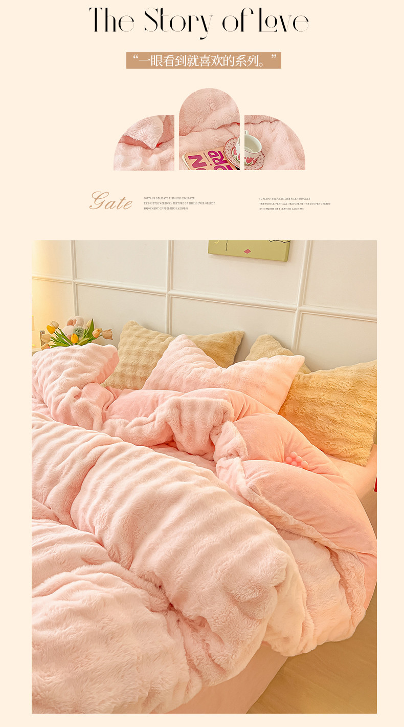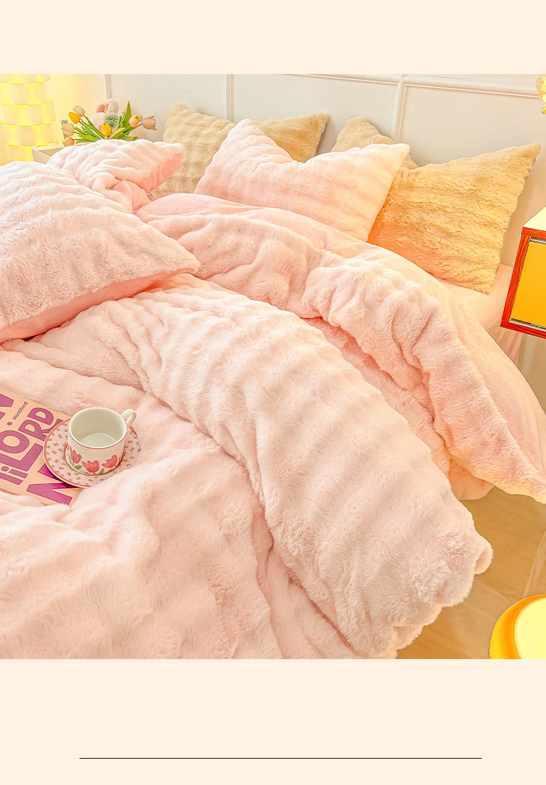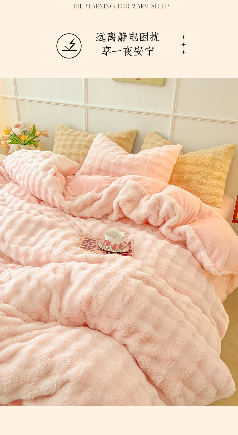 商品名称:韩都家居 2023新款泡泡兔绒牛奶绒四件套 泡泡兔绒-粉玉