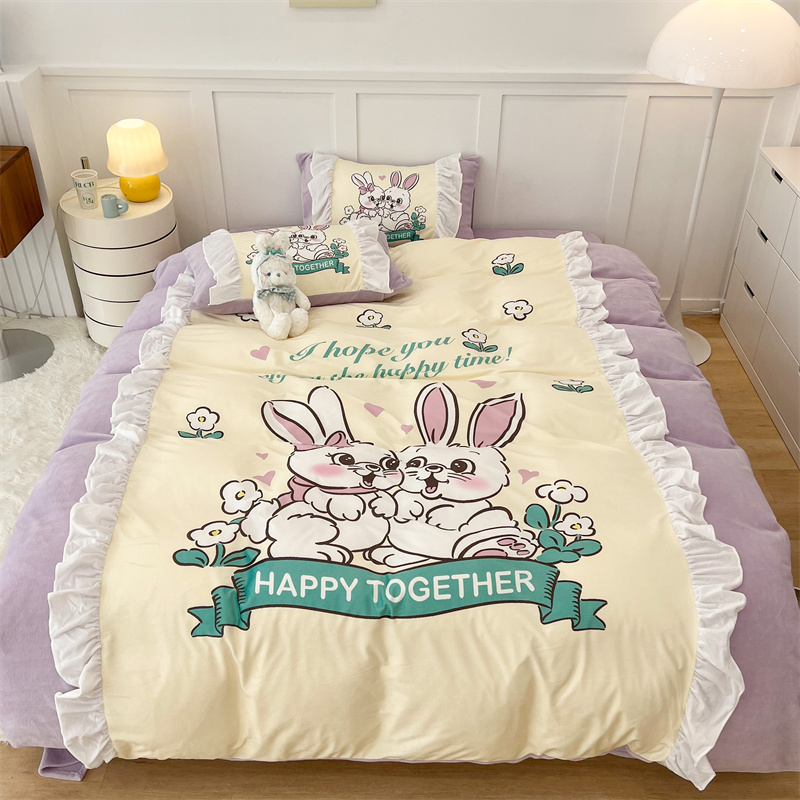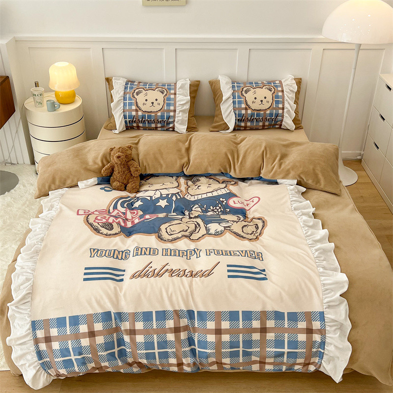 (总)昔可家纺 2024新款印花牛奶绒四件套系列-洛丽塔风,萝莉小兔,小熊烘焙屋,小熊玩偶屋