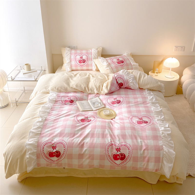 (总)昔可家纺 2024新款印花牛奶绒四件套系列-ins少女系列,芭蕾蛋糕,芭蕾美学,粉格蝴蝶结,黑粉芭蕾蝴蝶结,蓝格蝴蝶结,樱桃奶油蛋糕