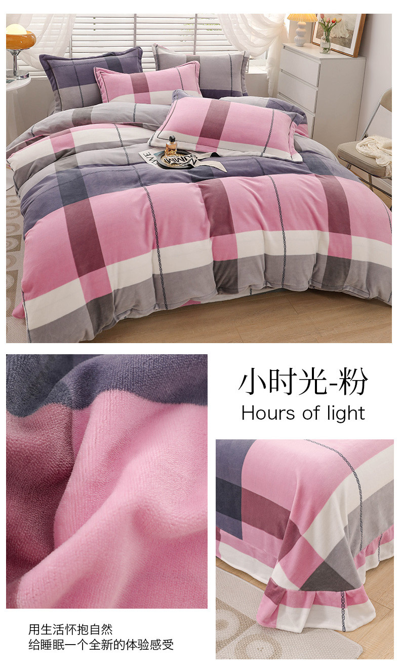 商品名称:畅畅 2023新款加厚260克全消光牛奶棉印花臻棉绒四件套 小时光-粉