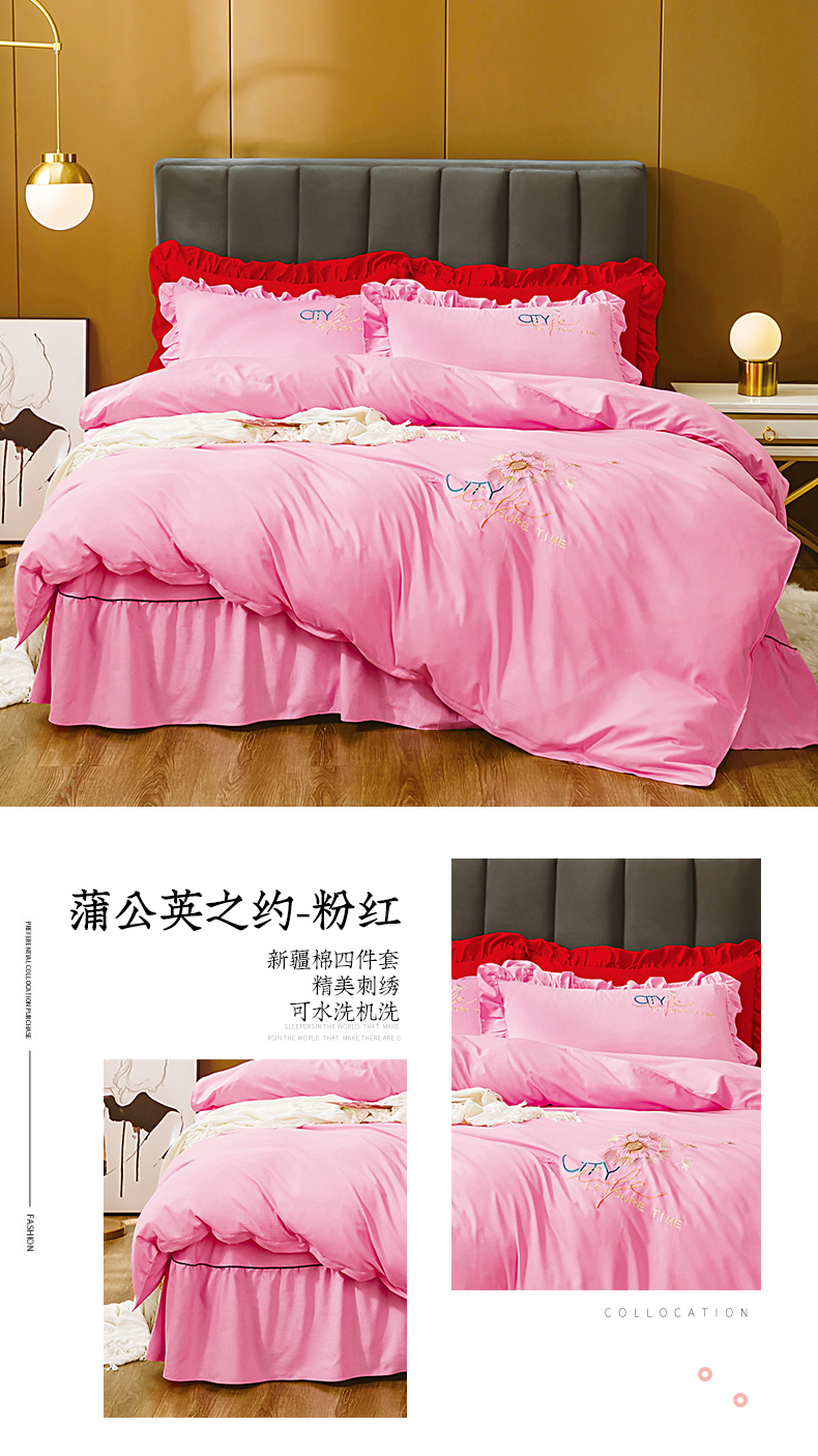 商品名称:伊而梦蚊帐 2023新款仿真丝刺绣四件套--蒲公英之约 蒲公英之约-粉红
