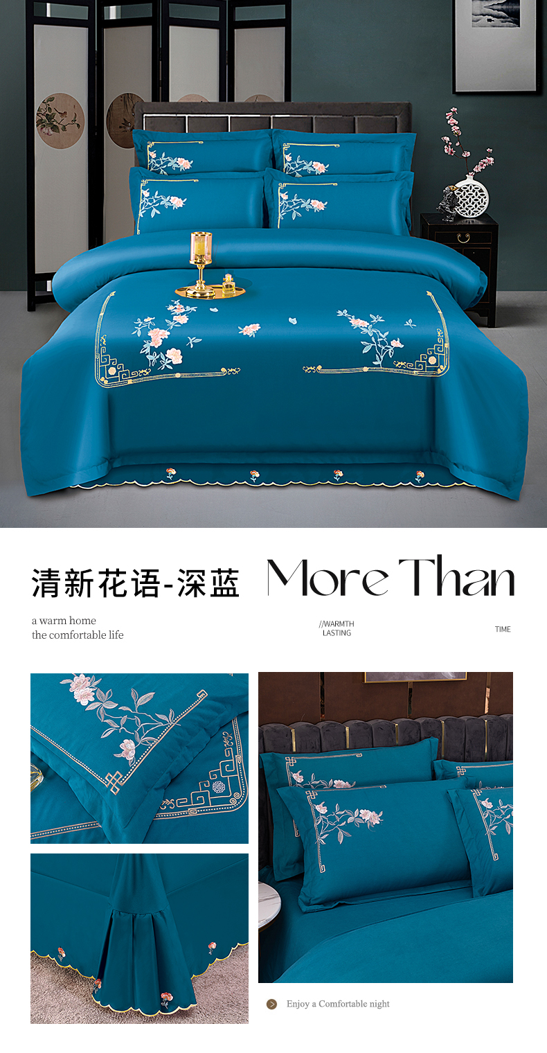 商品名称:(总)伊而梦 2023新款精纺磨毛重工刺绣四件套--清心花语