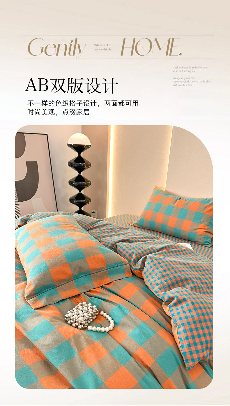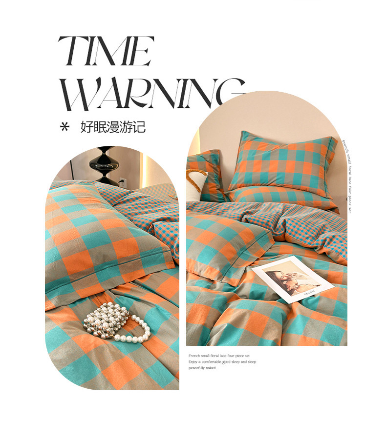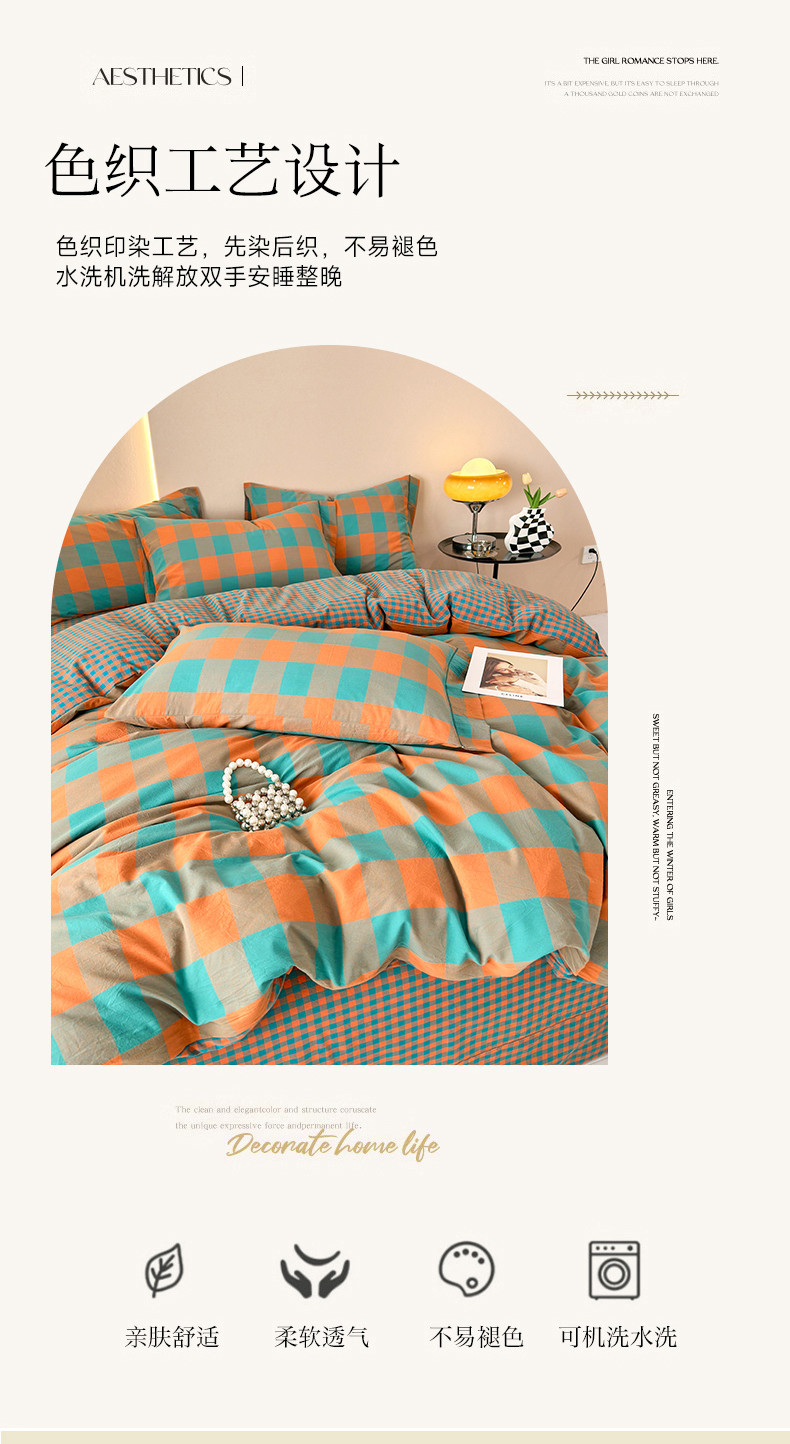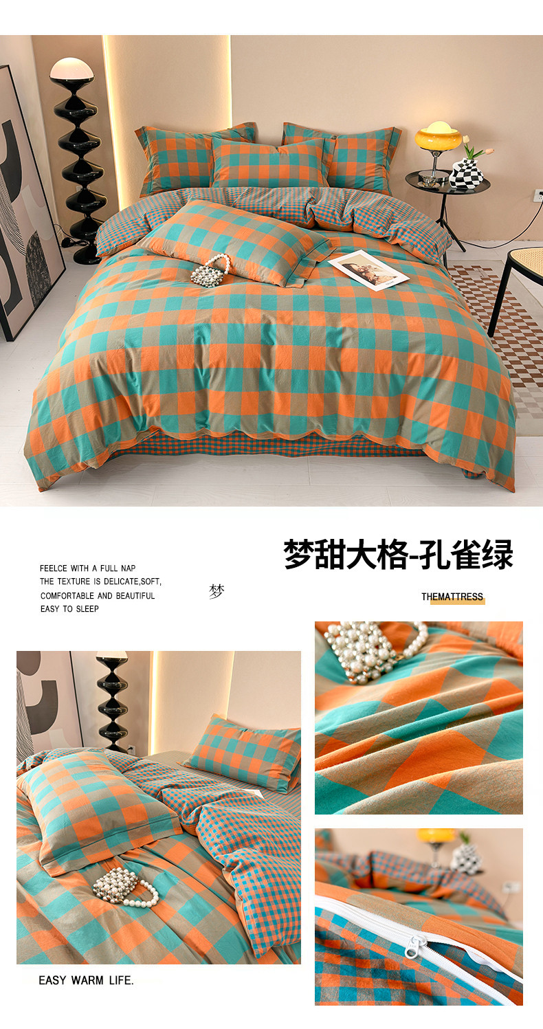 当前位置: 91家纺网 > 商品网购 > 床品套件 > 四件套 > 全棉普通四件套 > 三沁 2023新款AB版全棉色织水洗棉简约格子四件套梦甜大格-孔雀绿