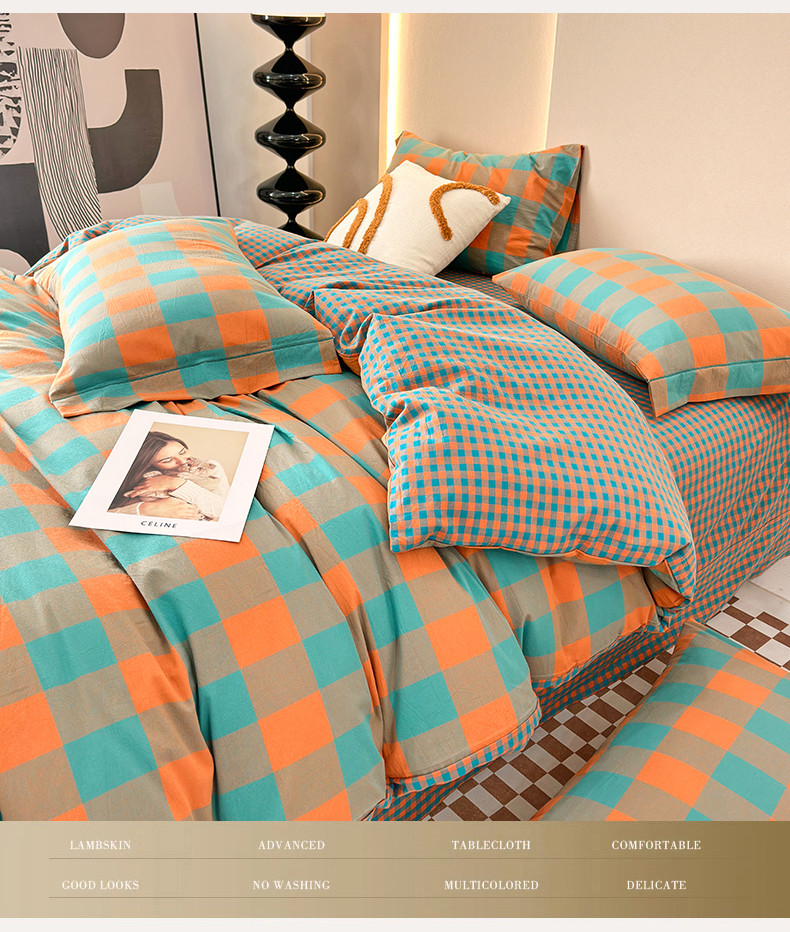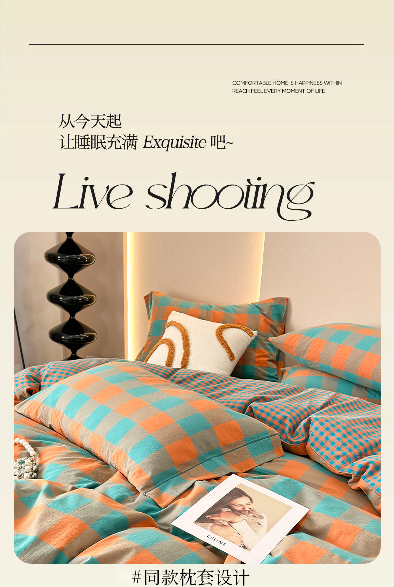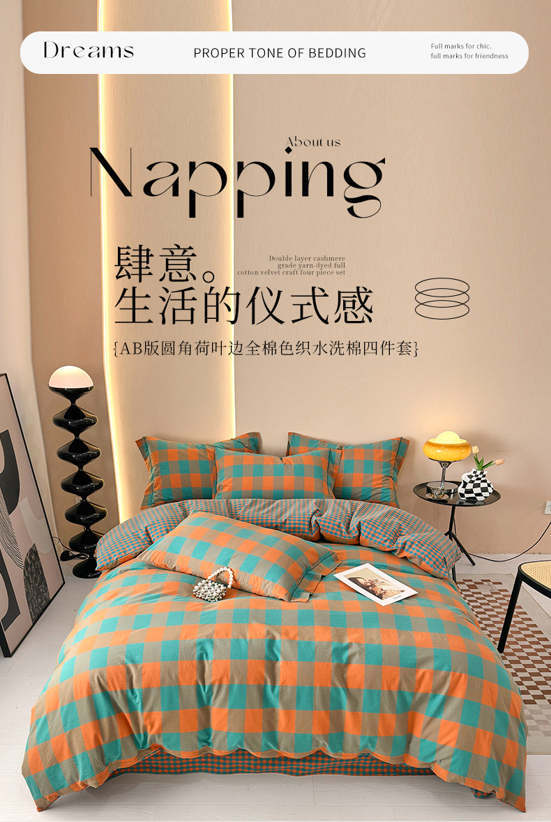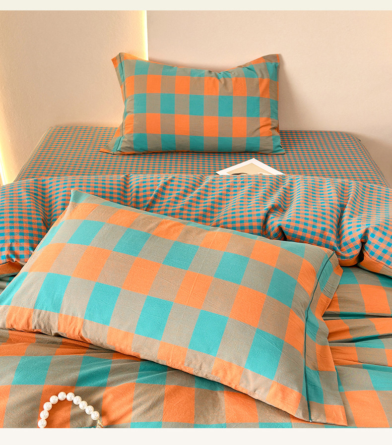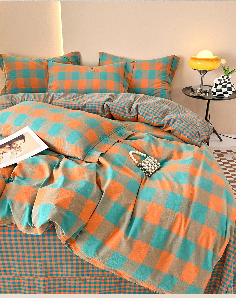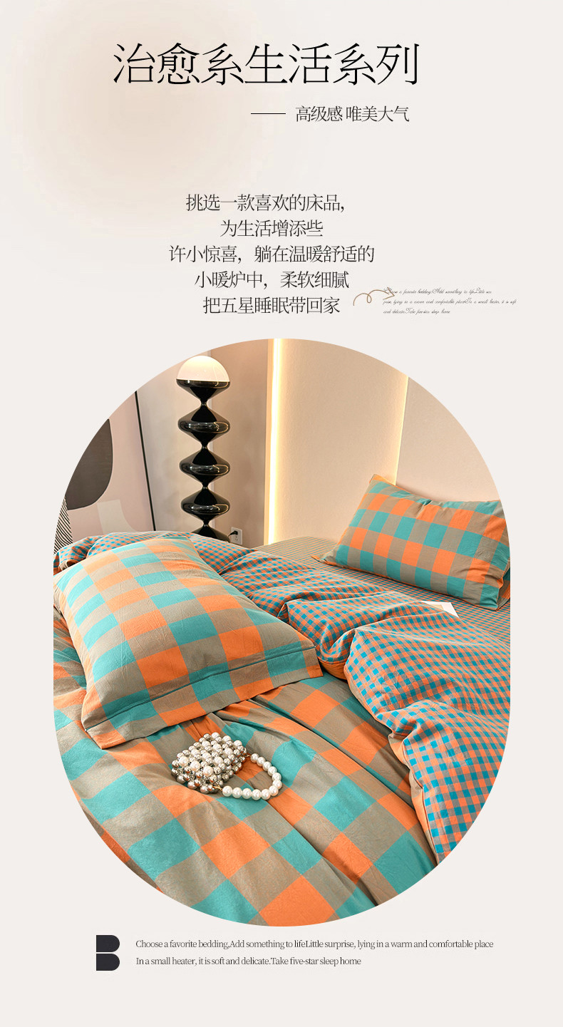 当前位置: 91家纺网 > 商品网购 > 床品套件 > 四件套 > 全棉普通四件套 > 三沁 2023新款AB版全棉色织水洗棉简约格子四件套梦甜大格-孔雀绿