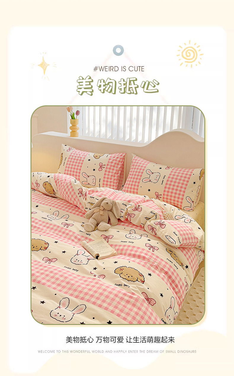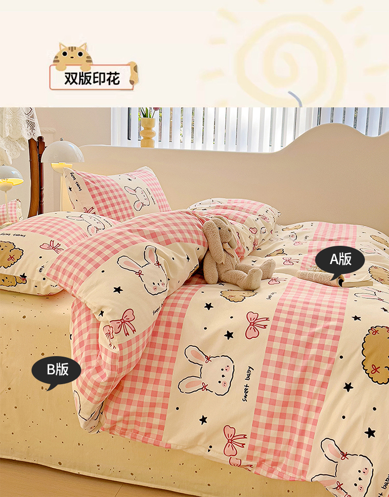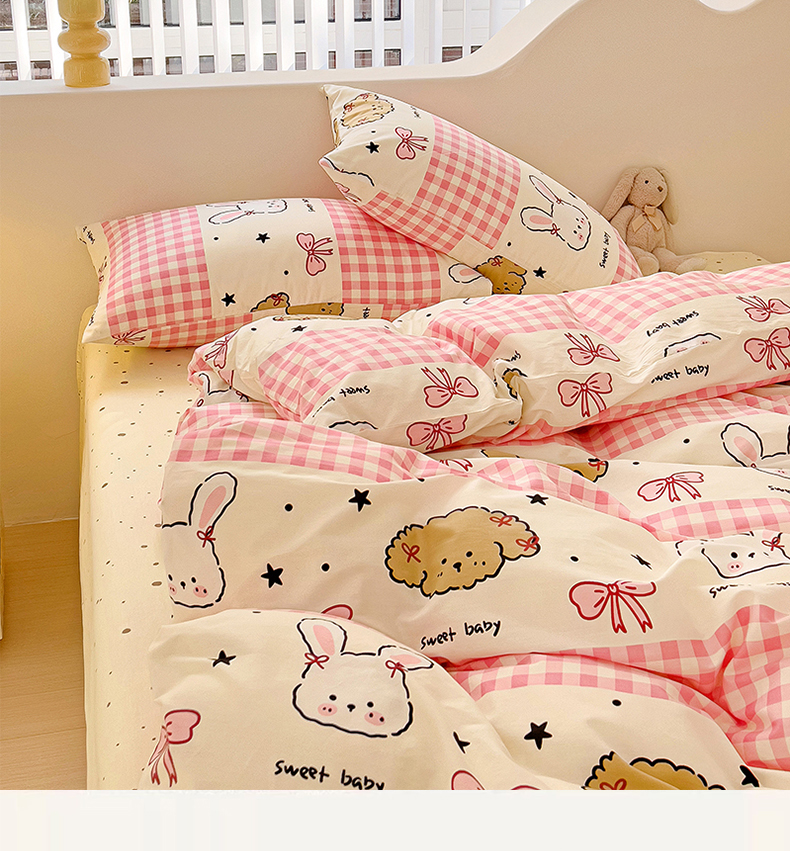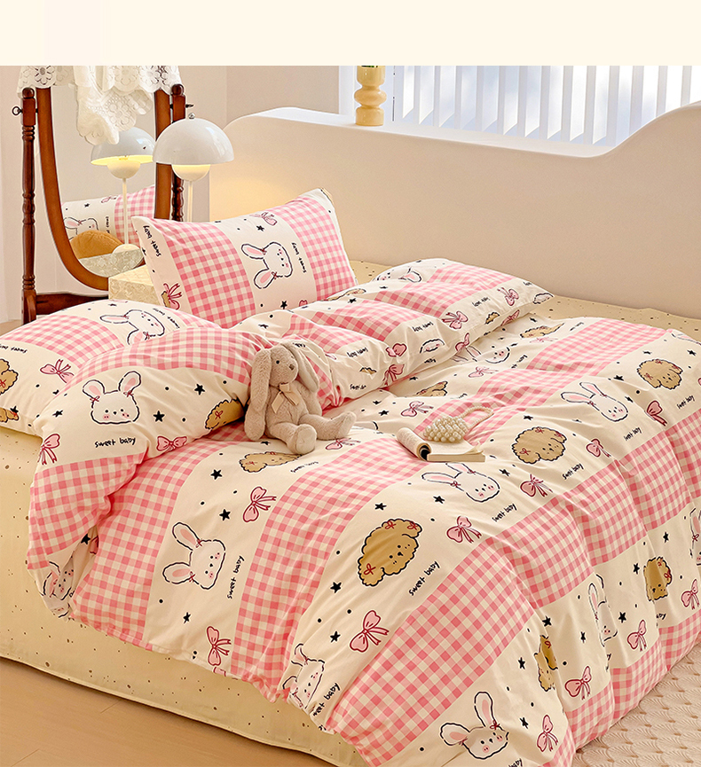 珺柔家纺 2024新款40支13070全棉印花四件套 格子兔