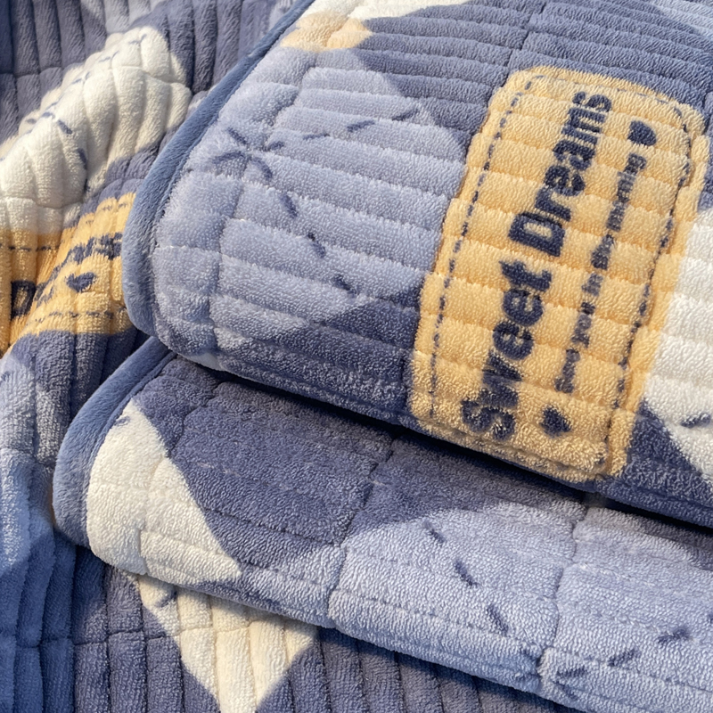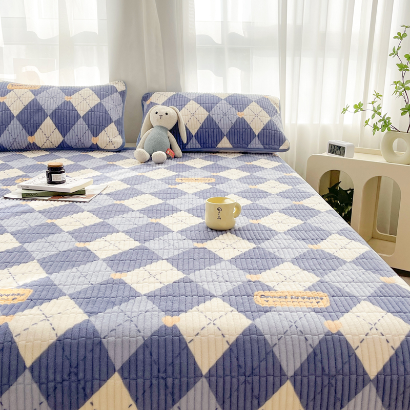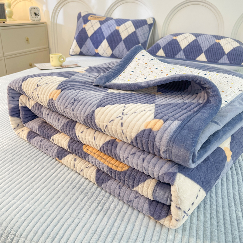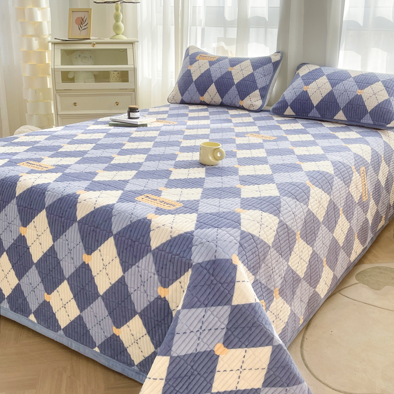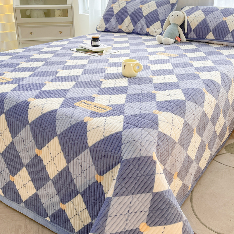 梵朴 2024新款牛奶绒直角款夹棉床盖 英伦风尚