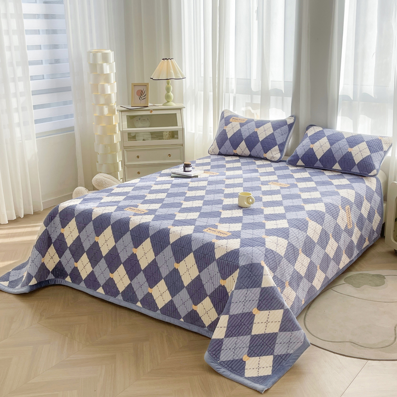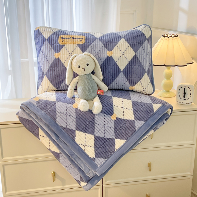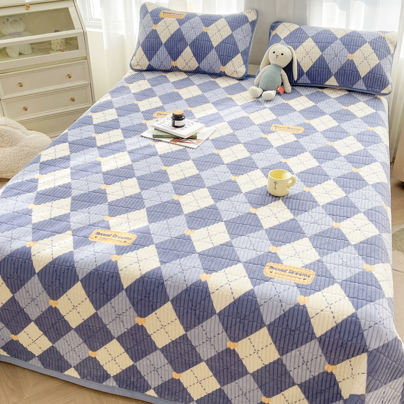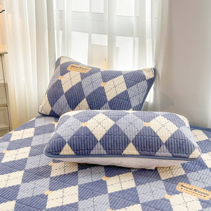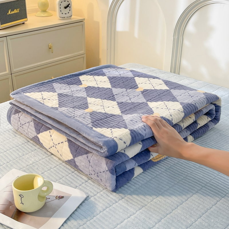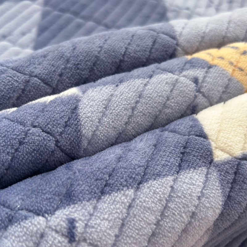 梵朴 2024新款牛奶绒直角款夹棉床盖 英伦风尚