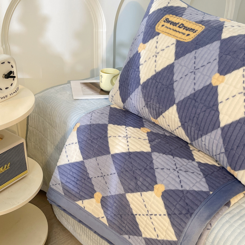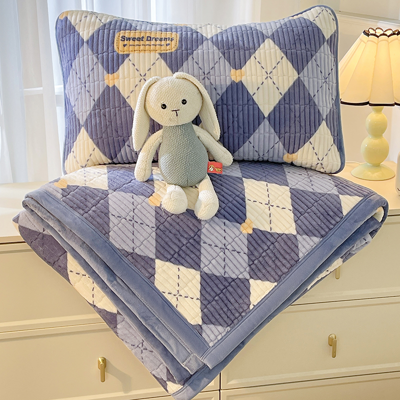 商品名称:梵朴 2024新款牛奶绒直角款夹棉床盖 英伦风尚