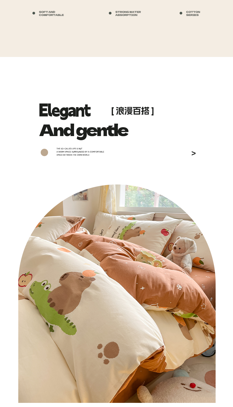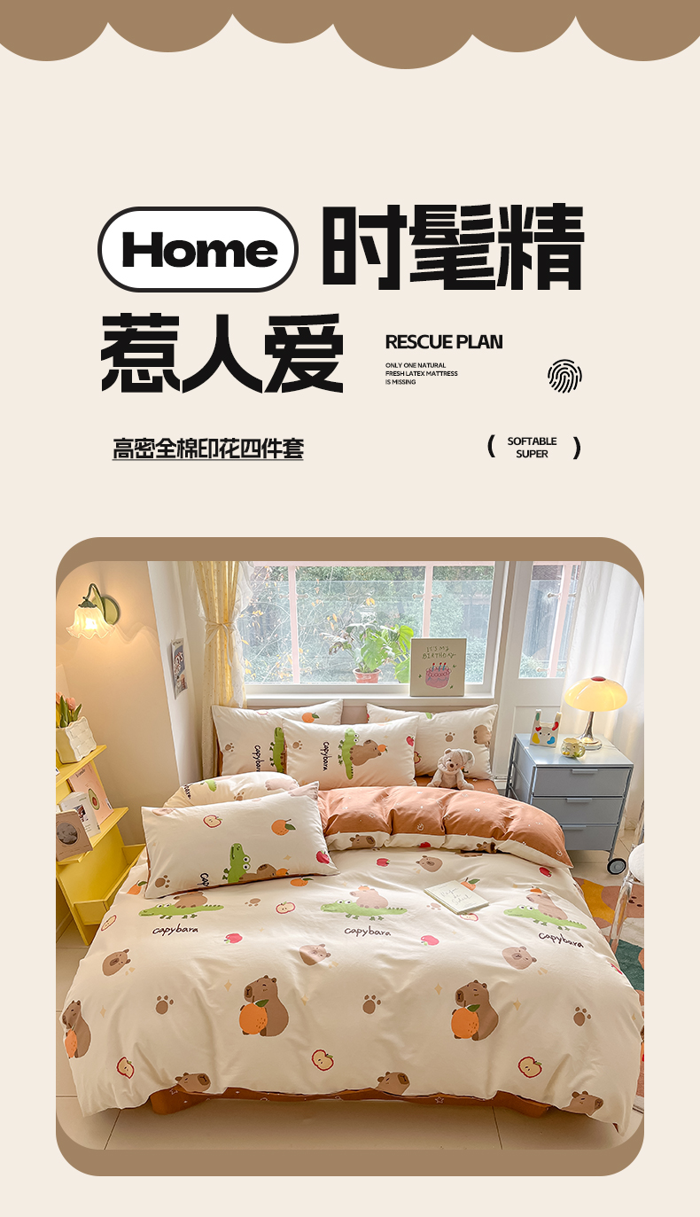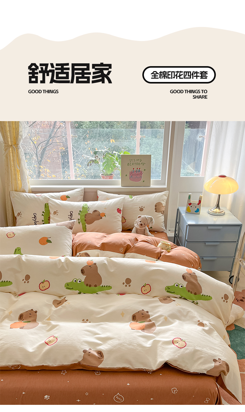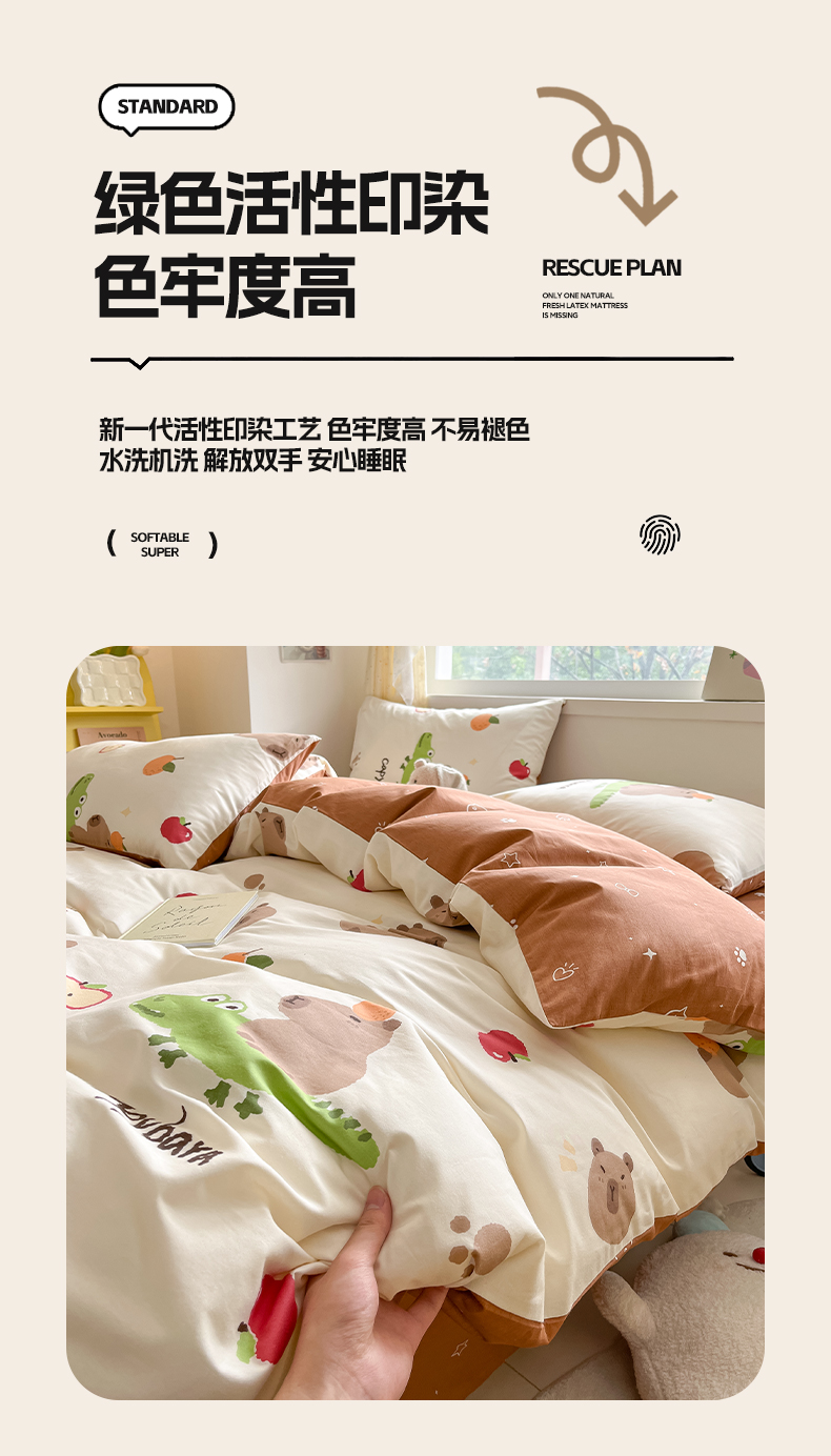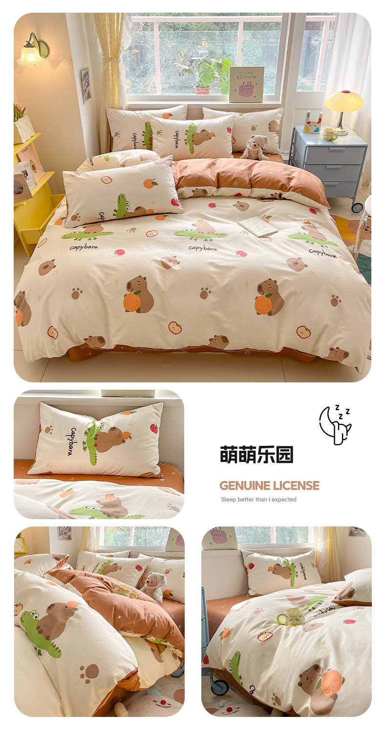 雅居纺 2024新款高密全棉13070印花四件套 萌萌乐园