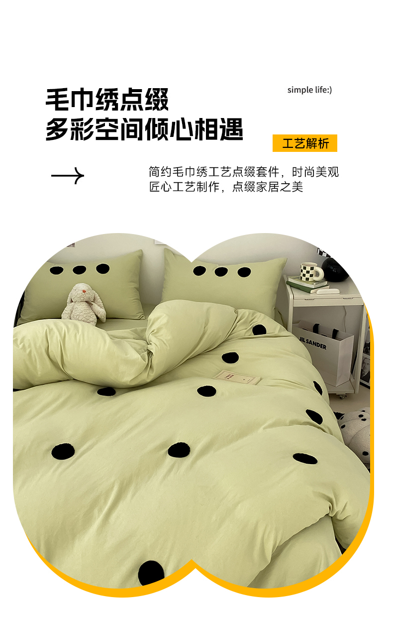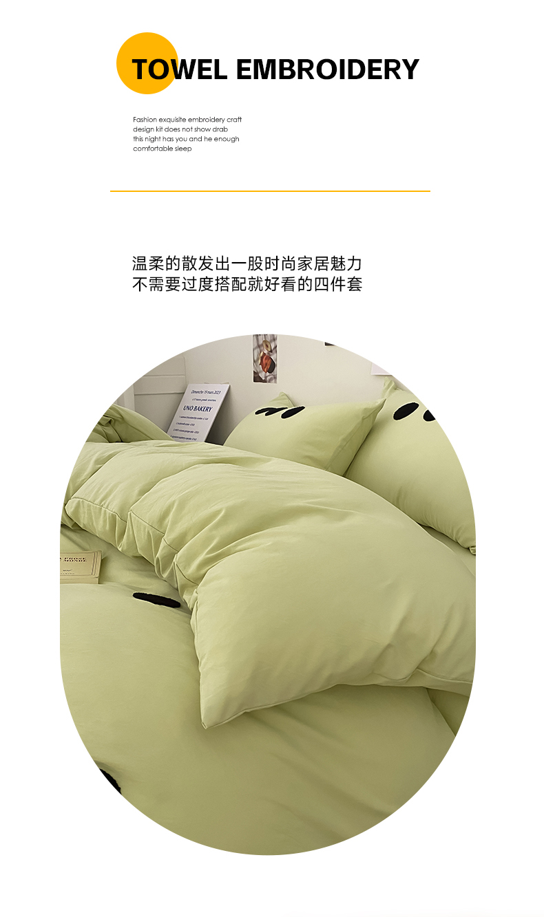 商品名称:N先生 2025新款超柔水洗棉毛巾绣四件套极简风系列 圆圈-绿