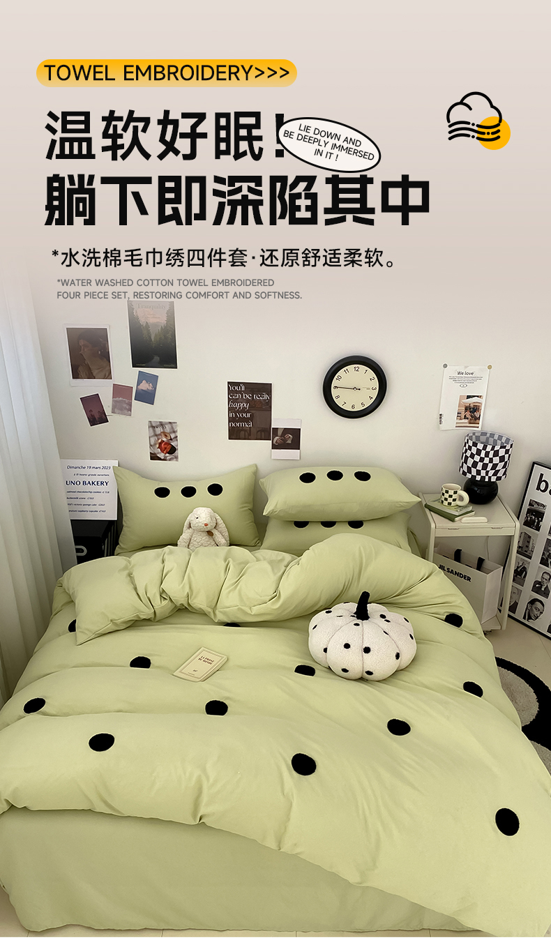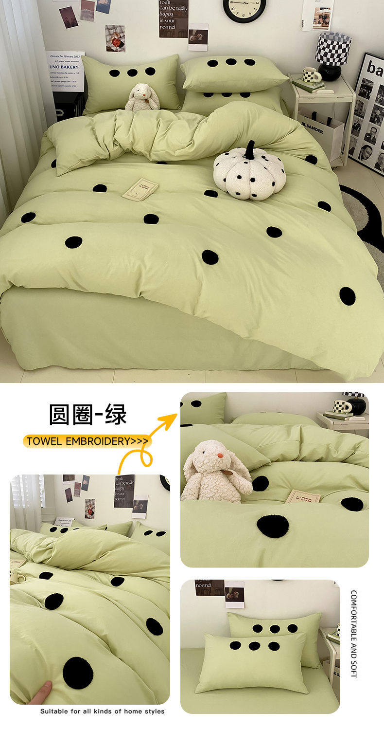 N先生 2025新款超柔水洗棉毛巾绣四件套极简风系列 圆圈-绿