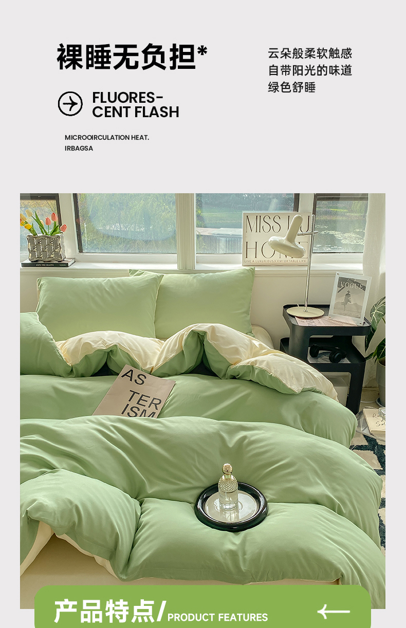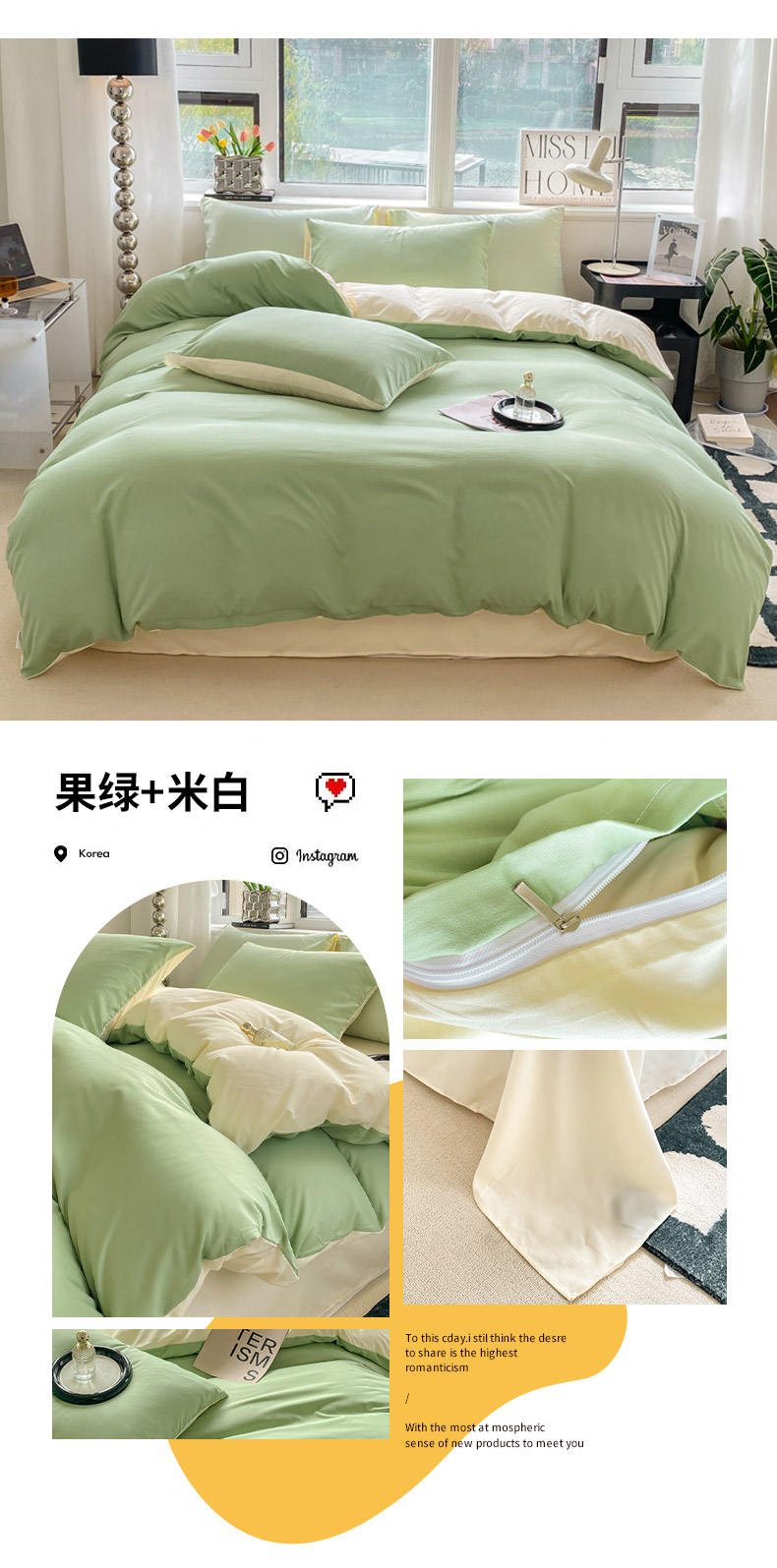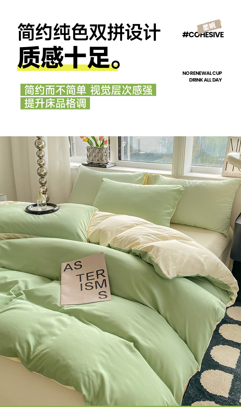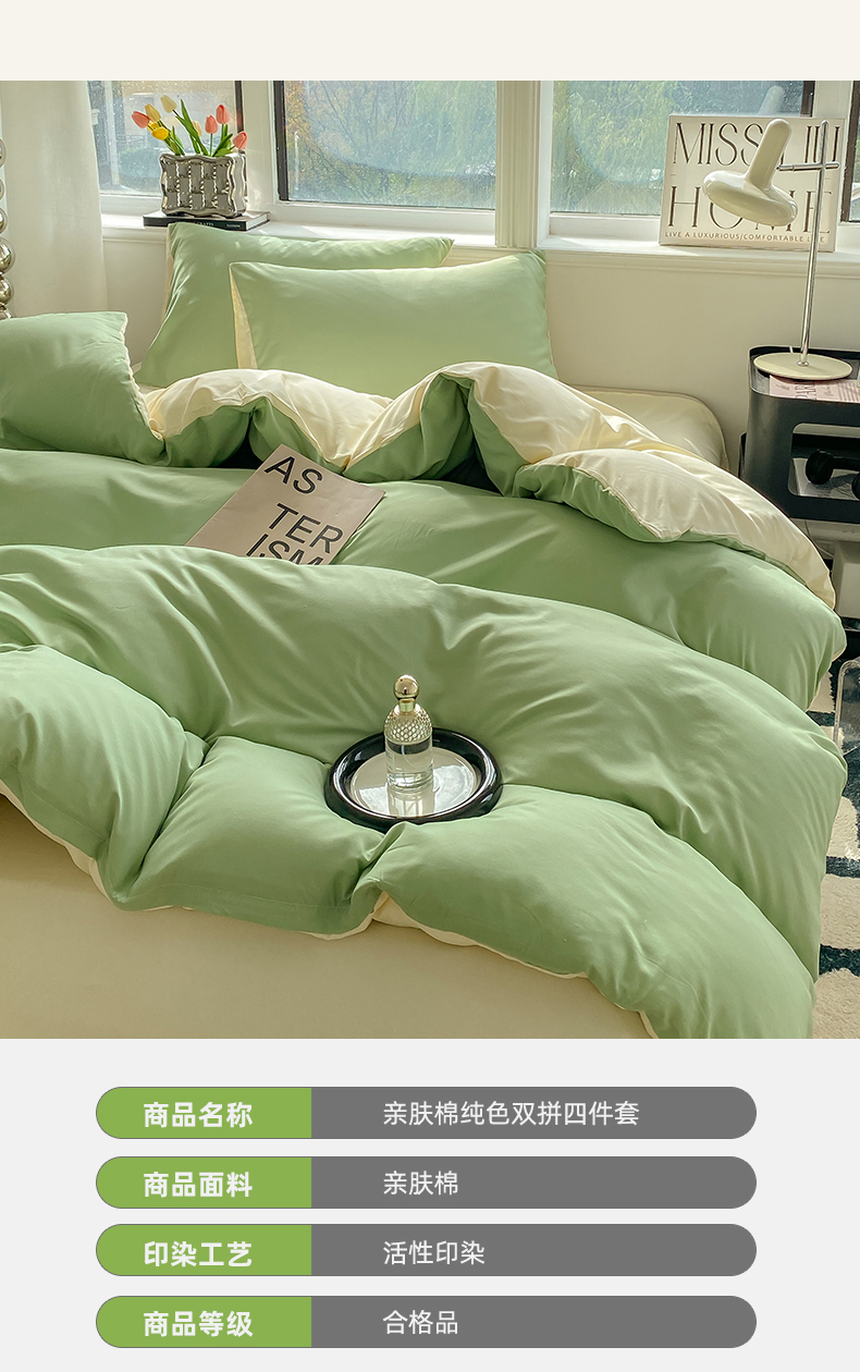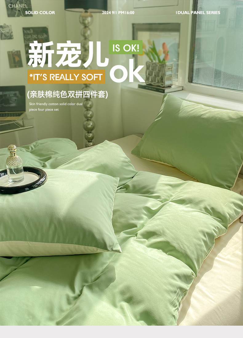 当前位置: 91家纺网 > 商品网购 > 床品套件 > 四件套 > 化纤普通四件套 > 芷凡家纺 2024新款亲肤棉纯色双拼四件套 果绿+米白