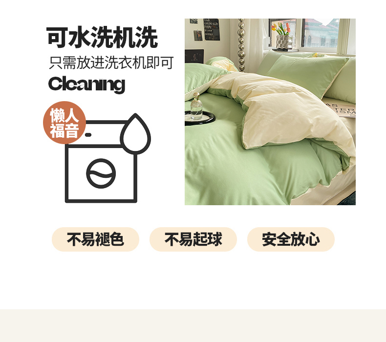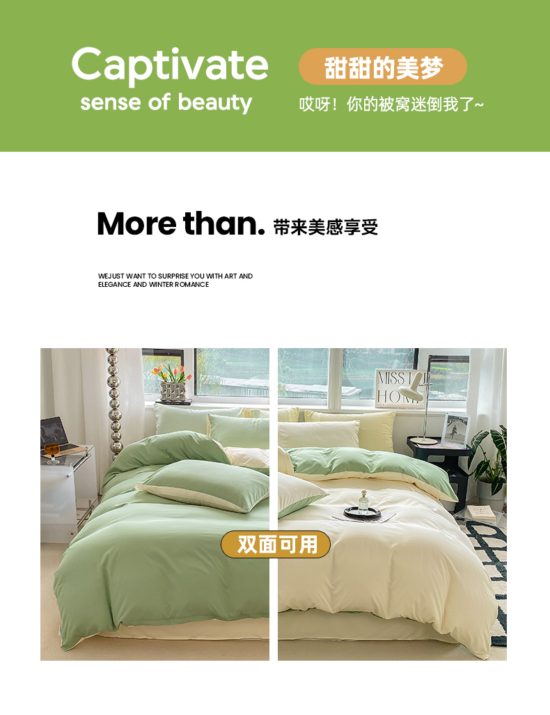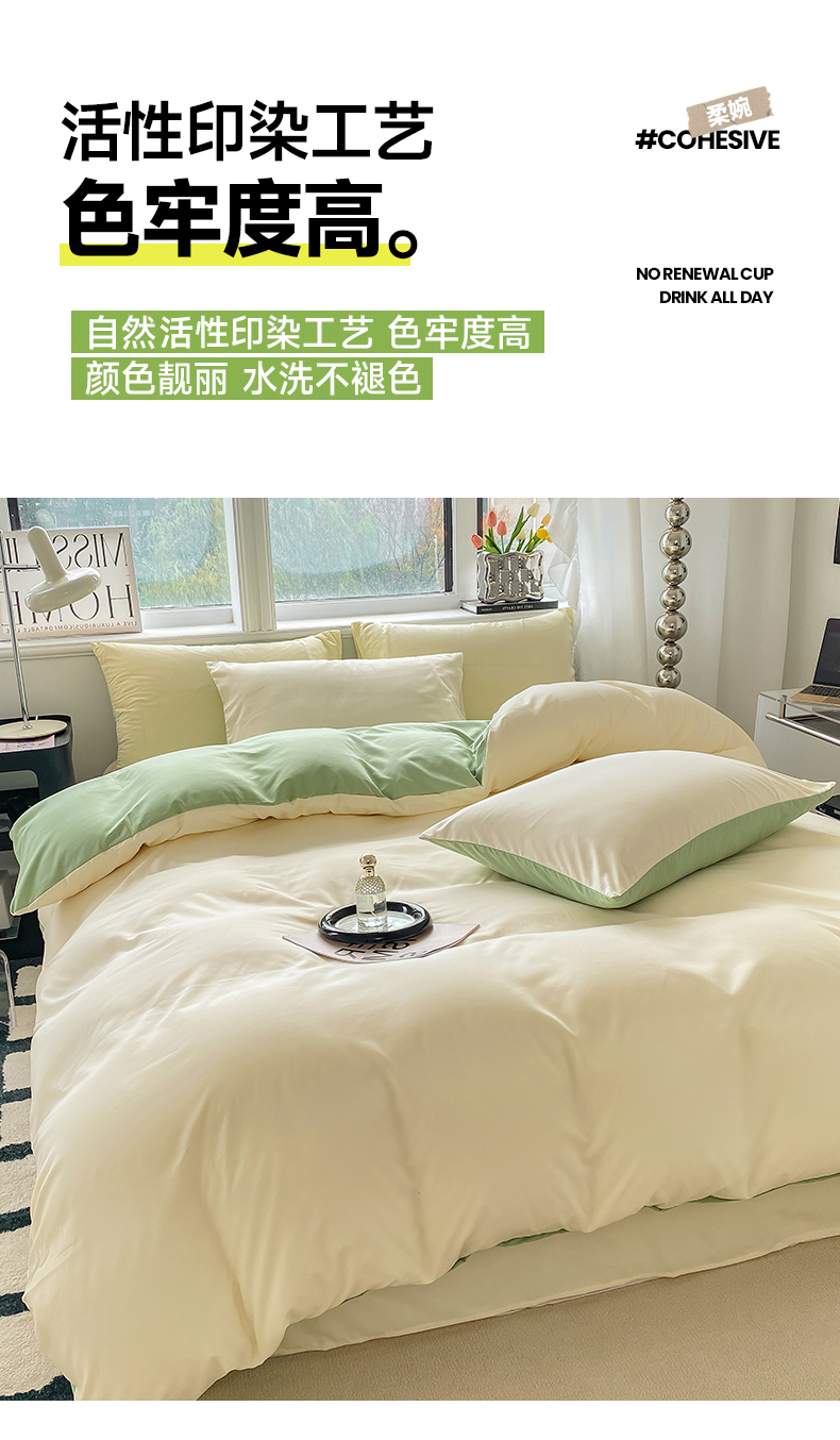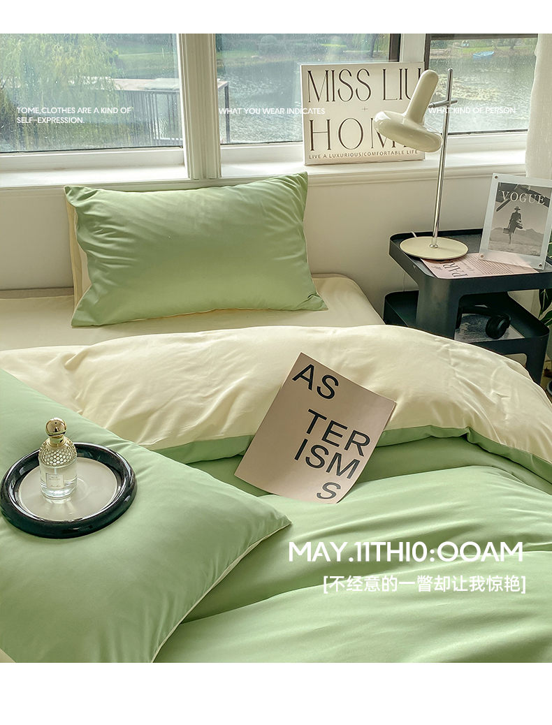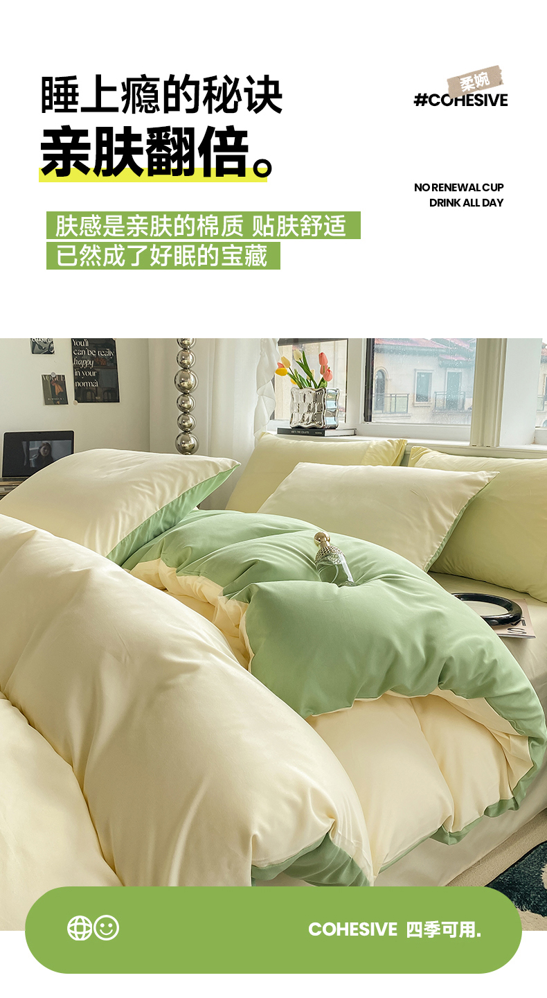 当前位置: 91家纺网 > 商品网购 > 床品套件 > 四件套 > 化纤普通四件套 > 芷凡家纺 2024新款亲肤棉纯色双拼四件套 果绿+米白