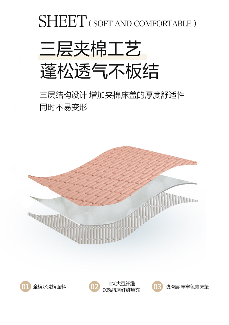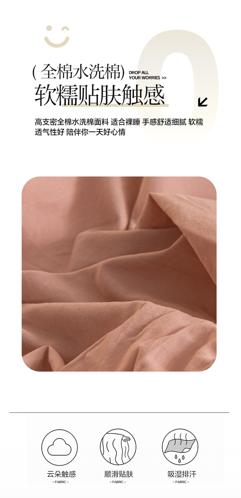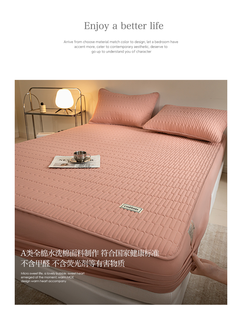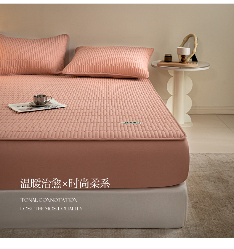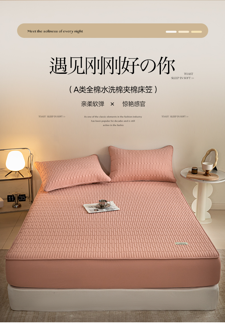 • 91家纺网 家纺一手货源 找家纺 芬晴家纺 2024新款纯棉水洗棉纯色夹棉床笠 漫游-豆沙