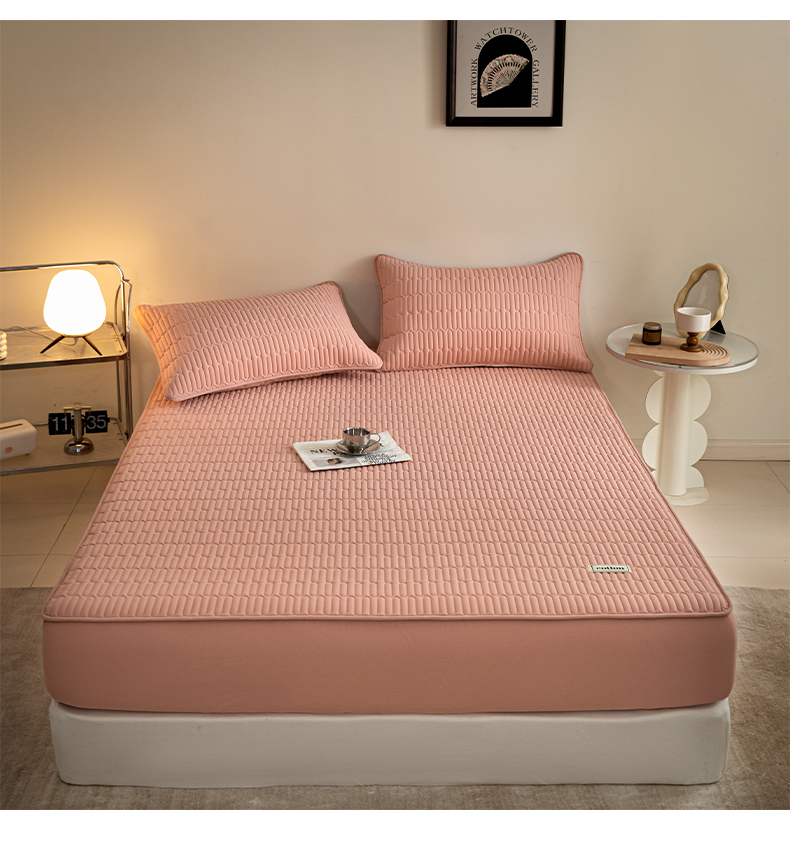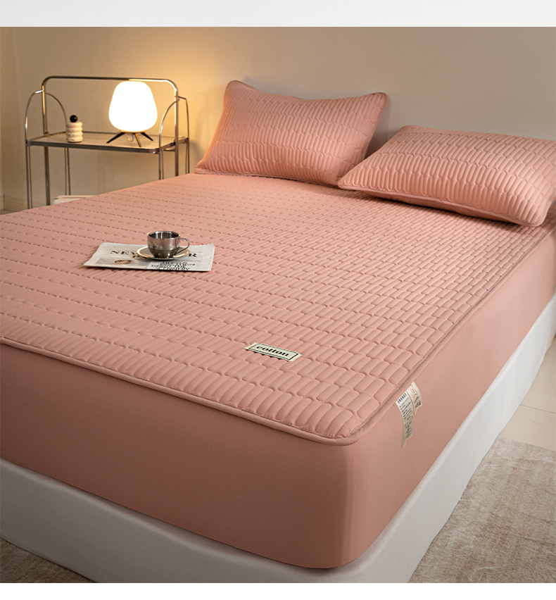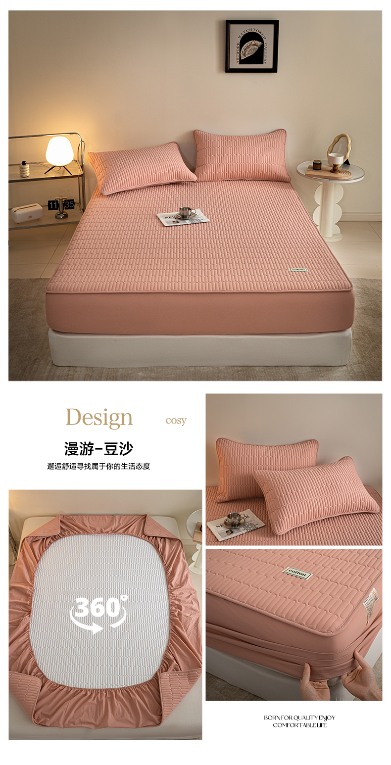 芬晴家纺 2024新款纯棉水洗棉纯色夹棉床笠 漫游-豆沙