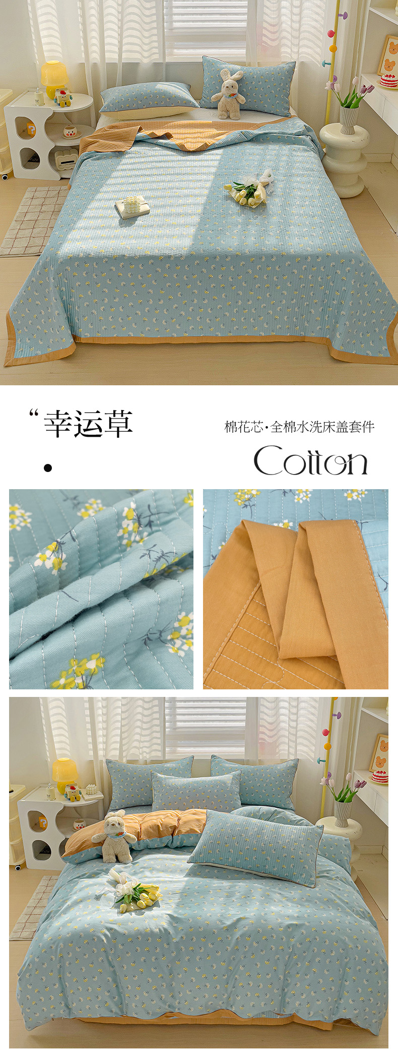 羽爱家纺 2024新款全棉水洗棉花芯床盖套件 幸运草
