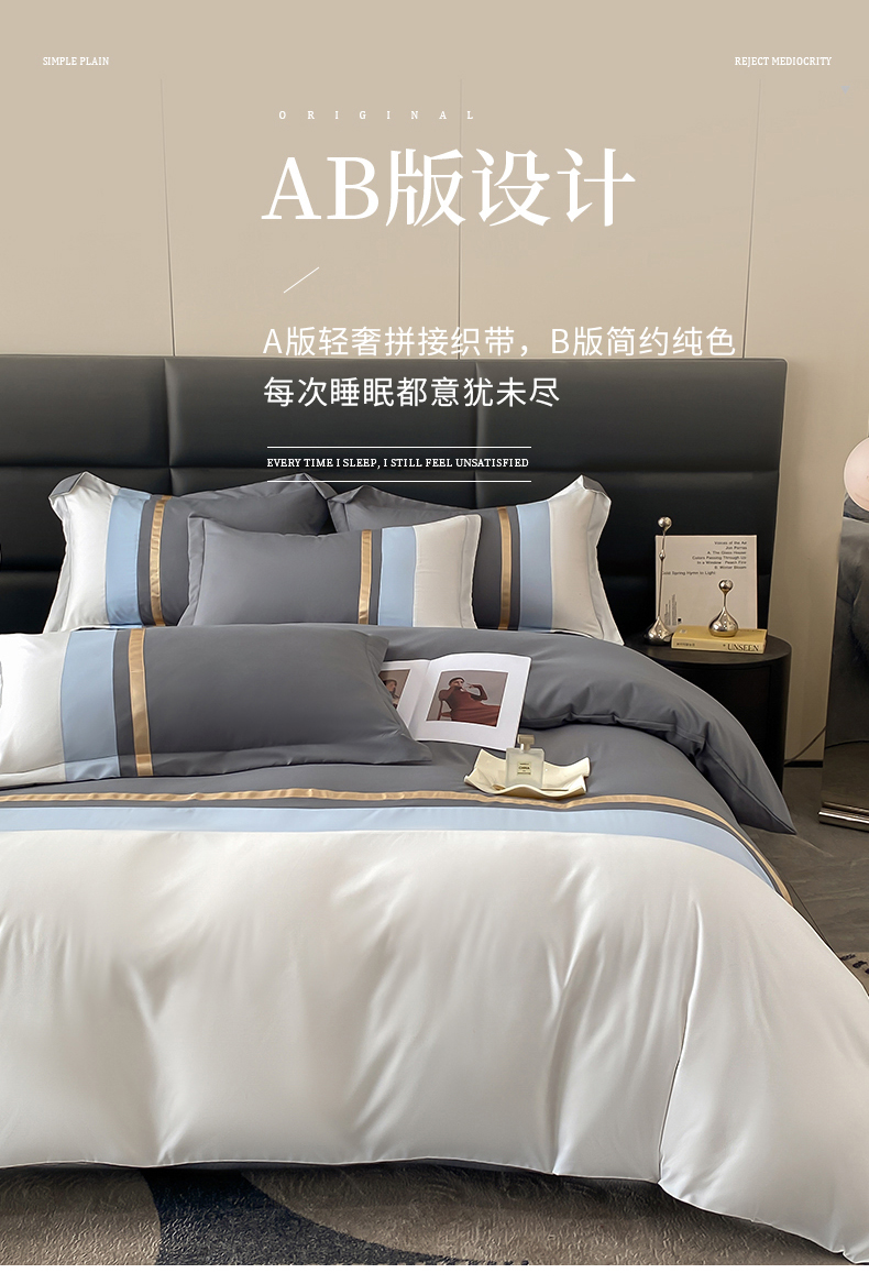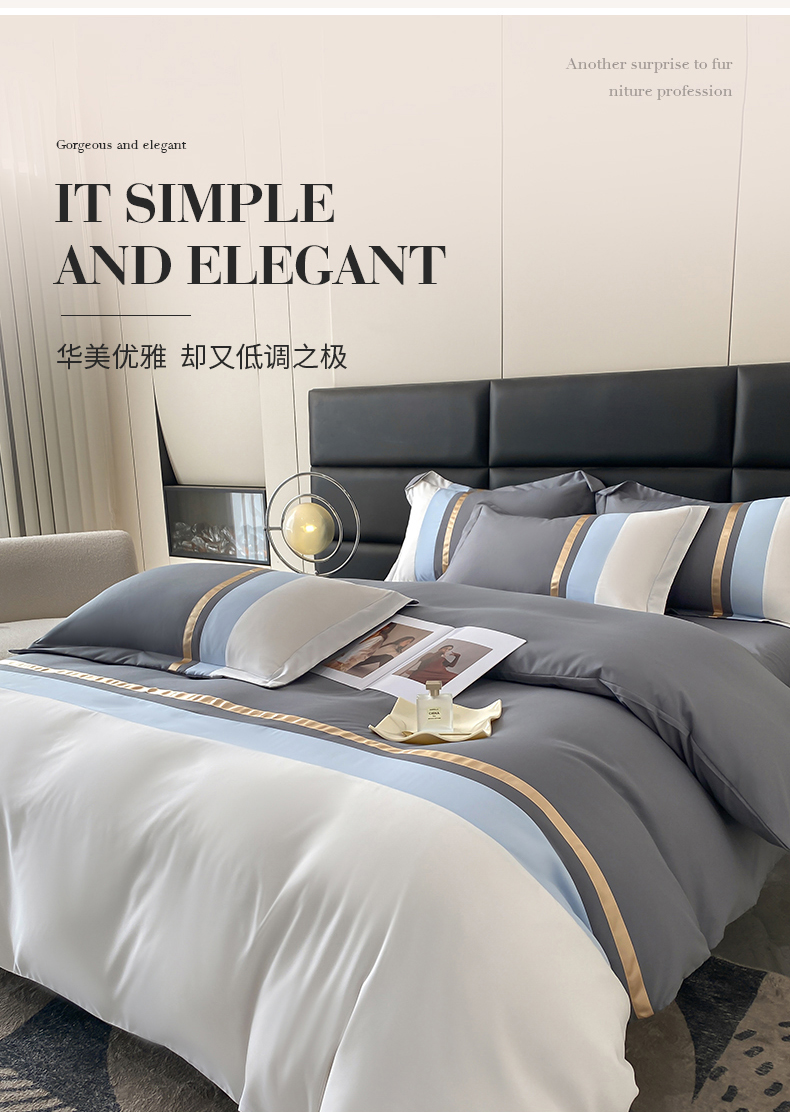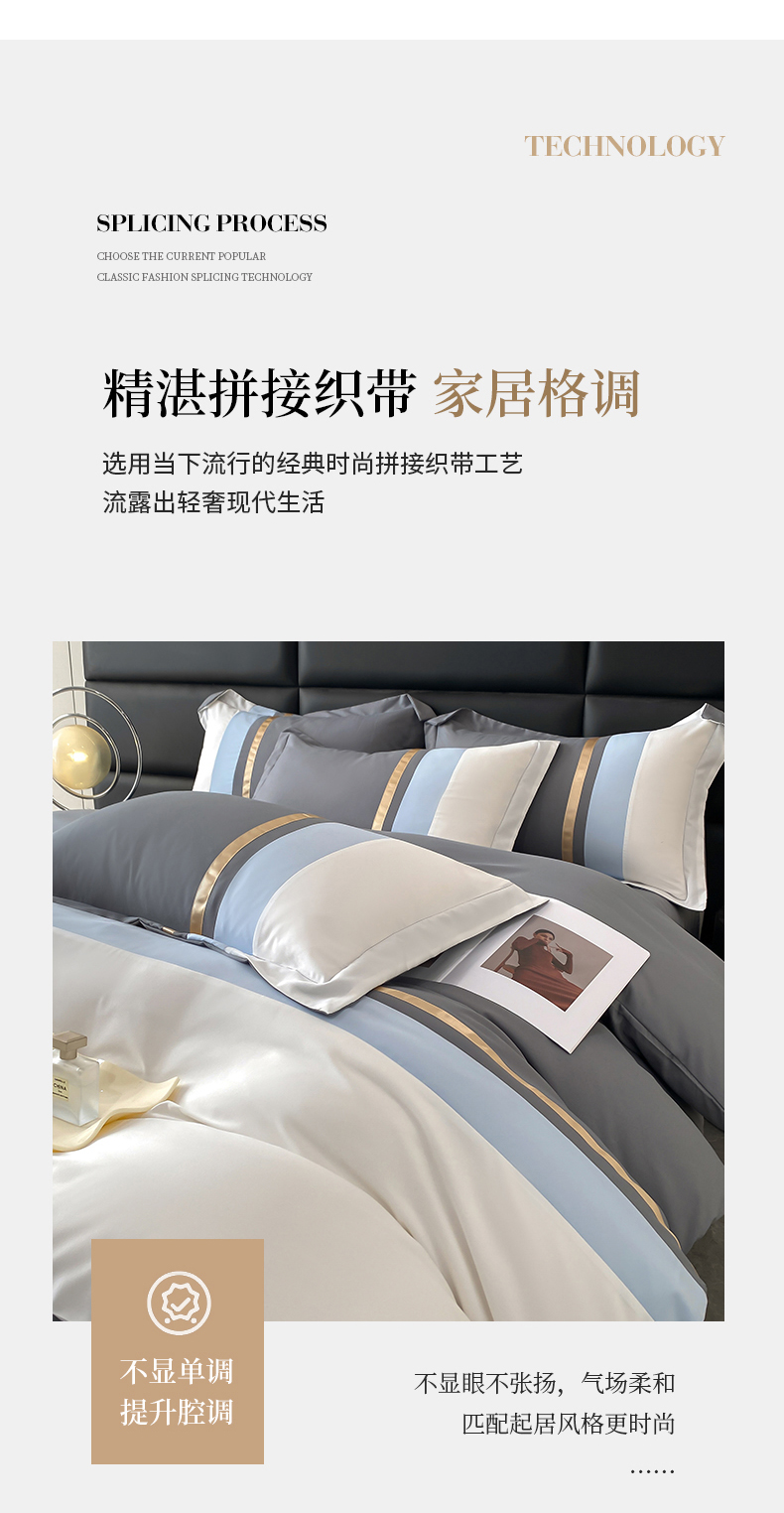 商品名称:苏源家居 2024新款亲肤棉纯色双拼轻奢北欧四件套-典雅系列 典雅-高级灰