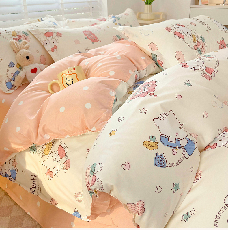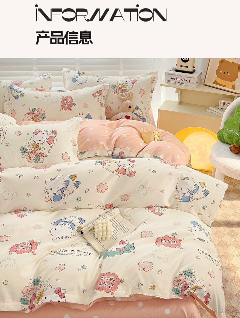 (总)楠沐家纺 2025年新款无印风学生印花四件套芦荟棉水洗棉,彩色波点,觅遇,晴空蓝格,亚麻灰格,烟雾灰格,英伦蓝格