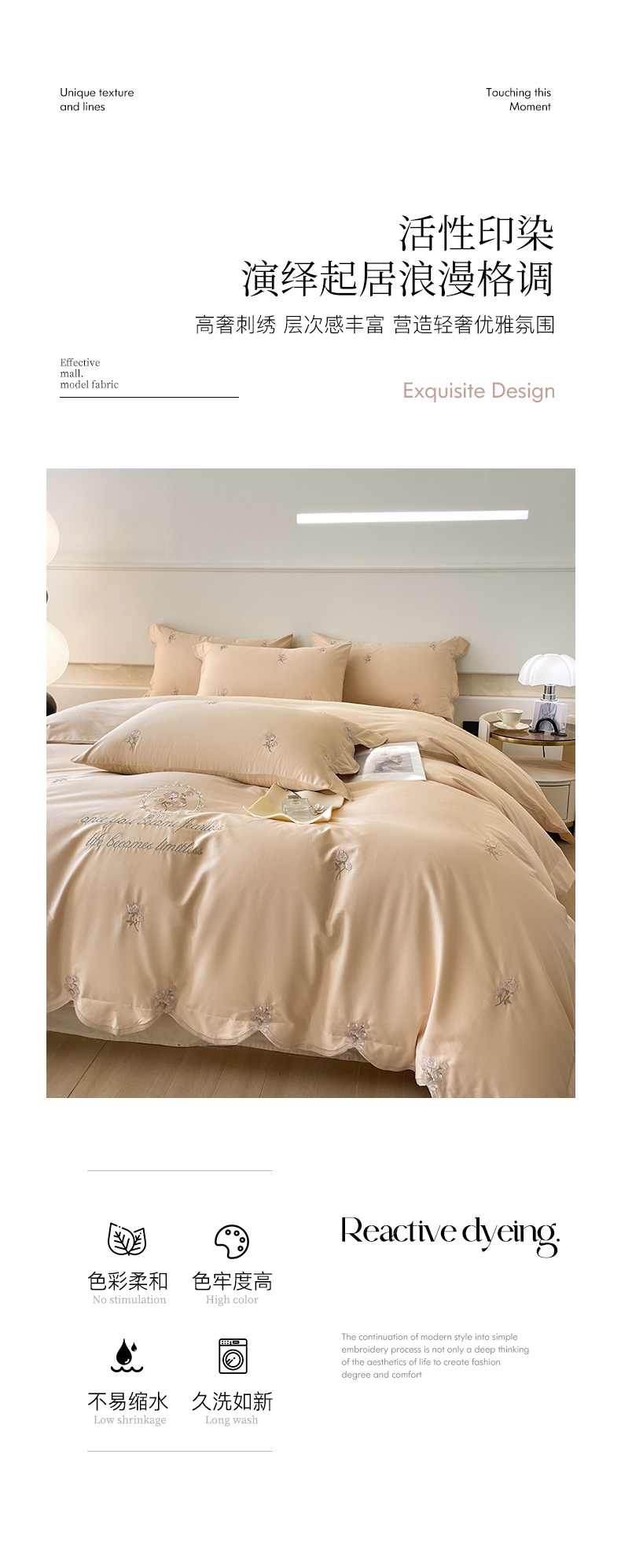 商品名称:理想家家纺 2024新款全棉刺绣13372四件套-罗拉 罗拉金