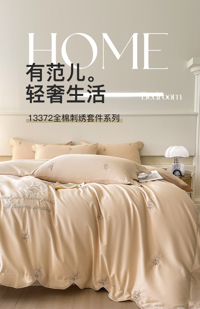 理想家家纺 2024新款全棉刺绣13372四件套-罗拉 罗拉金
