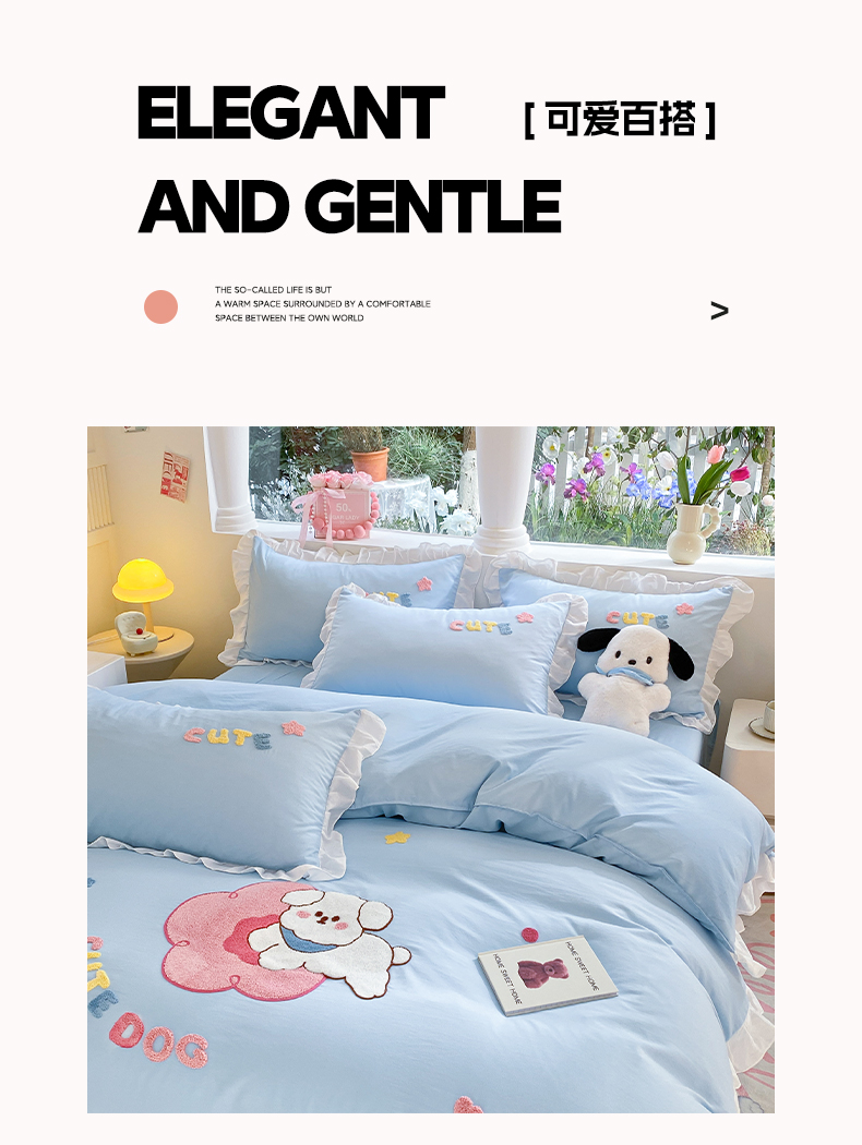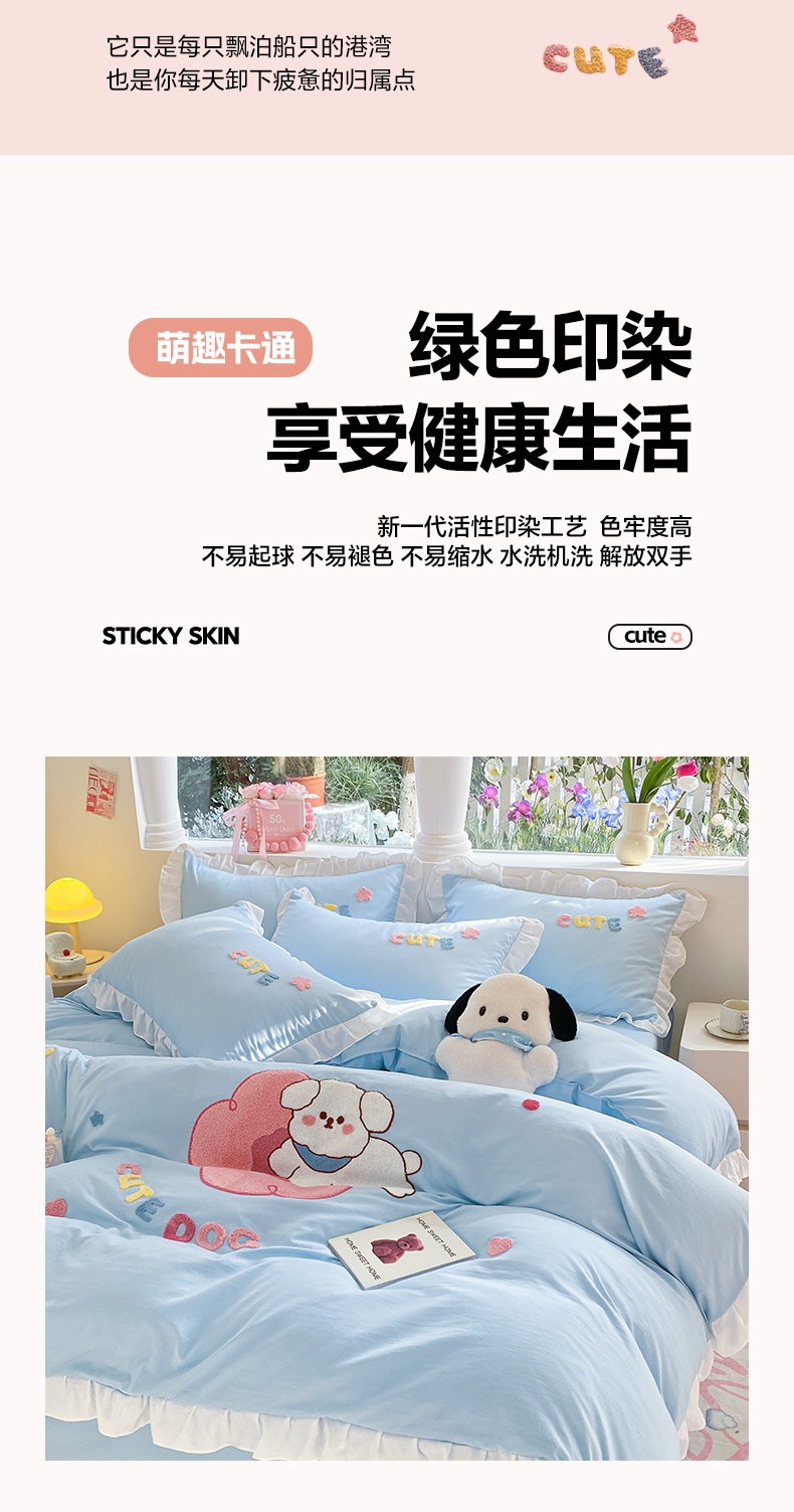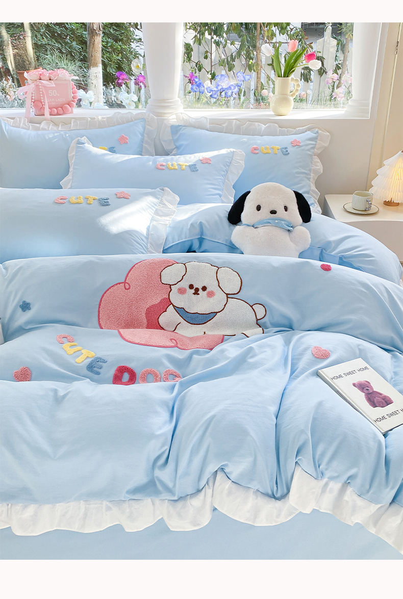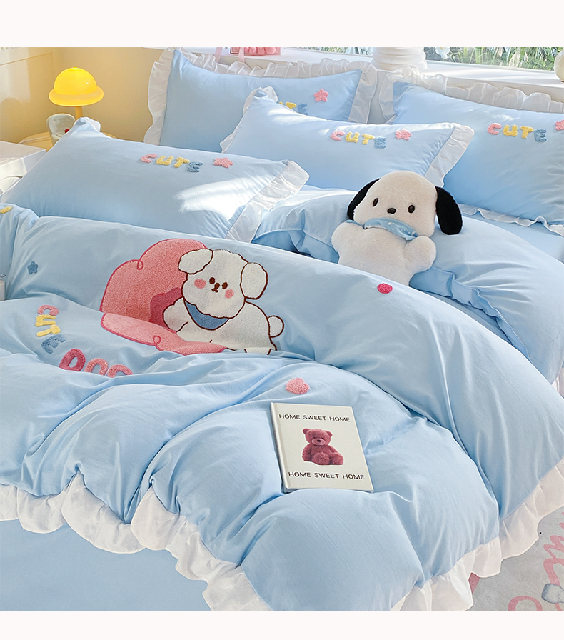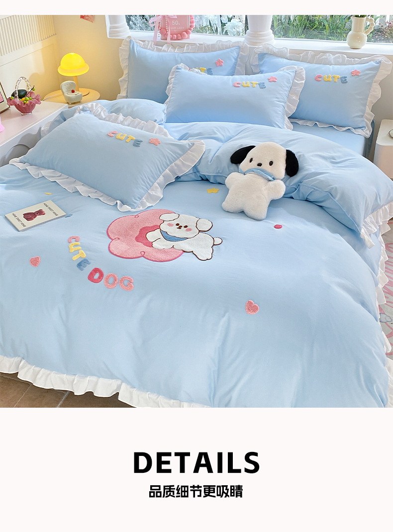 当前位置: 91家纺网 > 商品网购 > 床品套件 > 四件套 > 毛巾绣四件套 > 易禾家纺 2024新款专板花型亲肤水洗棉毛巾绣四件套-跳跳狗 跳跳狗-蓝