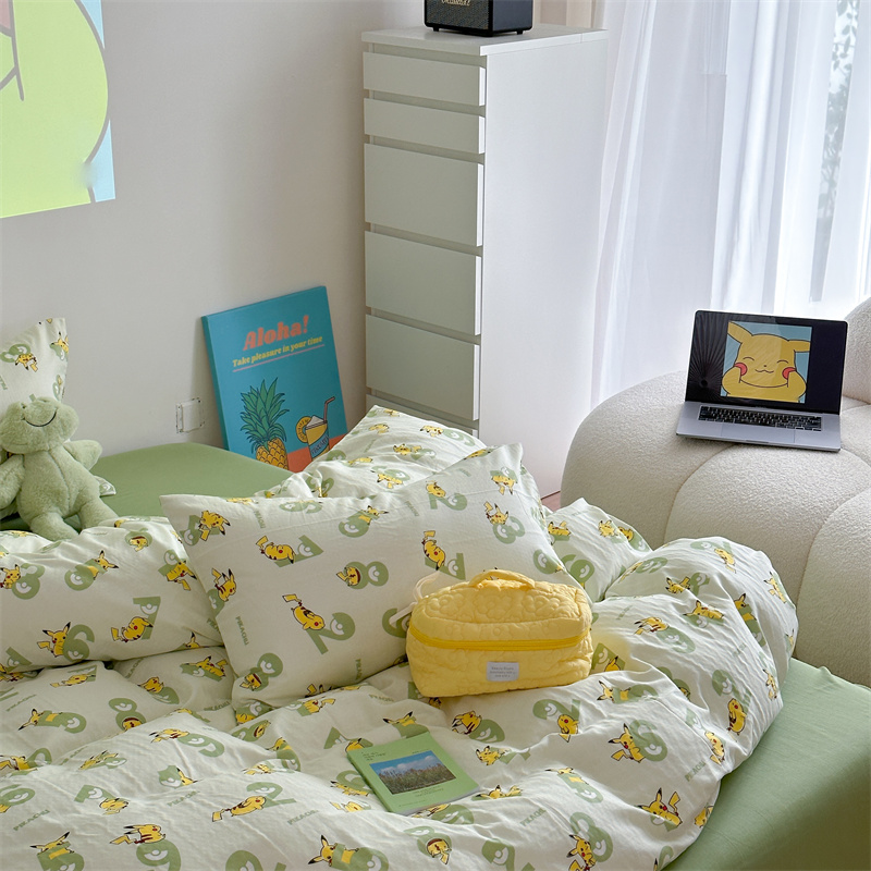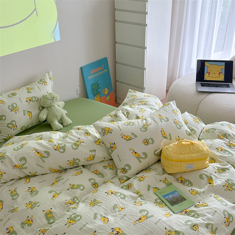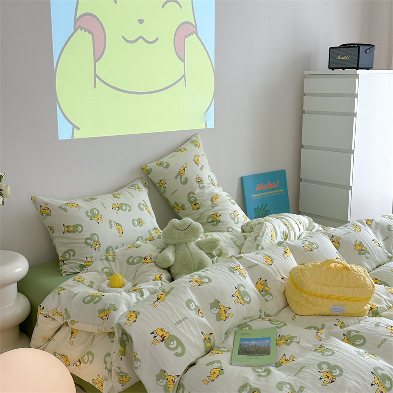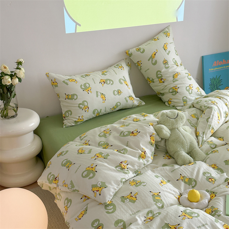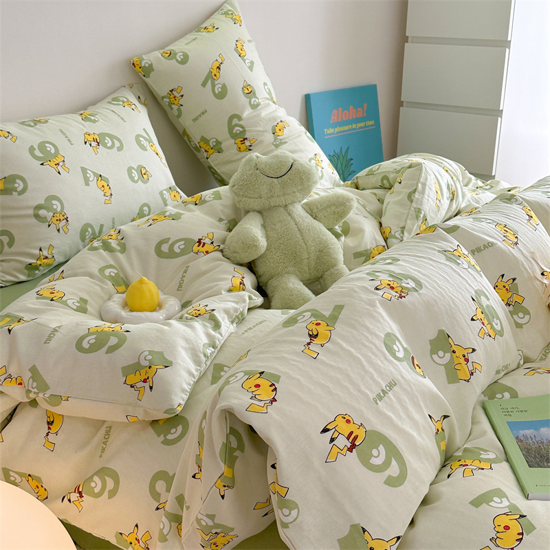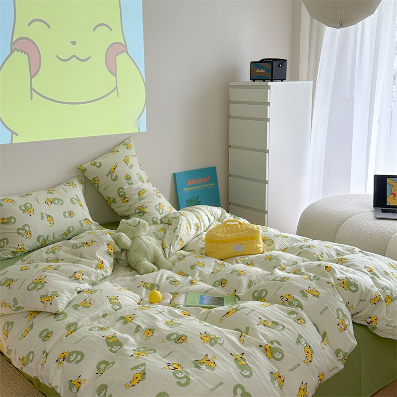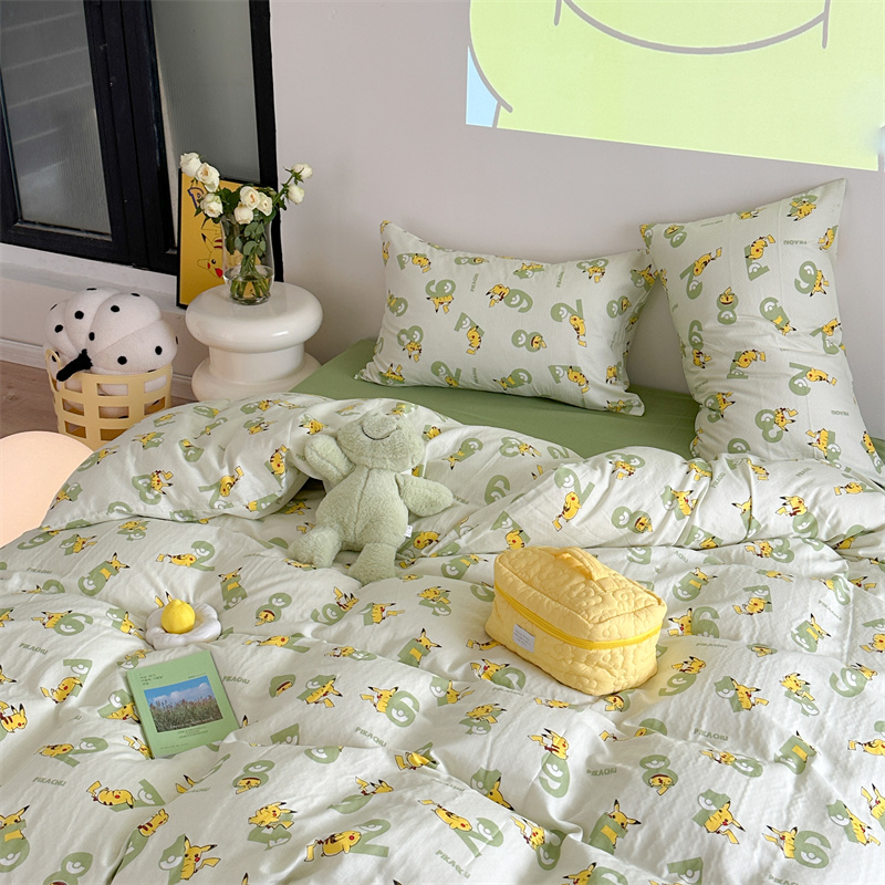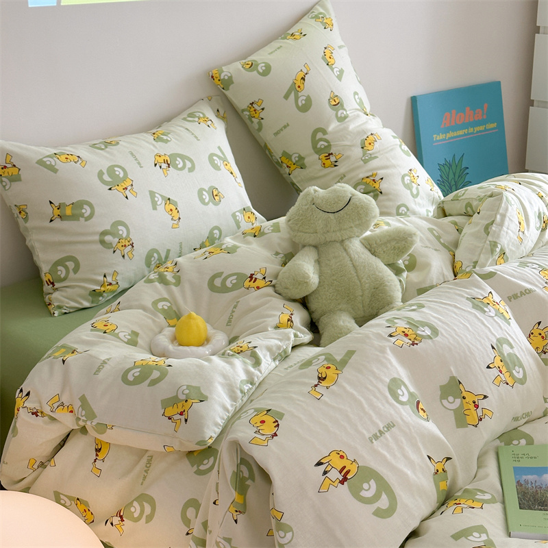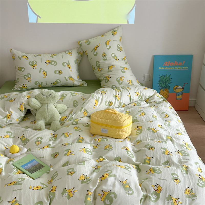 当前位置: 91家纺网 > 商品网购 > 床品套件 > 四件套 > 全棉普通四件套 > 时年 2024新款全棉双层纱四件套-宝可梦系列 皮卡丘绿果