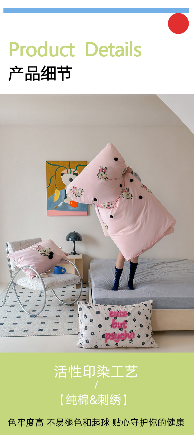 (总)桔子家纺 2026春夏新款100s全棉纯棉复古樱桃系列四件套-场景二,复古樱桃-粉,复古樱桃-米白