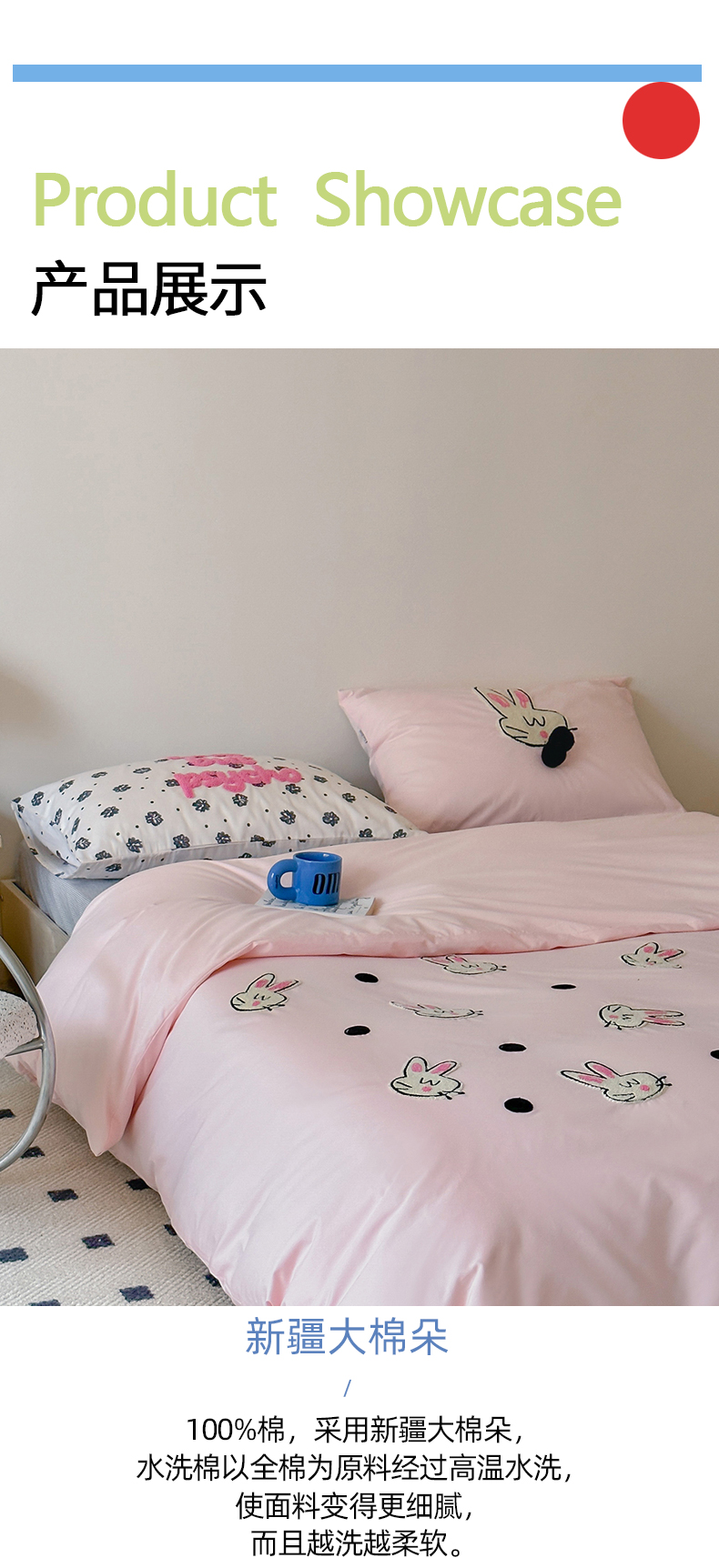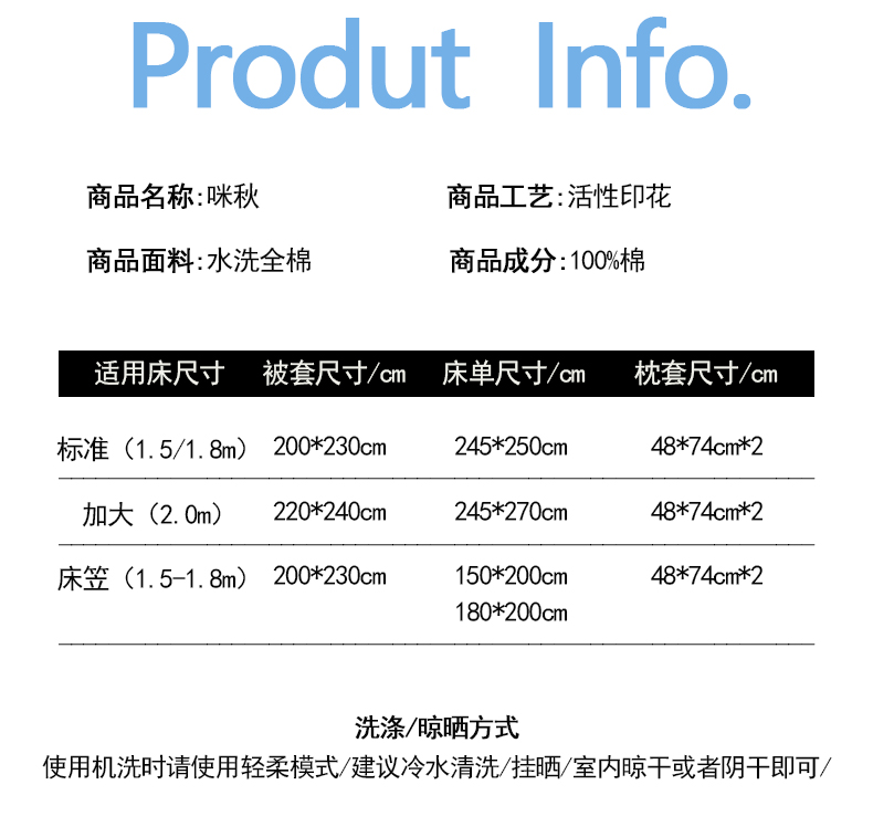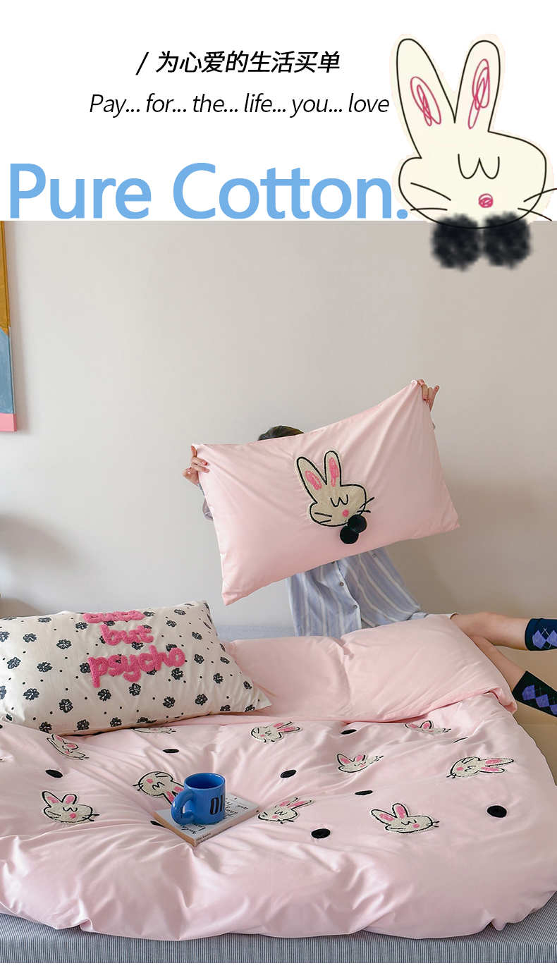 商品名称:(总)桔子家纺 2024新款纯棉水洗棉卡通四件套-咪秋